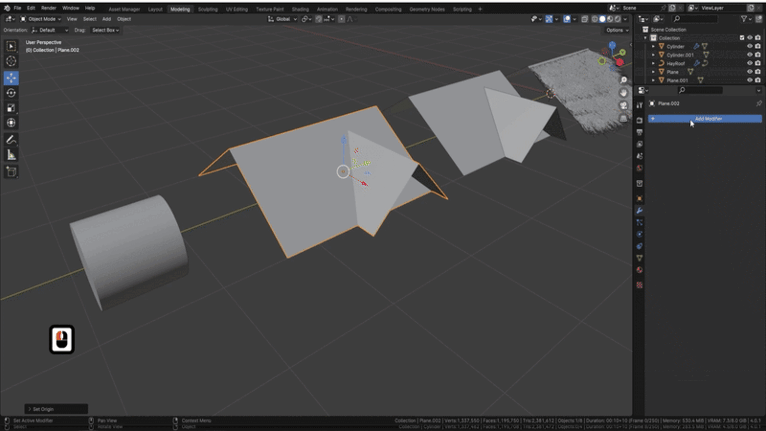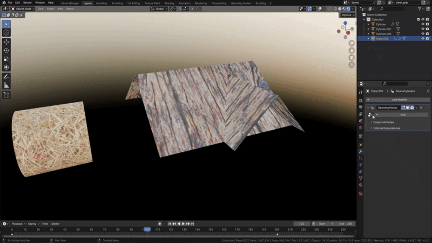 Add hay to roofs, bales, or meshes instantly β just apply the geometry node and itβs done.