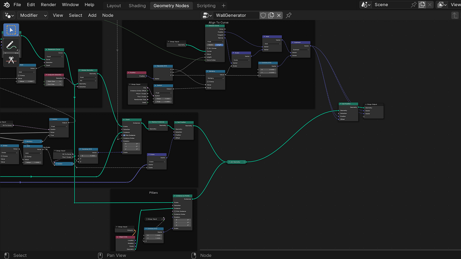3DT Walls & Columns – Blender Geometry Nodes Procedural