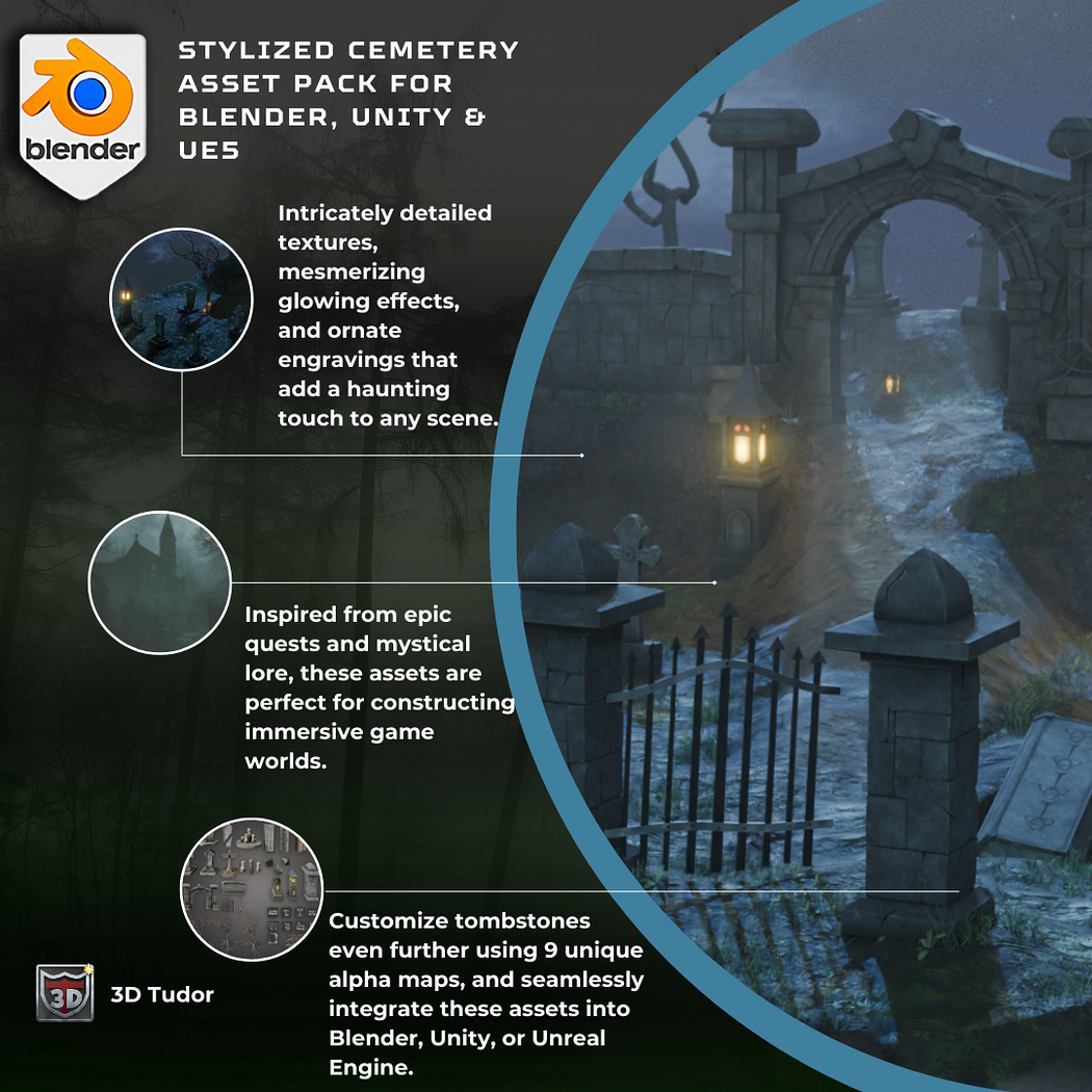 3DT Stylized Cemetery Asset Pack โ Stylized Game-Ready 3D Asset Pack (Blender, Unity, UE5, Godot)