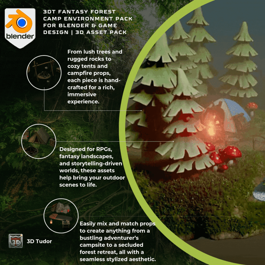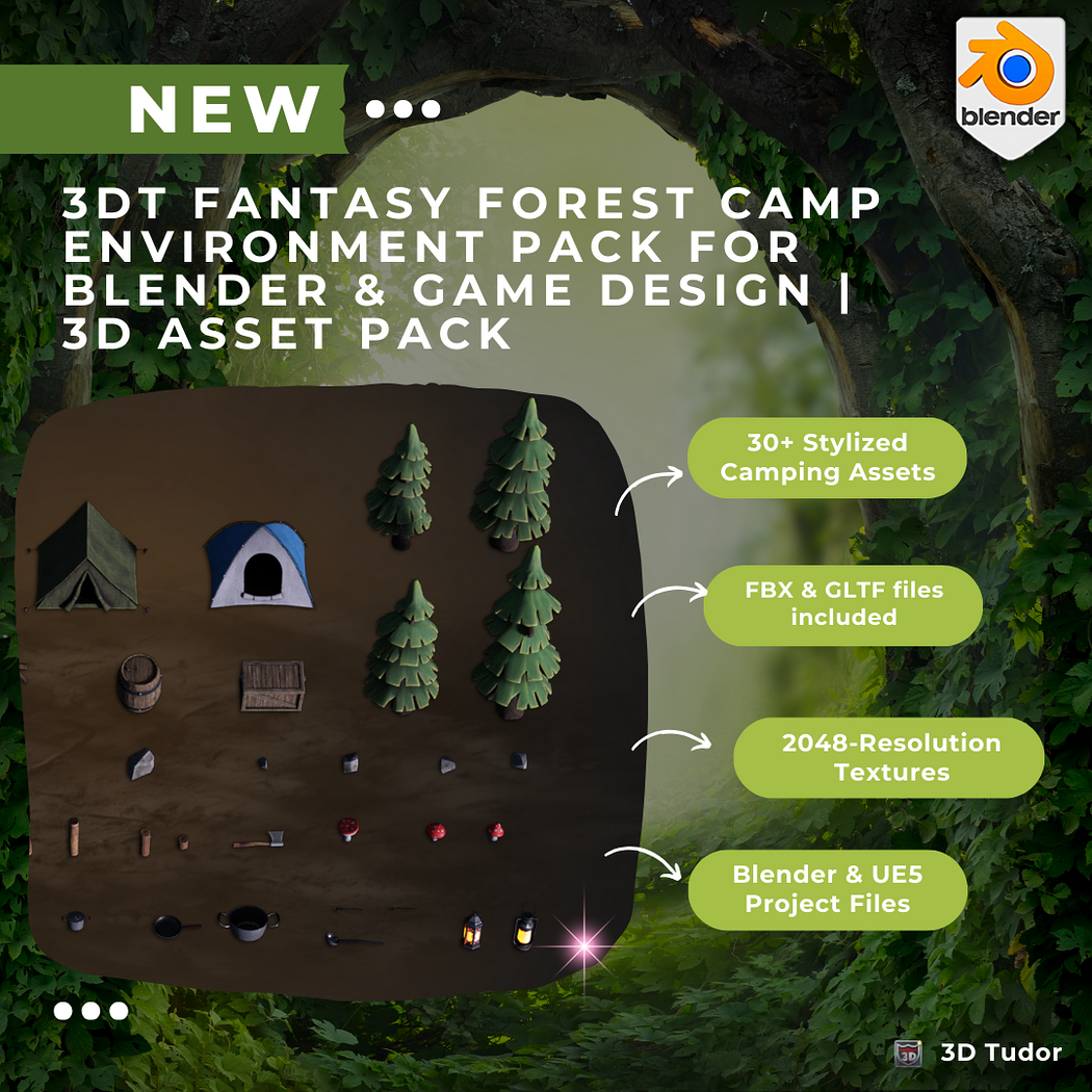 3DT Fantasy Forest Camp Environment Pack โ Stylized Game-Ready 3D Asset Pack (Blender, Unity, UE5)