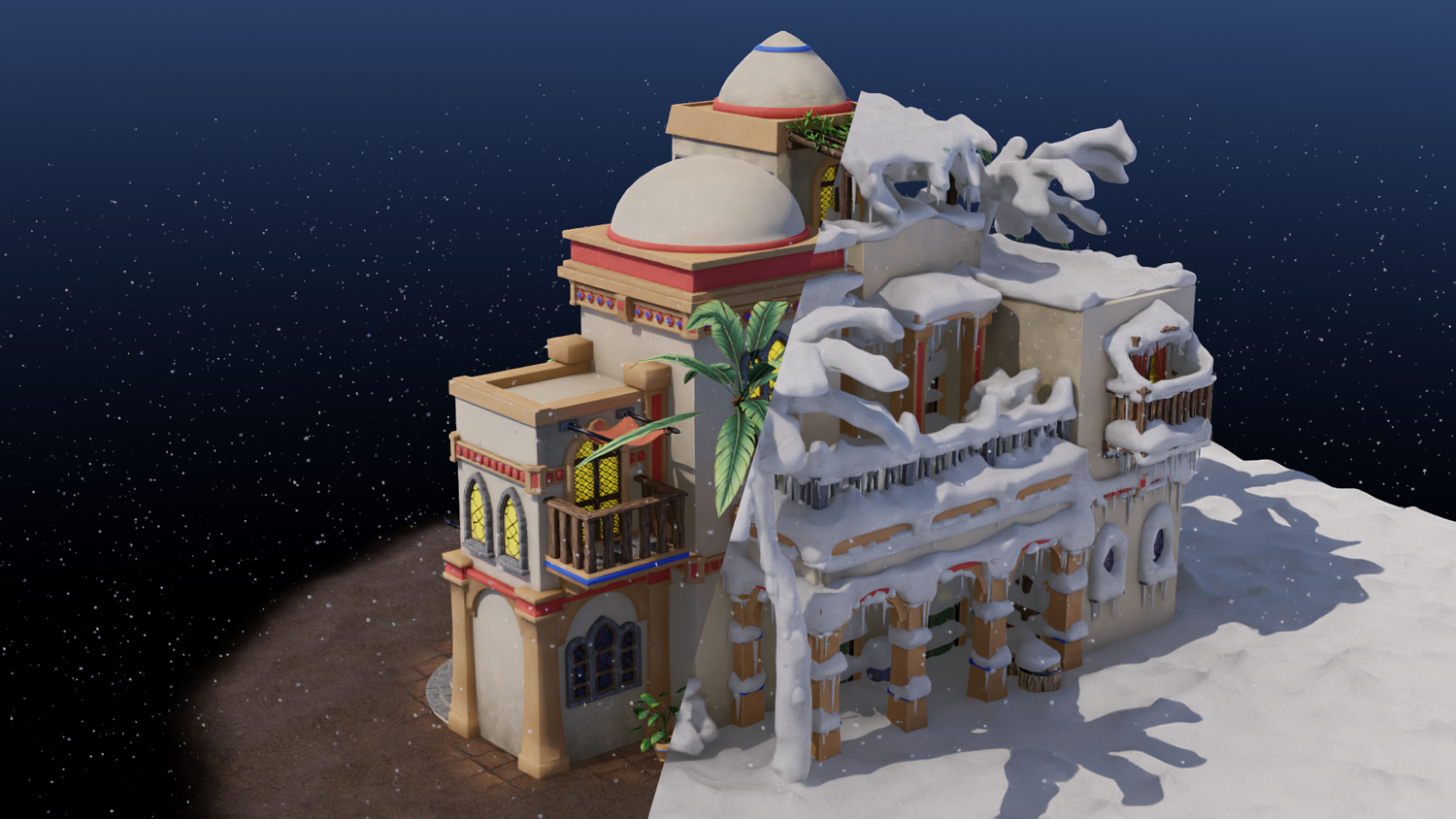 Turn any asset β buildings, trees, rocks, landscapes β into a winter wonderland in just minutes.