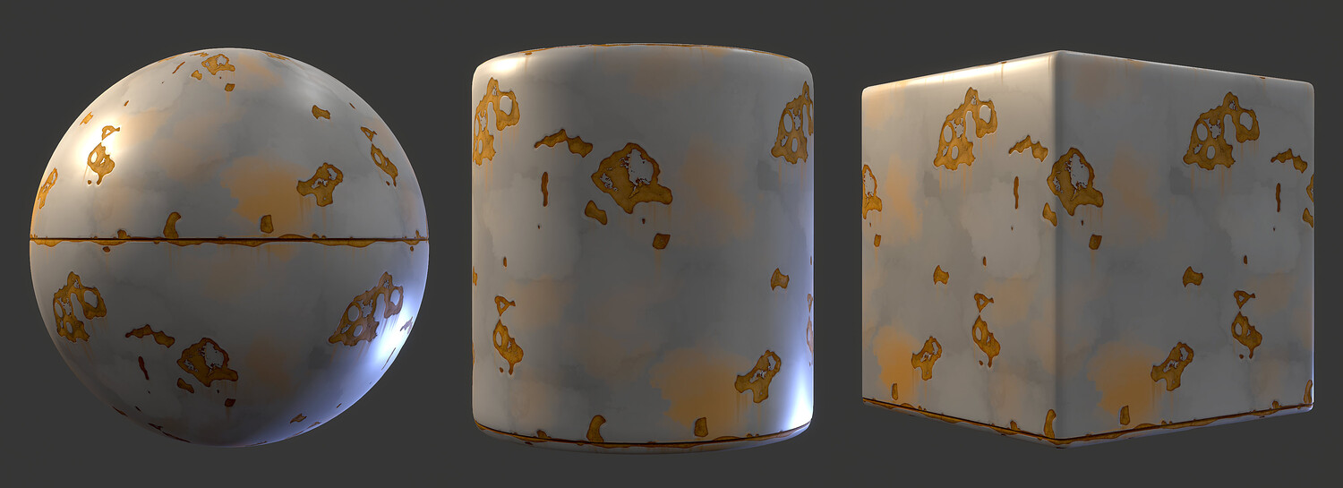 Material previews rendered in Marmoset Toolbag, visual results may vary depending on render engine, tiling amount, lighting conditions, etc. sbsar file performance may differ based on your pc specs.