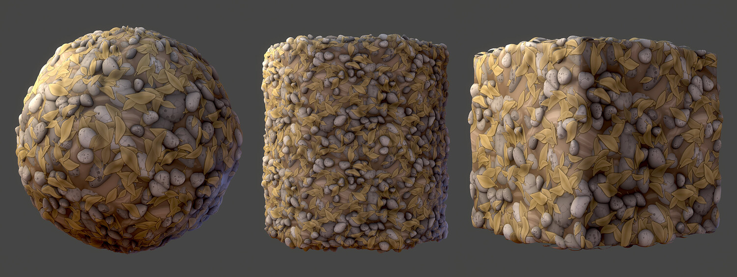 Material previews rendered in Marmoset Toolbag, visual results may vary depending on render engine, tiling amount, lighting conditions, etc. sbsar file performance may differ based on your pc specs.