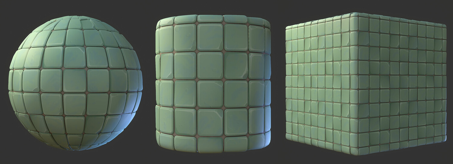 Material previews rendered in Marmoset Toolbag, visual results may vary depending on render engine, tiling amount, lighting conditions, etc. sbsar file performance may differ based on your pc specs.