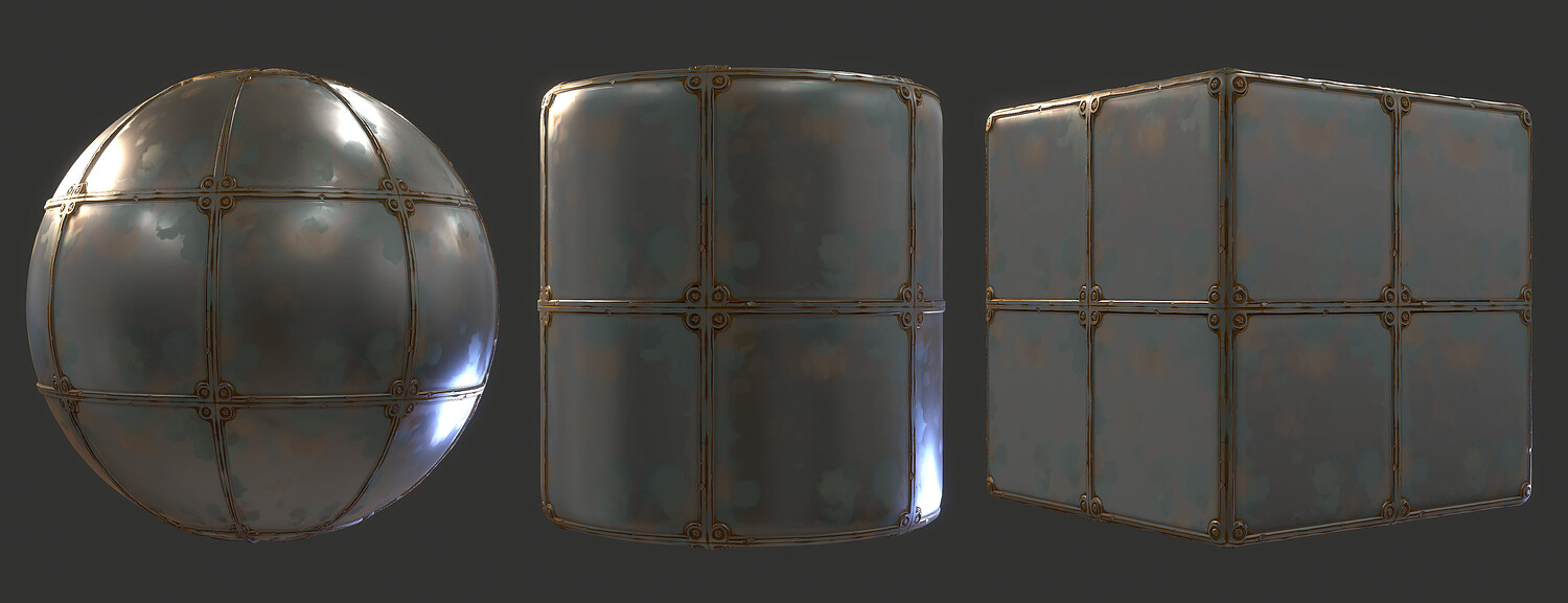 Material previews rendered in Marmoset Toolbag, visual results may vary depending on render engine, tiling amount, lighting conditions, etc. sbsar file performance may differ based on your pc specs.