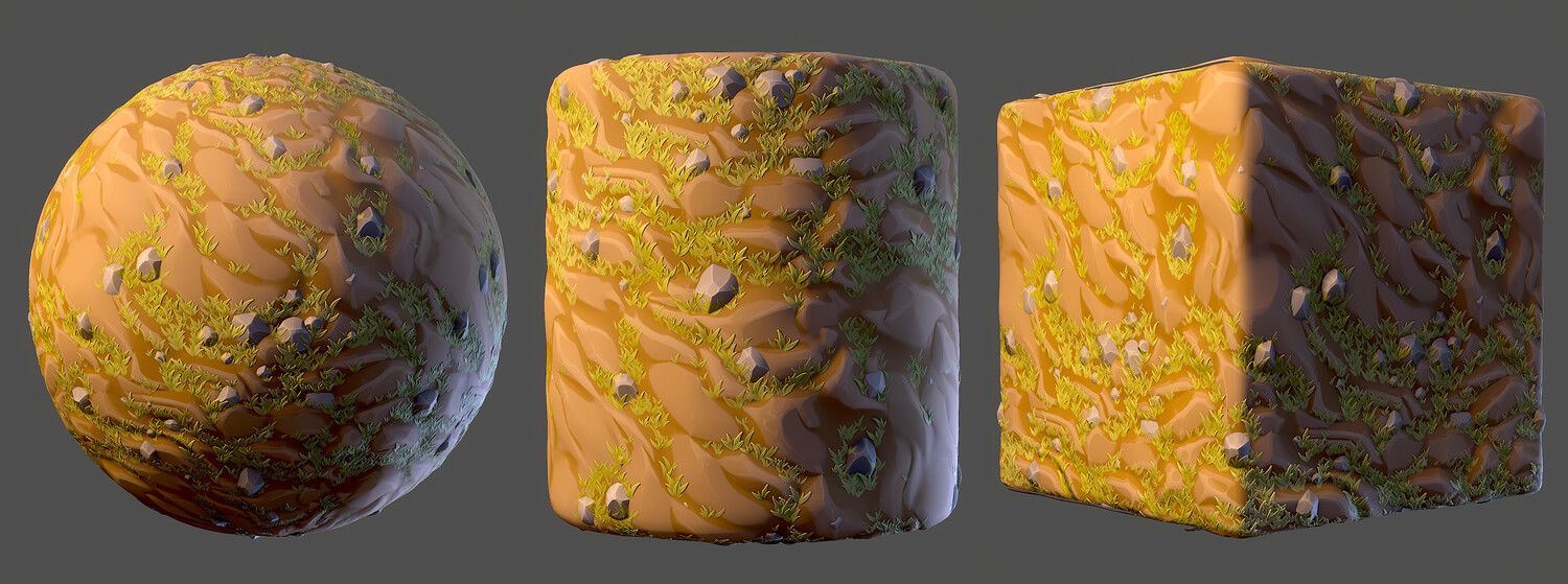 Material previews rendered in Marmoset Toolbag, visual results may vary depending on render engine, tiling amount, lighting conditions, etc. sbsar file performance may differ based on your pc specs.
