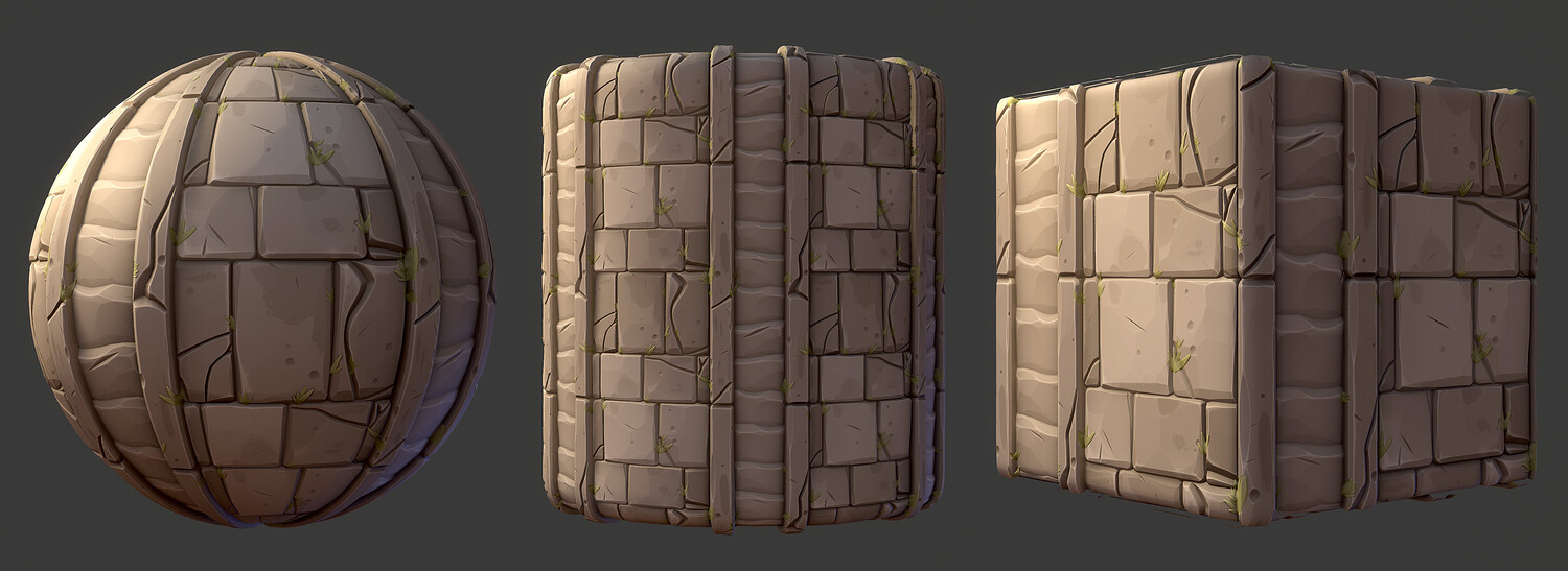 Material previews rendered in Marmoset Toolbag, visual results may vary depending on render engine, tiling amount, lighting conditions, etc. sbsar file performance may differ based on your pc specs.