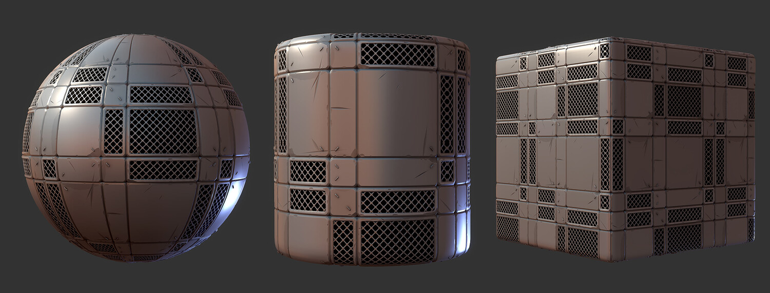 Material previews rendered in Marmoset Toolbag, visual results may vary depending on render engine, tiling amount, lighting conditions, etc. sbsar file performance may differ based on your pc specs.