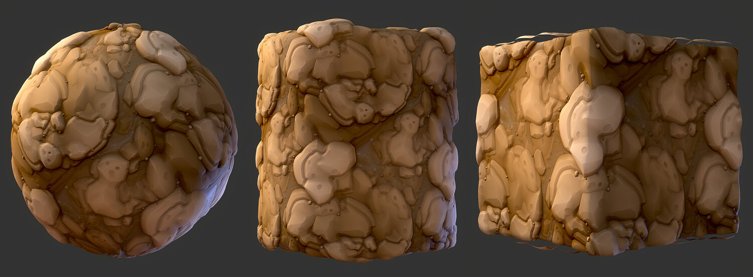 Material previews rendered in Marmoset Toolbag, visual results may vary depending on render engine, tiling amount, lighting conditions, etc. sbsar file performance may differ based on your pc specs.