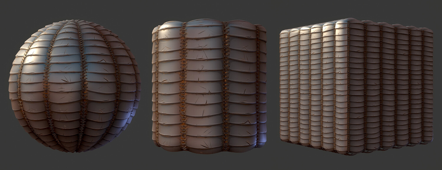 Material previews rendered in Marmoset Toolbag, visual results may vary depending on render engine, tiling amount, lighting conditions, etc. sbsar file performance may differ based on your pc specs.