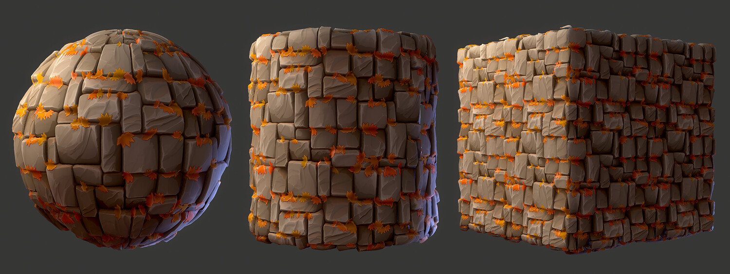 Material previews rendered in Marmoset Toolbag, visual results may vary depending on render engine, tiling amount, lighting conditions, etc. sbsar file performance may differ based on your pc specs.