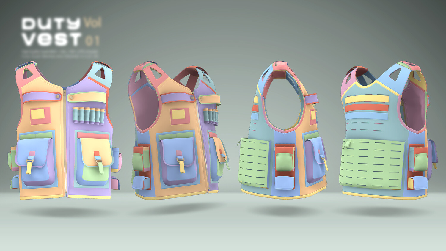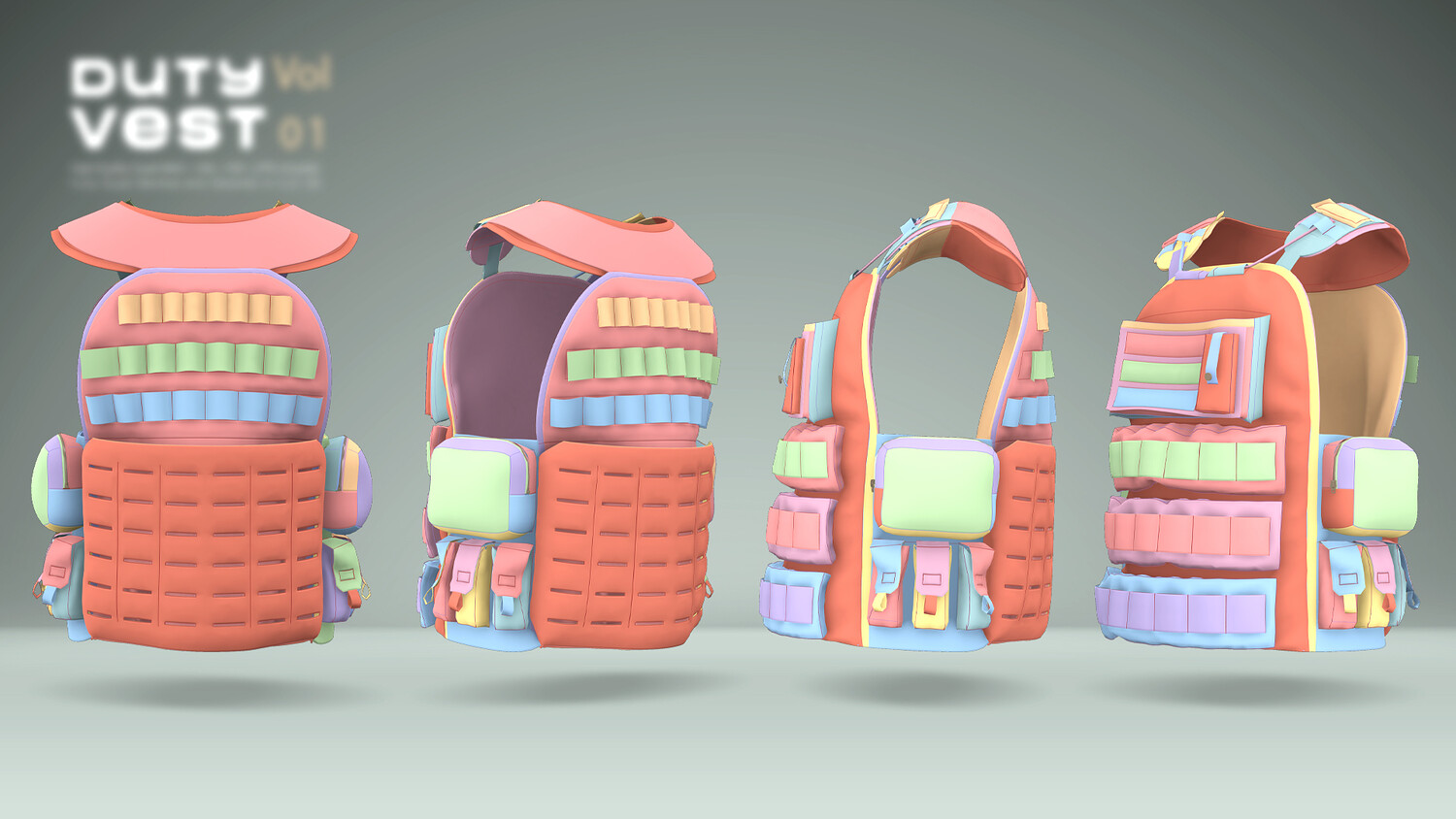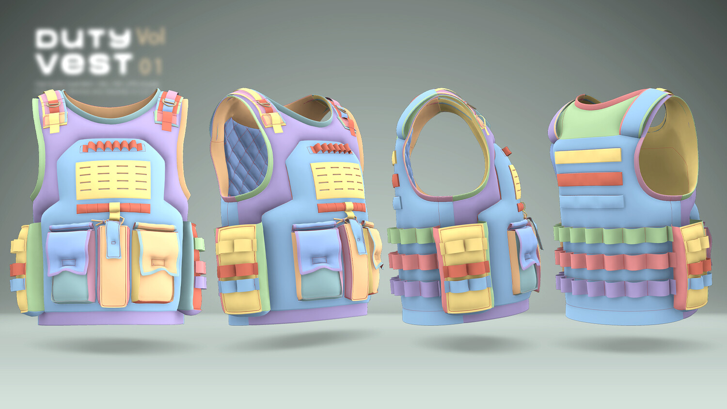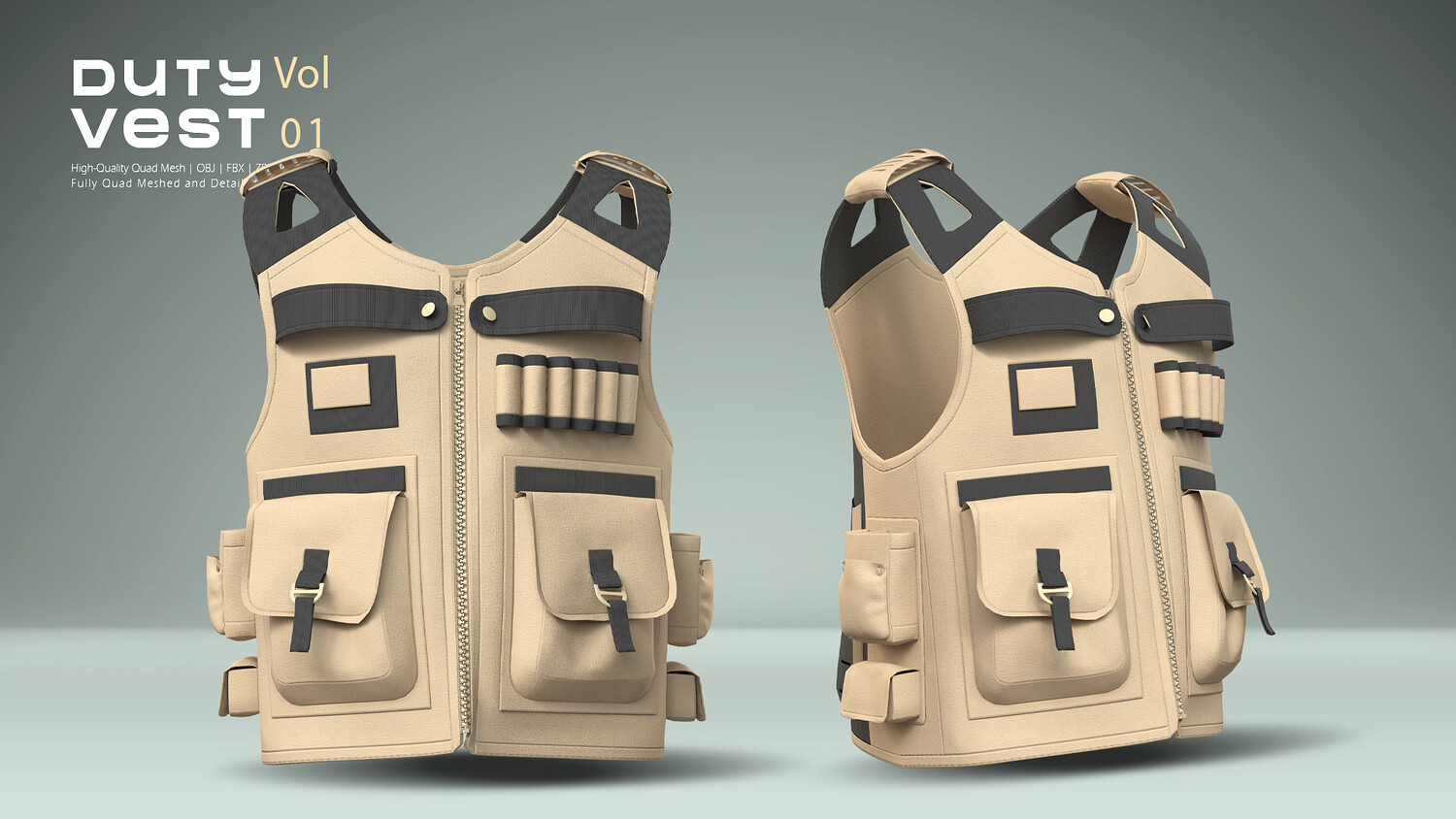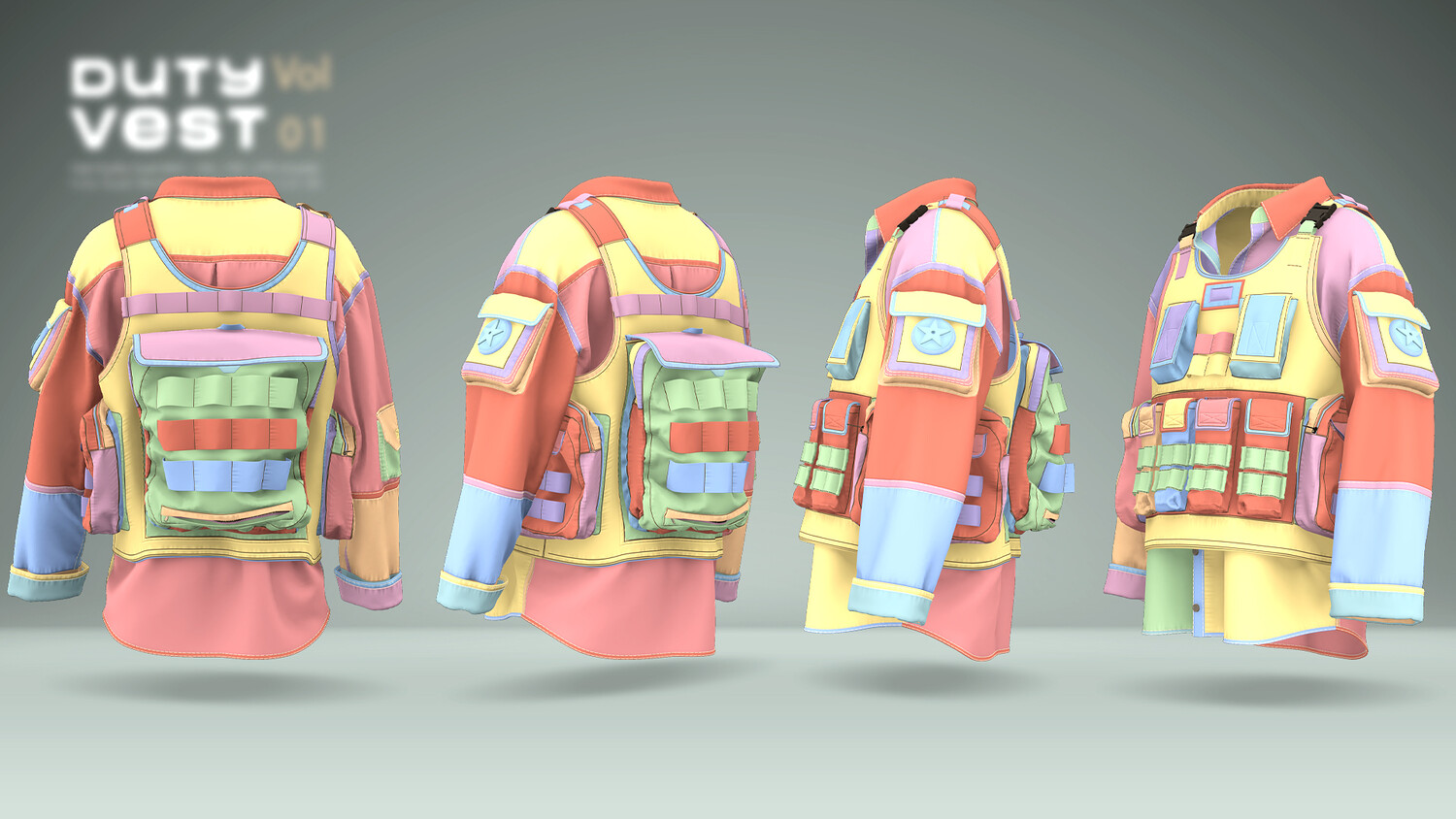 Duty Vest Vol. 01 is a high-quality set of five uniquely designed tactical vests, optimized for use in uniform outfits across game development, digital fashion, cinematic projects, and 3D character design.