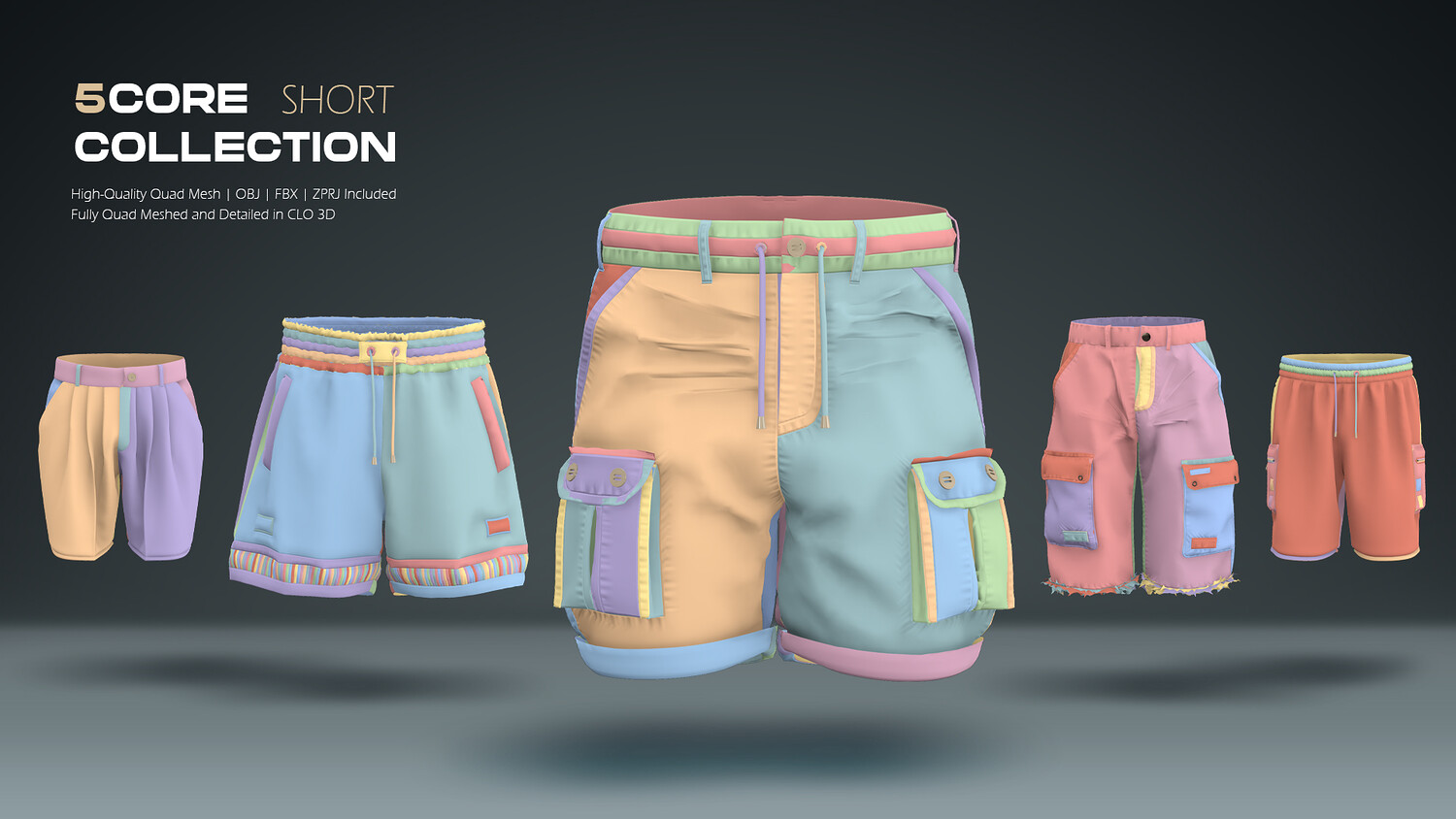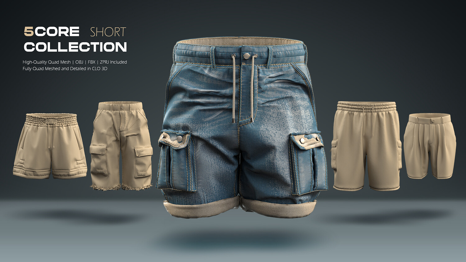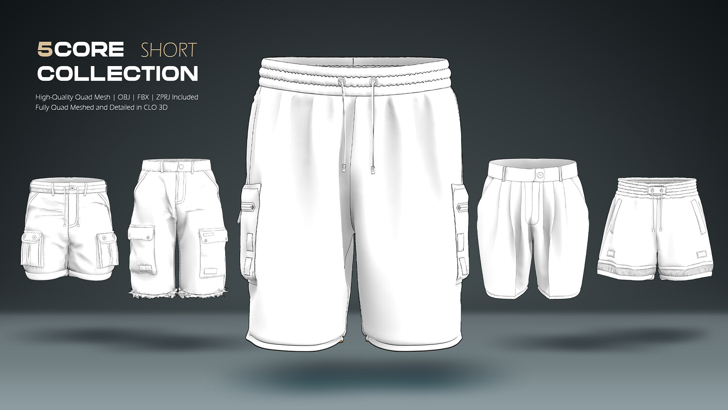 Explore a versatile collection of 5 high-quality shorts, perfect for modern fashion designs or game-ready characters. ✅ Fully quad mesh ✅ Clean UVs ✅ Includes OBJ / FBX / ZPRJ ✅ Modeled in CLO 3D
