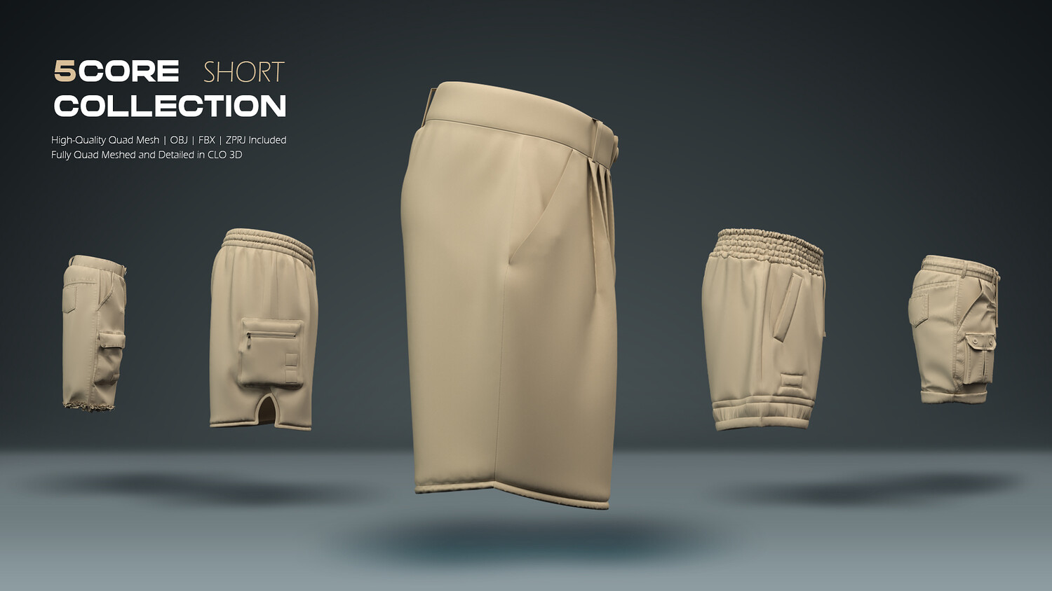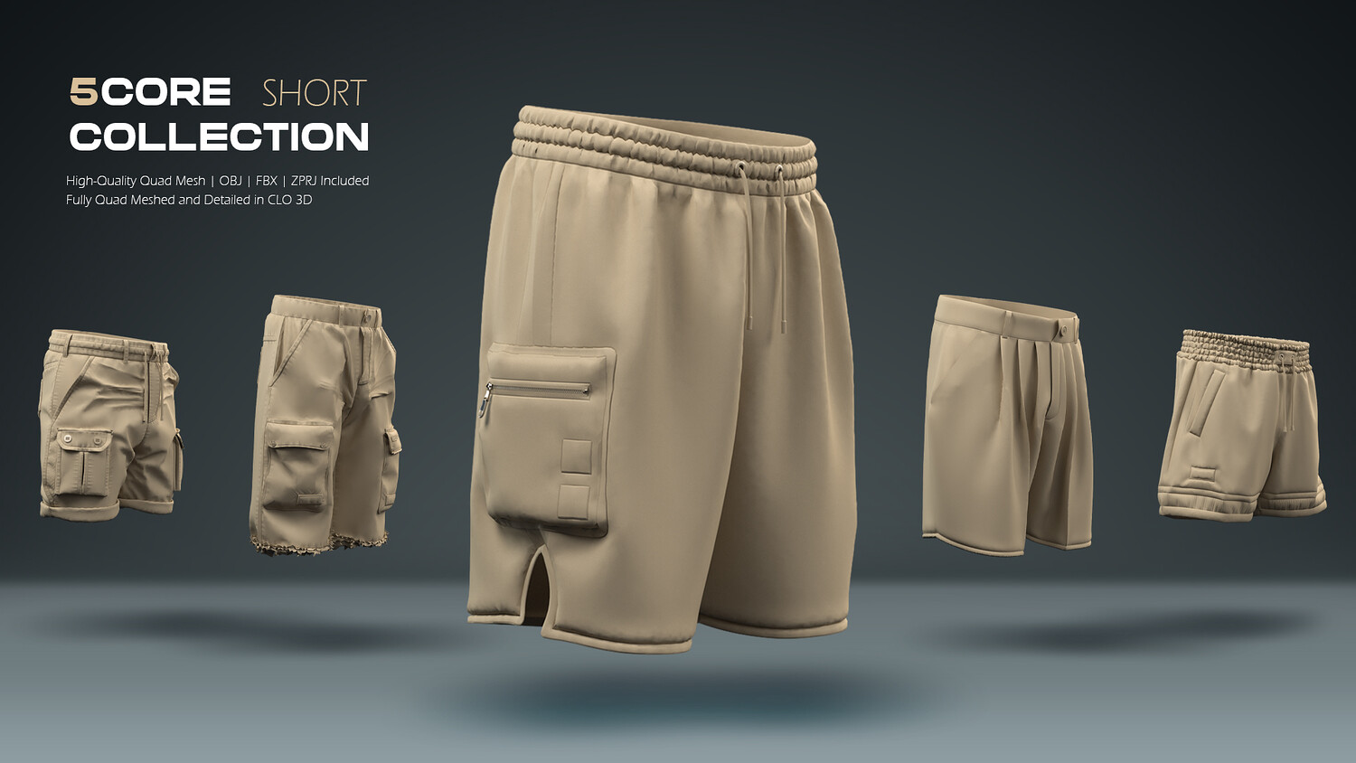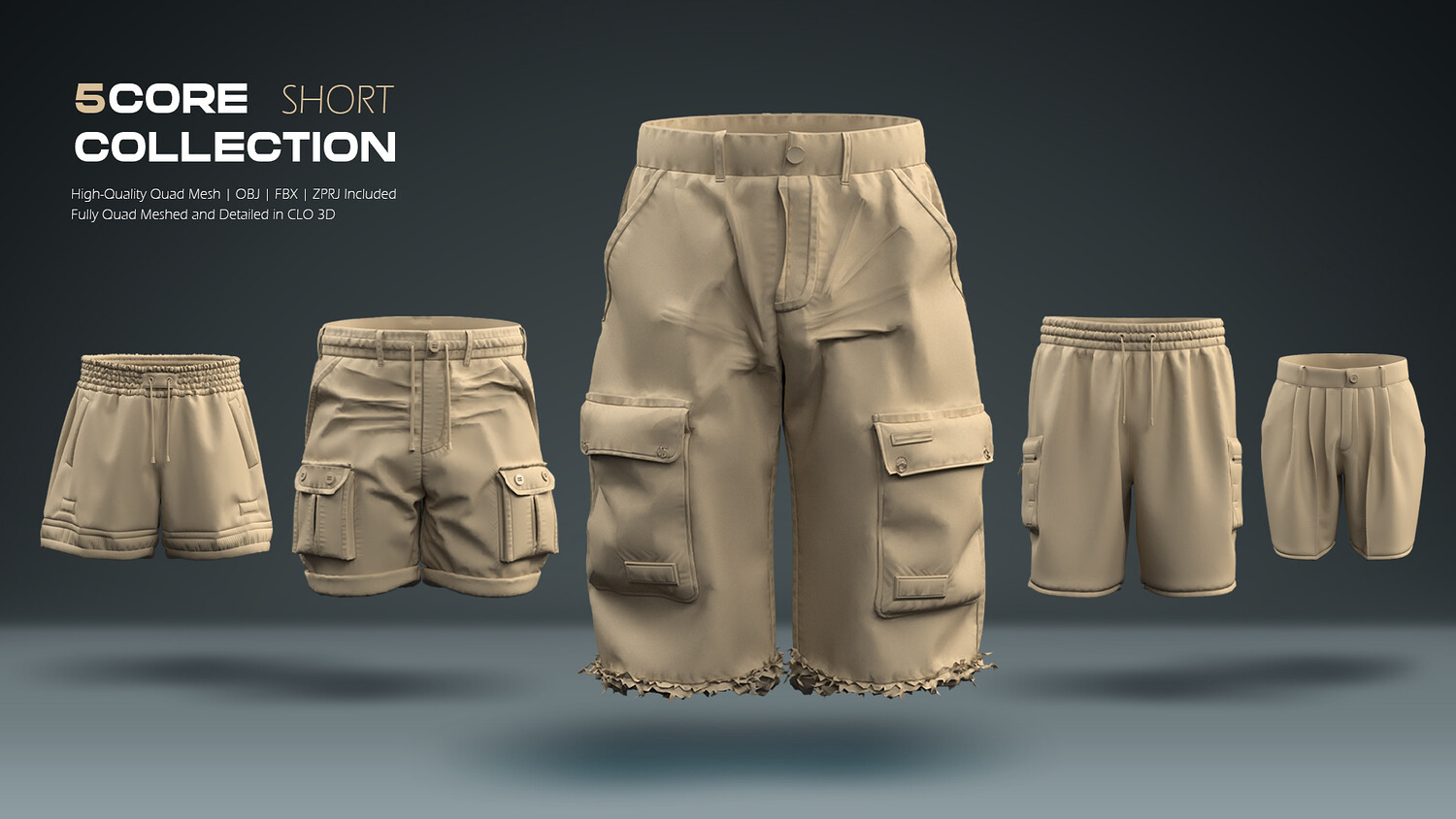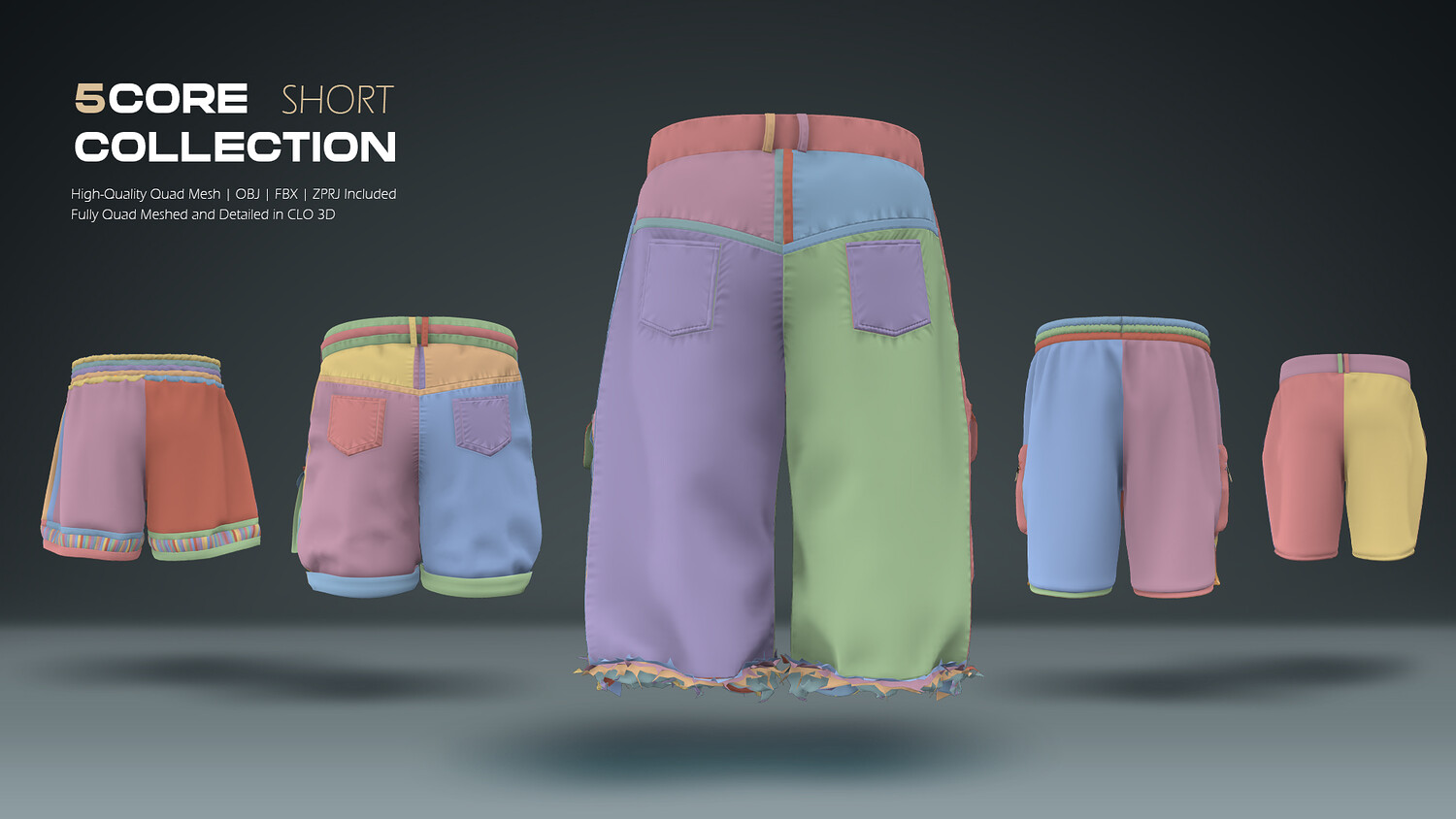 Explore a versatile collection of 5 high-quality shorts, perfect for modern fashion designs or game-ready characters. ✅ Fully quad mesh ✅ Clean UVs ✅ Includes OBJ / FBX / ZPRJ ✅ Modeled in CLO 3D