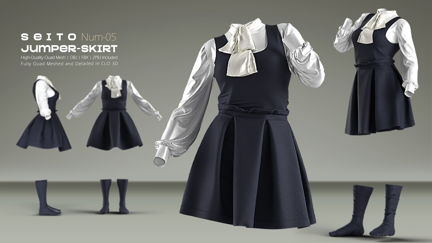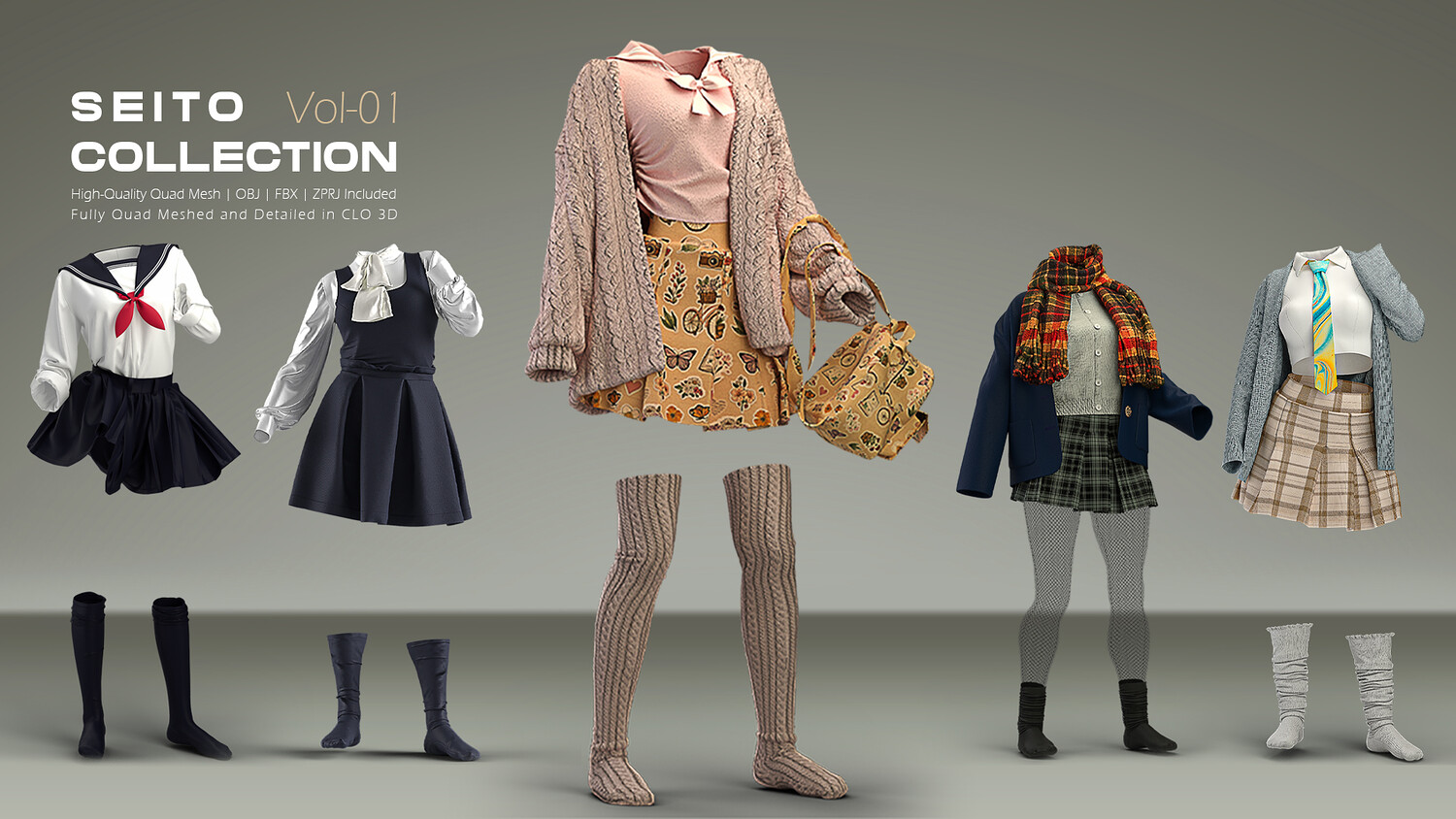 5 SEITO UNIFORM COLLECTION Vol. 01 A premium school-inspired outfit pack designed in CLO 3D.