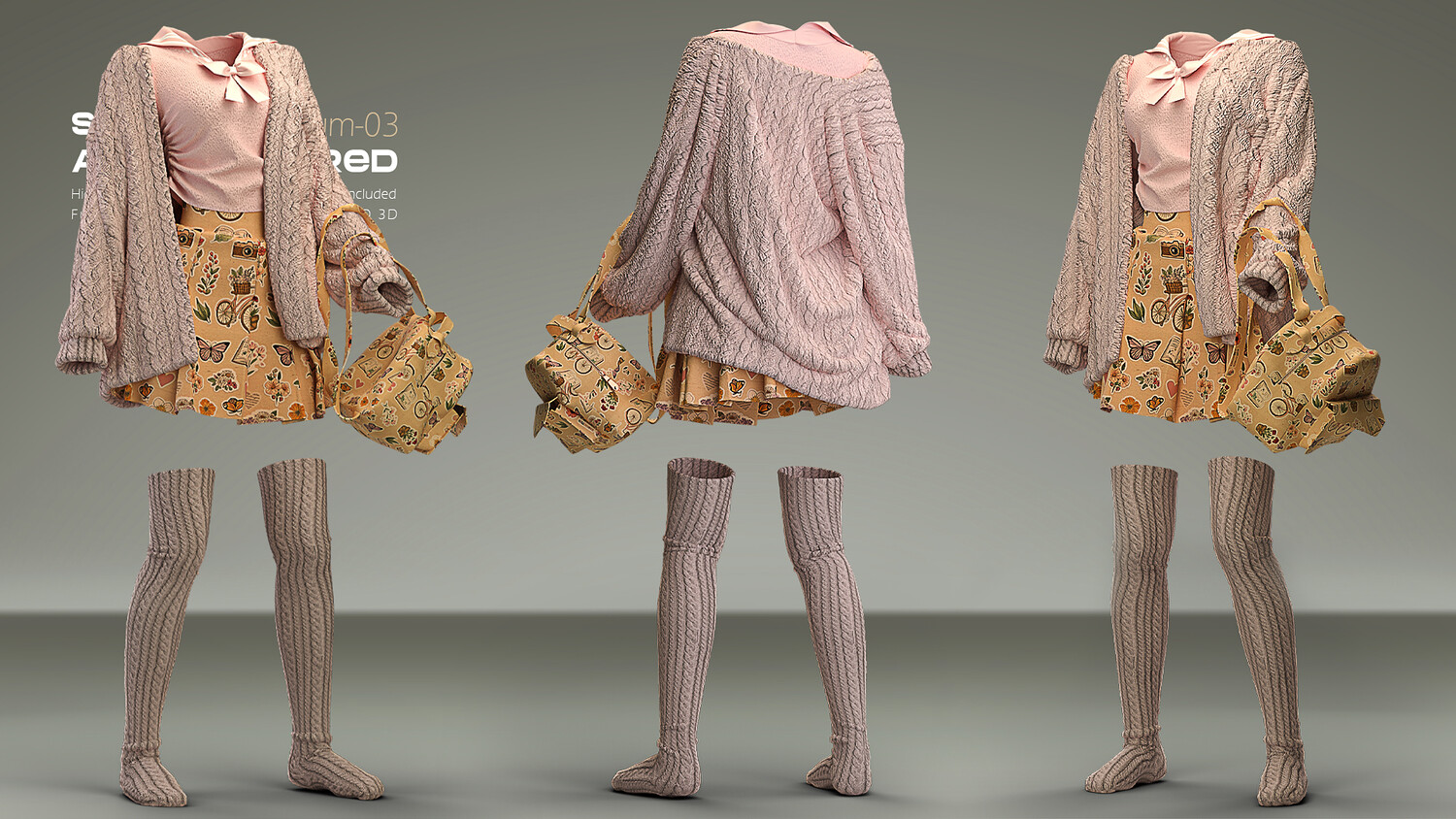 Step into the aesthetic of high school fashion with this fully modular, game-ready clothing set — designed with attention to both style and structure.