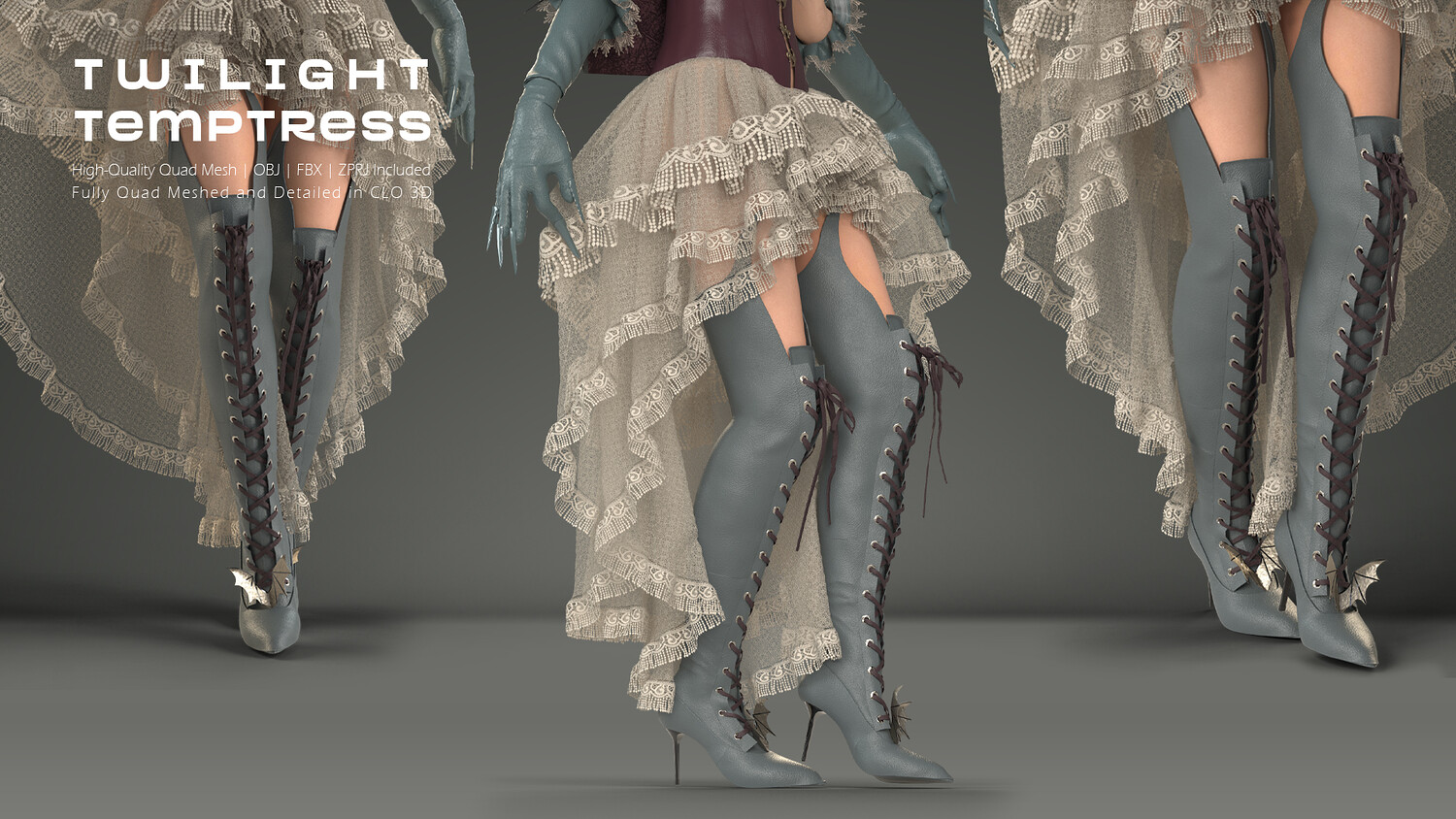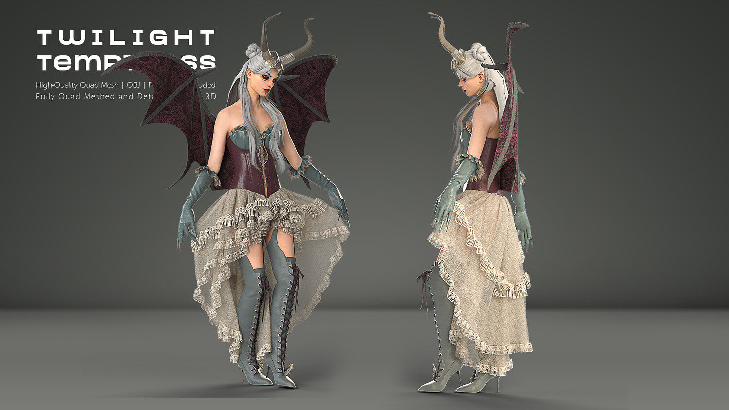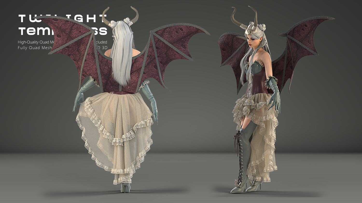🌒 Twilight Temptress – Dark Elegance Reimagined 🦇 Step into the shadowy world of fantasy with Twilight Temptress – a high-detail 3D outfit crafted in CLO 3D for otherworldly queens. Featuring intricate lacework, sculpted horns, and dragon wings, this set merges gothic elegance with powerful mystique.