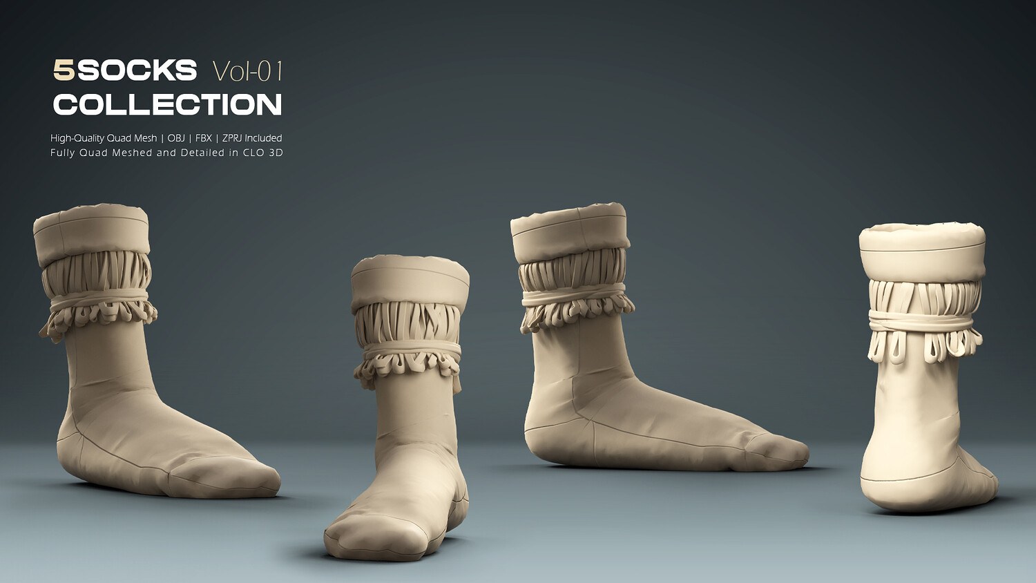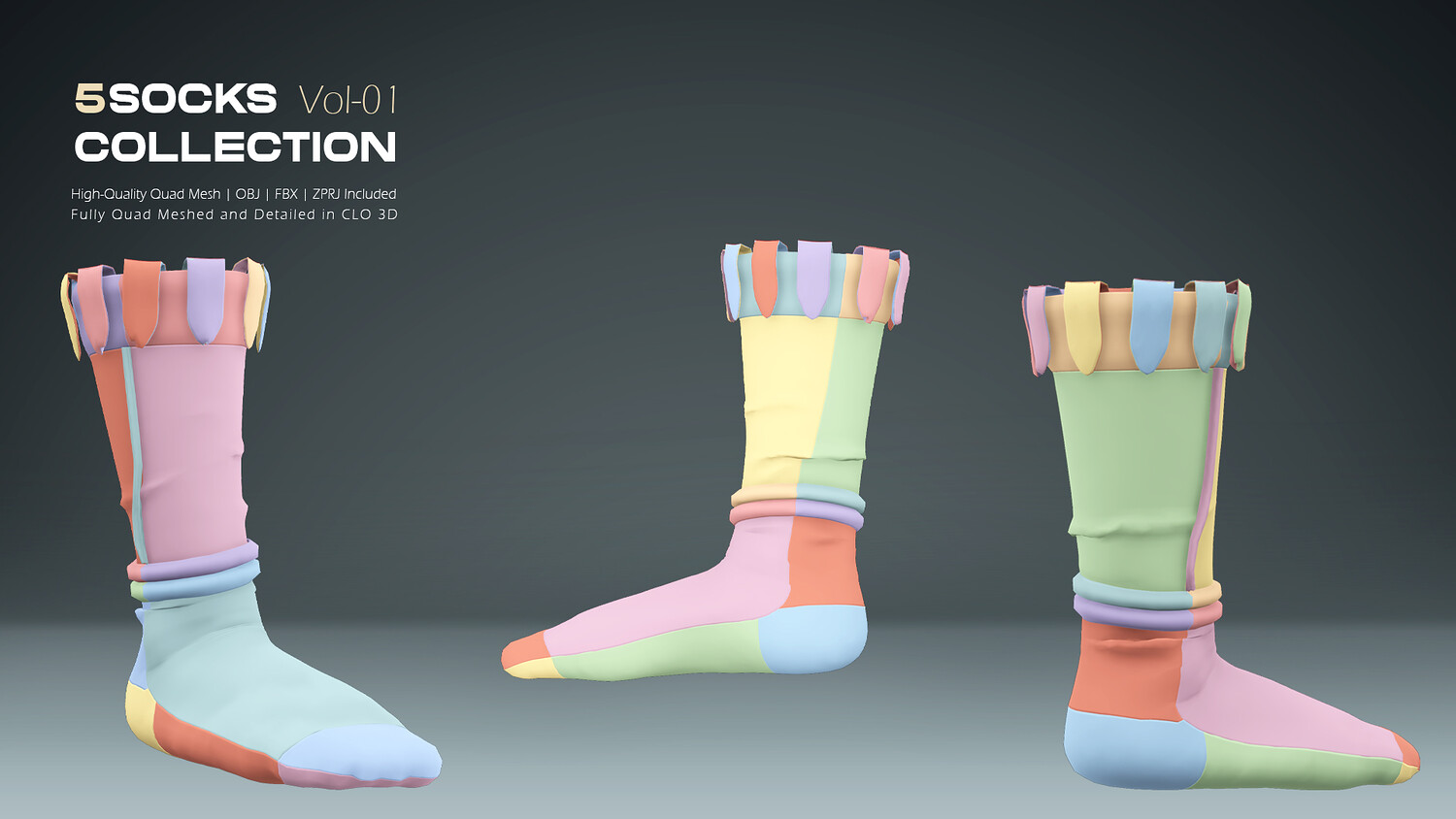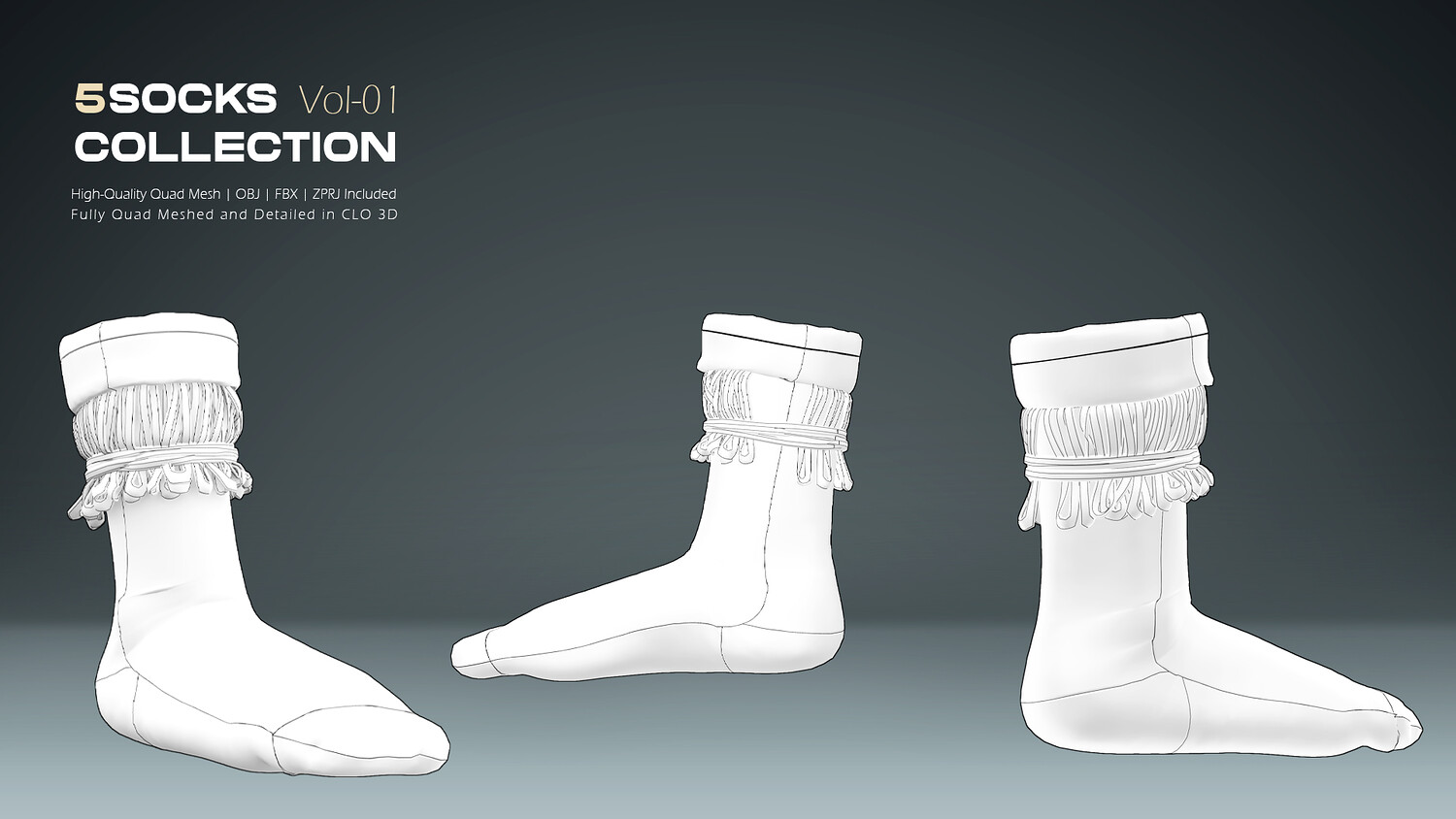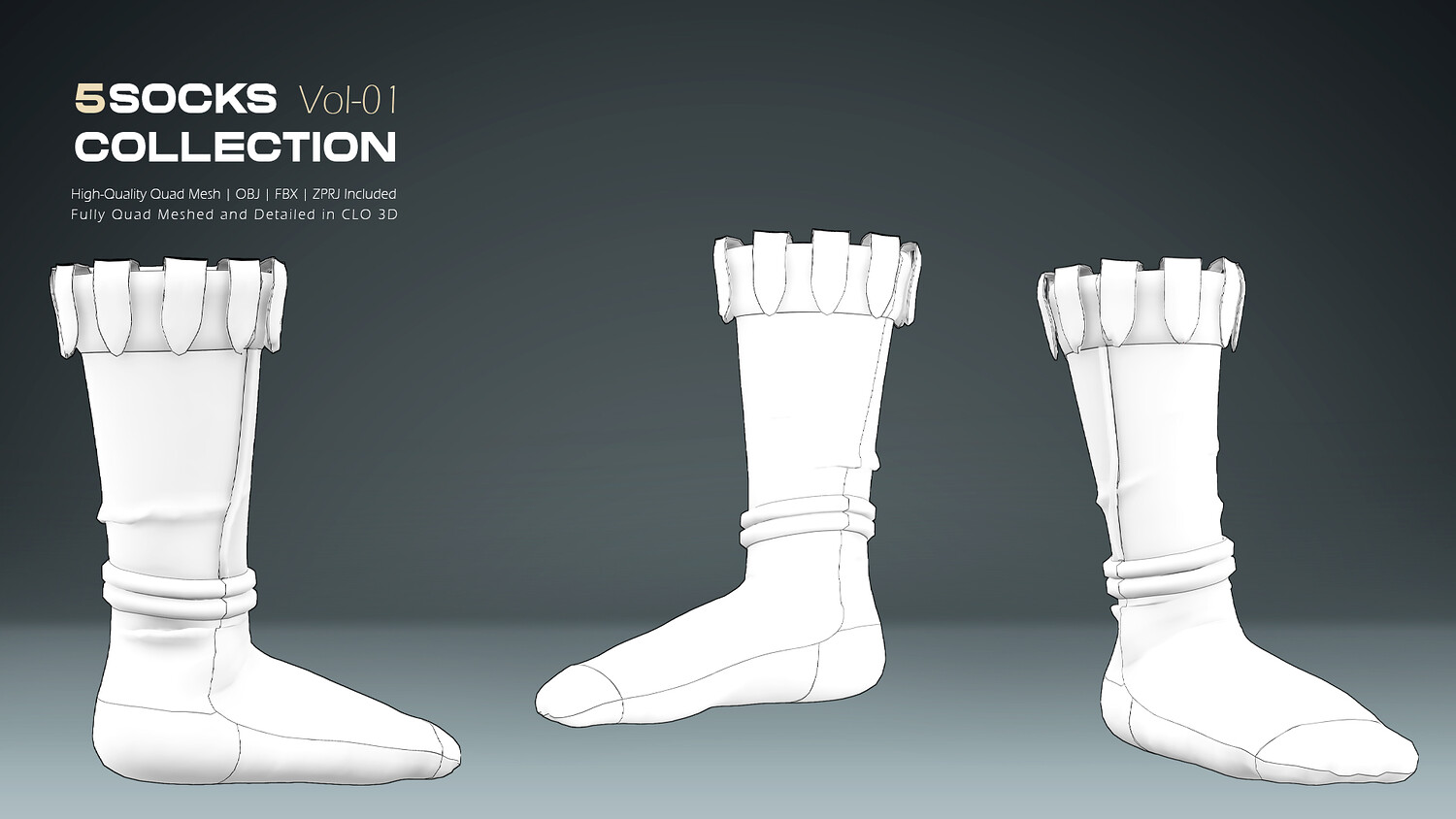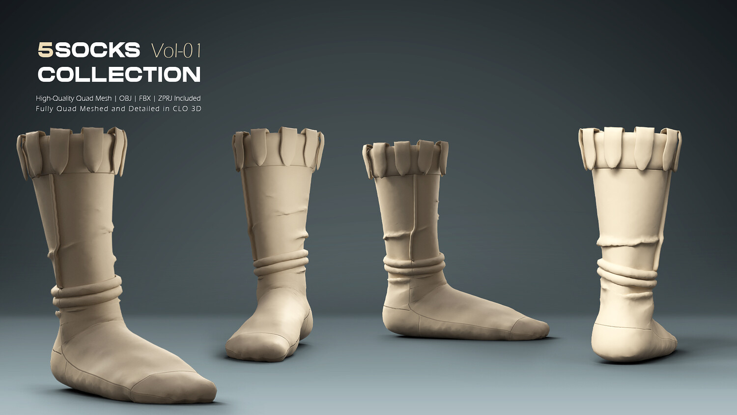 🧦 5 Socks Collection – Vol.01 🧵 Add a unique touch to fantasy, historical, or stylized characters with this high-quality sock collection – perfect for games, animations, and digital fashion scenes.