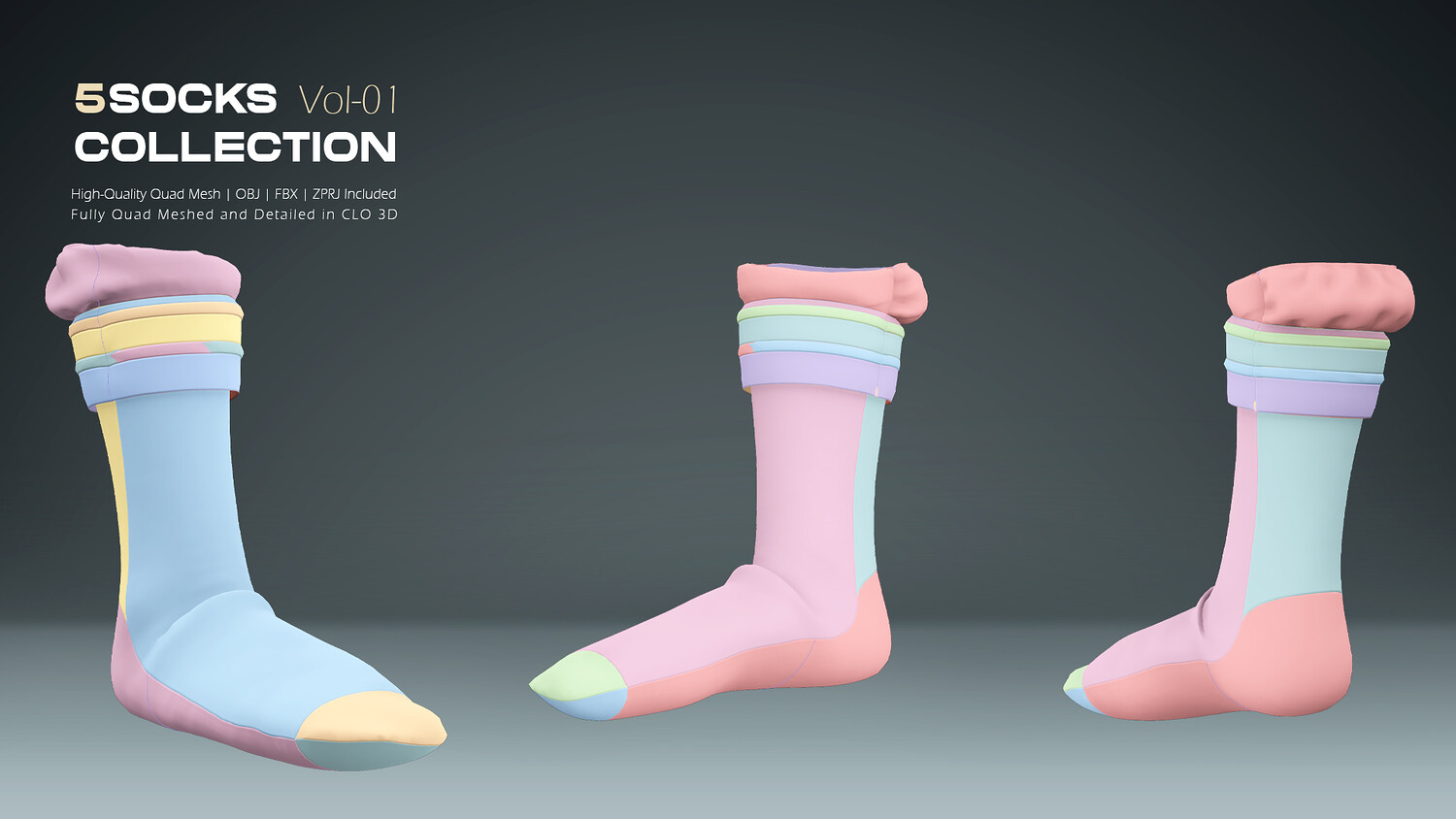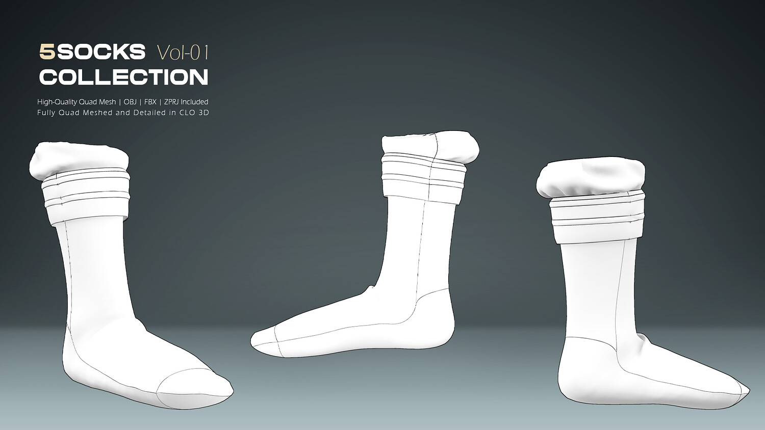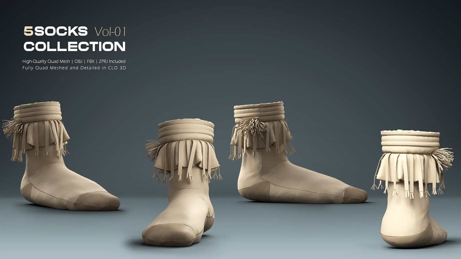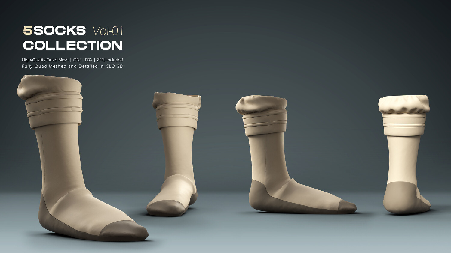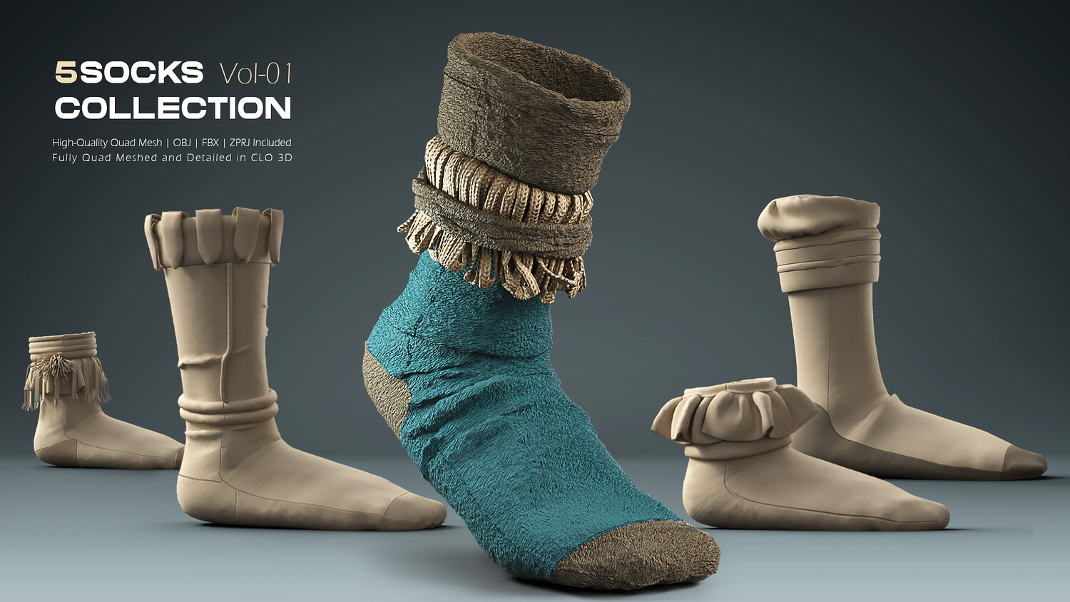 🧦 5 Socks Collection – Vol.01 🧵 Add a unique touch to fantasy, historical, or stylized characters with this high-quality sock collection – perfect for games, animations, and digital fashion scenes.