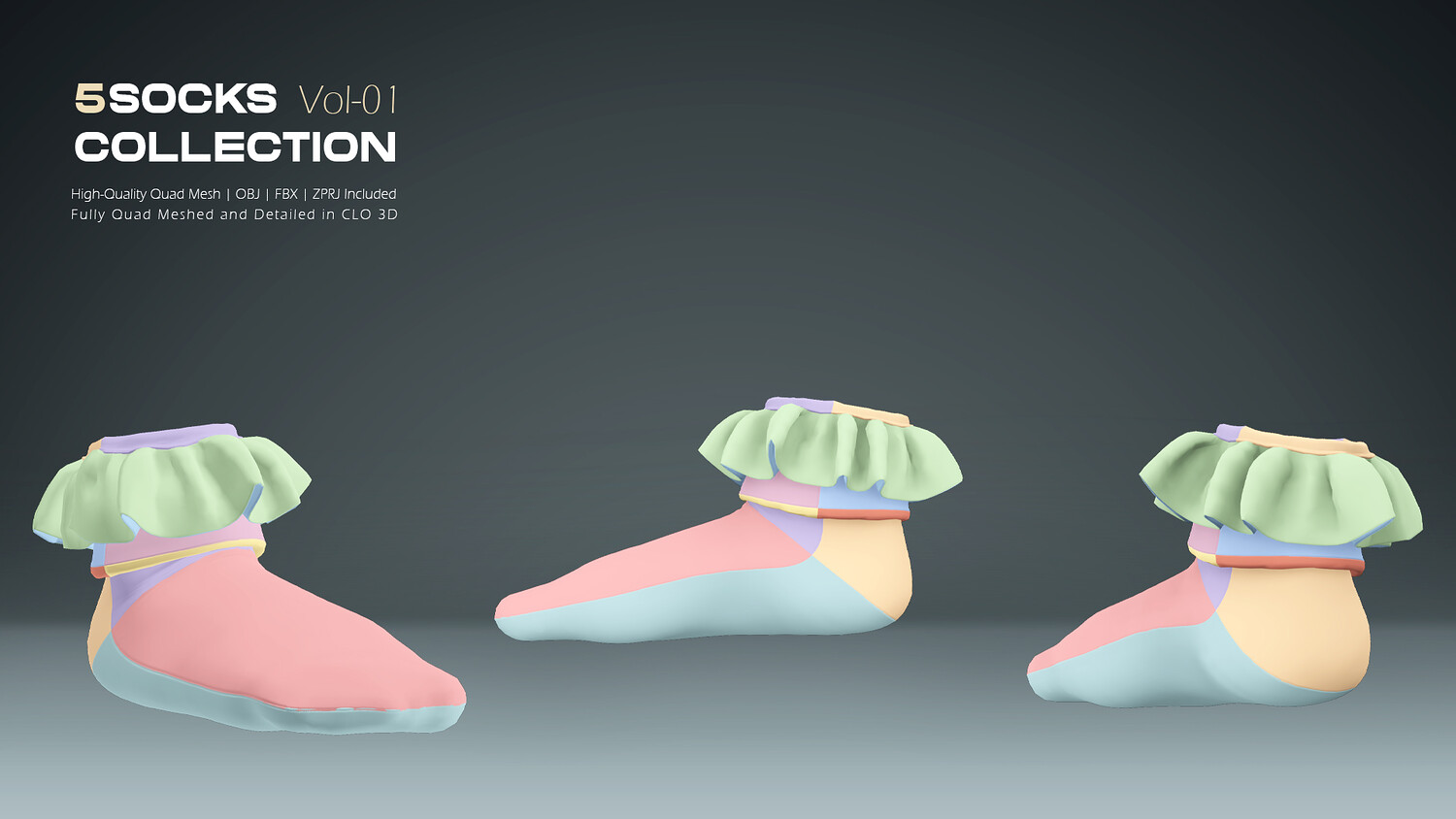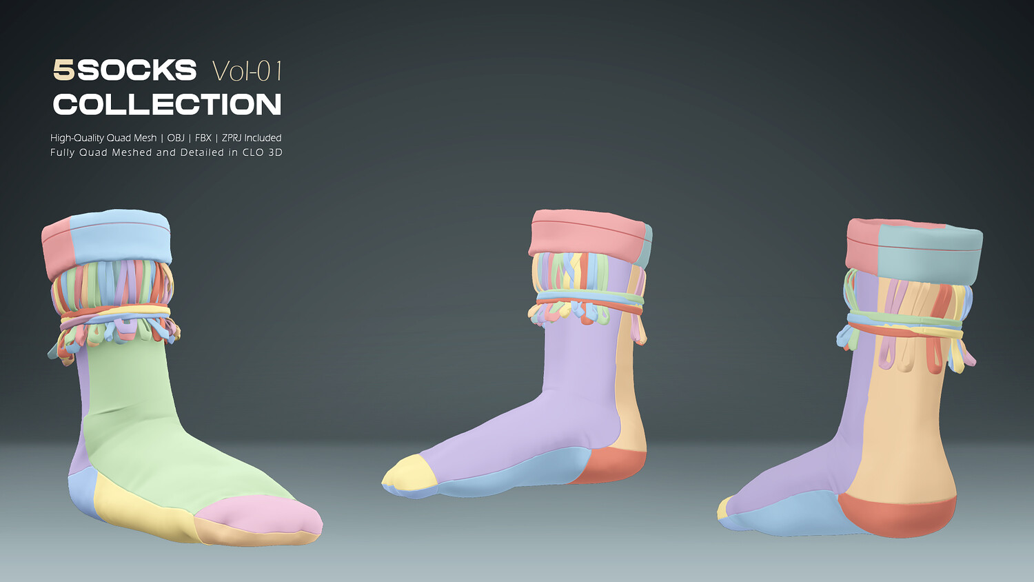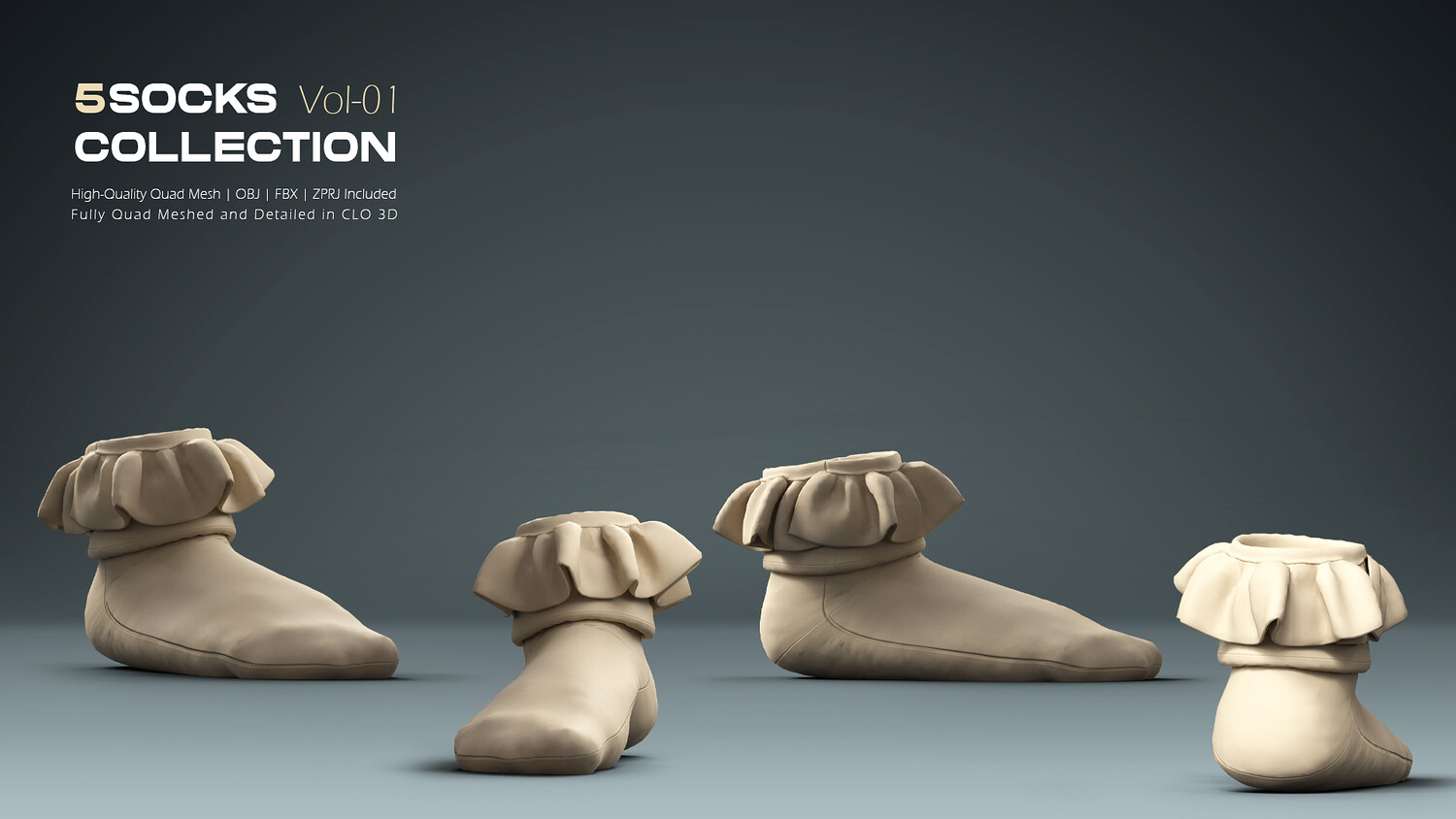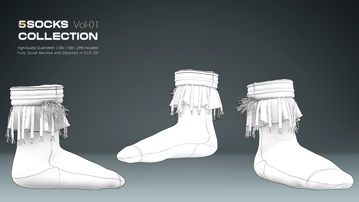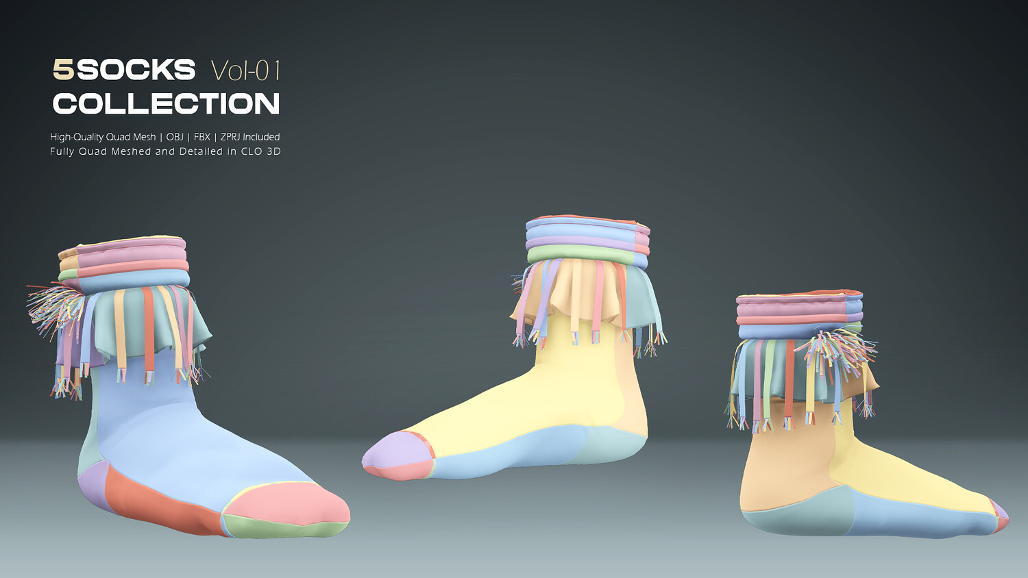 🧦 5 Socks Collection – Vol.01 🧵 Add a unique touch to fantasy, historical, or stylized characters with this high-quality sock collection – perfect for games, animations, and digital fashion scenes.