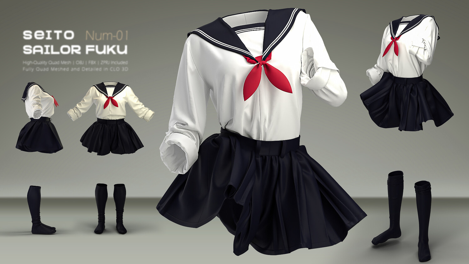 SEITO Sailor Fuku - 3D School Uniform Outfit (Num-01)