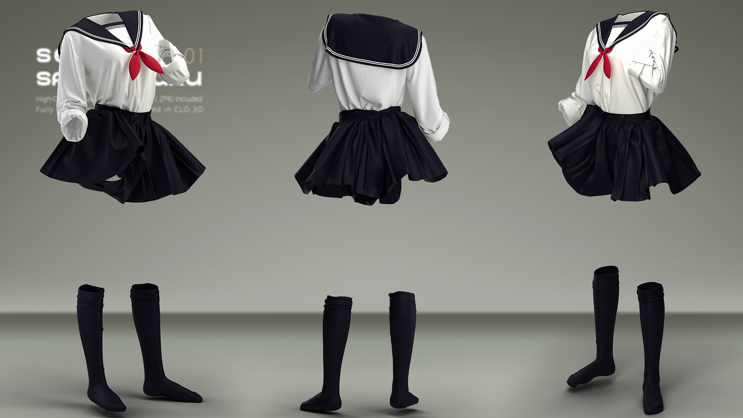 Bring iconic Japanese school fashion into your digital world with this fully detailed and quad-meshed 3D Sailor Fuku outfit. Designed in CLO 3D for maximum realism and optimized for versatile use across games, animations, and virtual fashion.