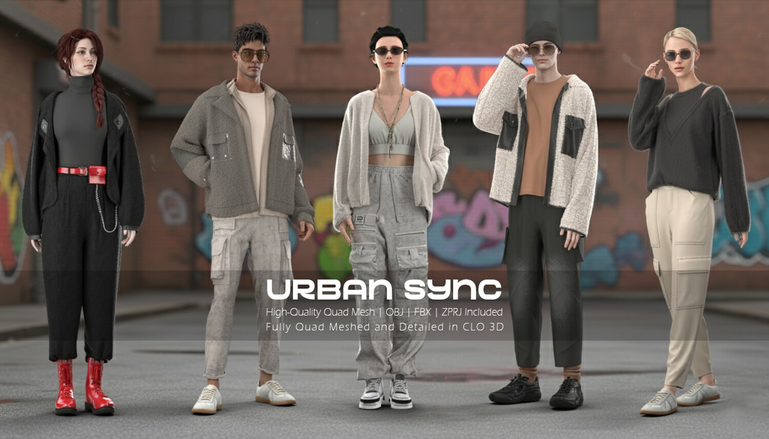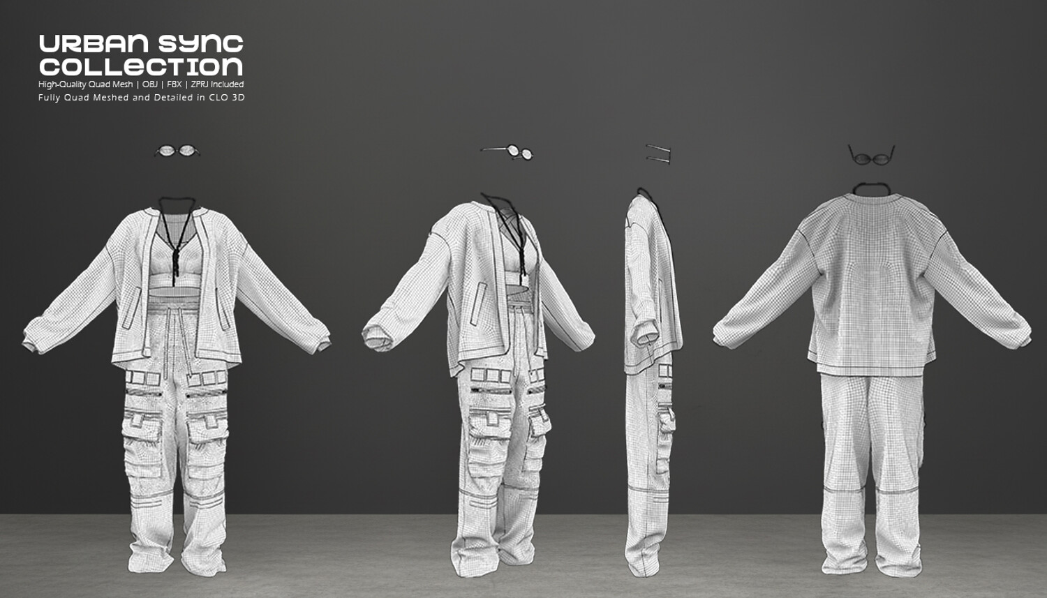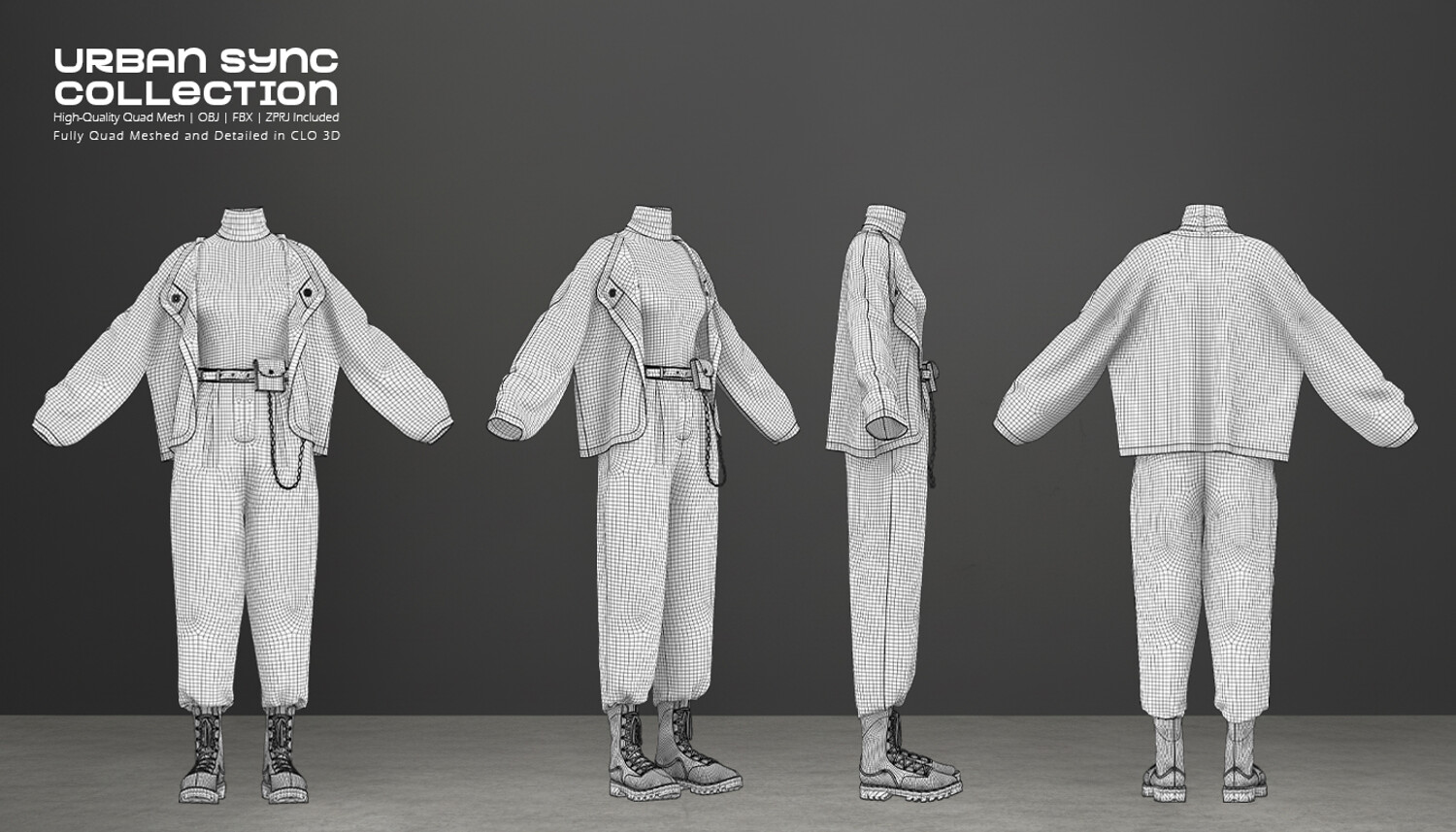 URBAN SYNC High-Quality Quad Mesh | OBJ | FBX | ZPRJ | MARMOSET File Included Fully Quad Meshed and Detailed in CLO 3D