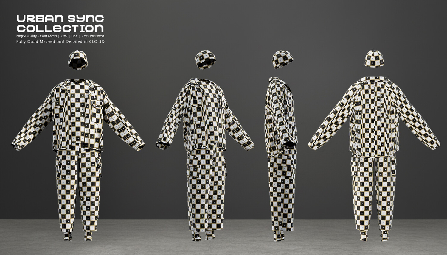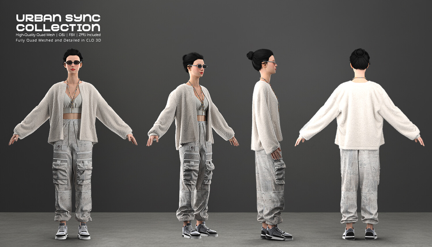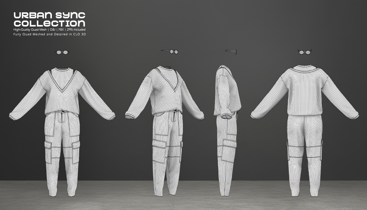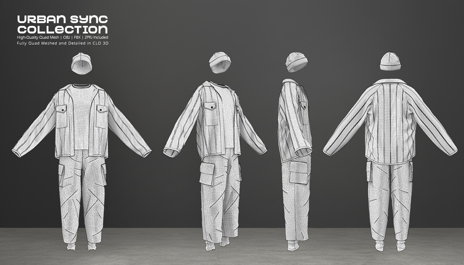 URBAN SYNC High-Quality Quad Mesh | OBJ | FBX | ZPRJ | MARMOSET File Included Fully Quad Meshed and Detailed in CLO 3D