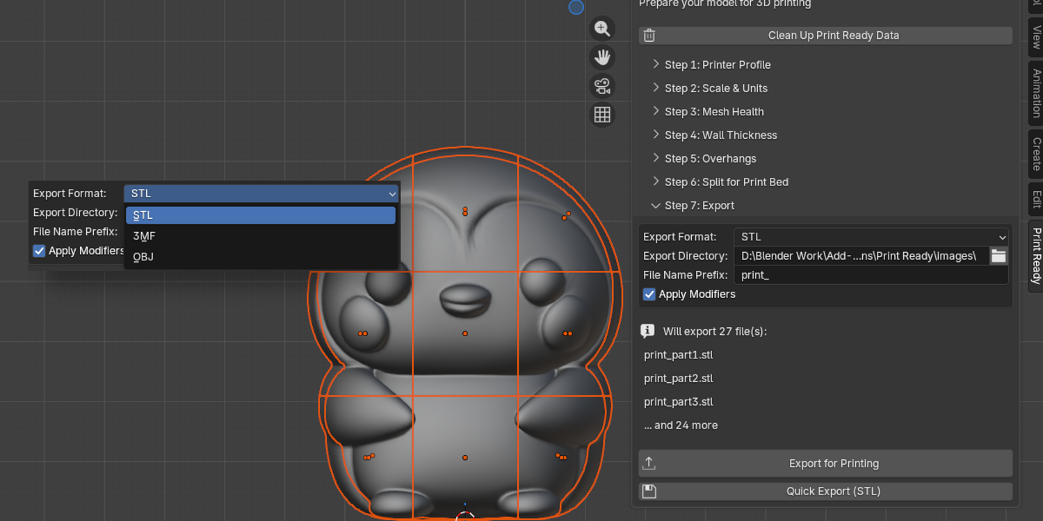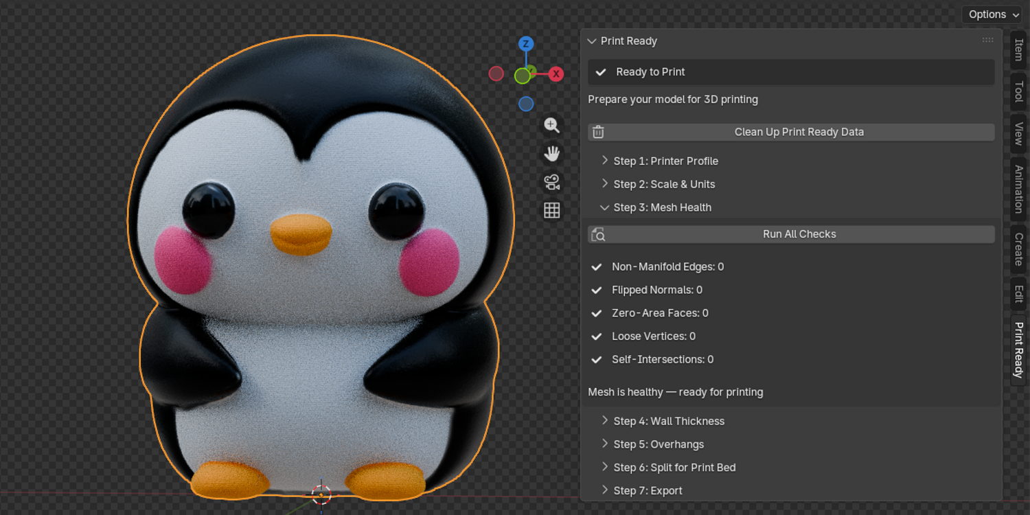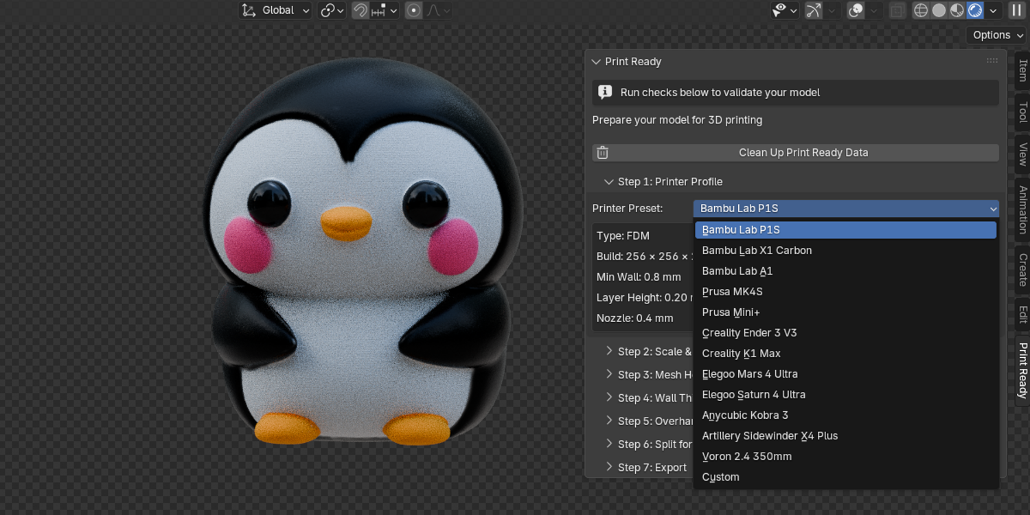 A blender extension for easy and accurate preparation of a 3D model for 3D printing. It includes presets for well known 3D printers with ability to build a custom printer profile.