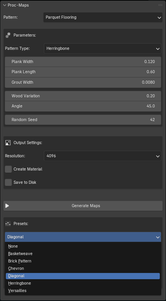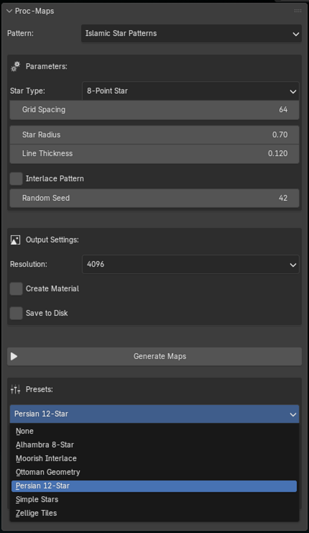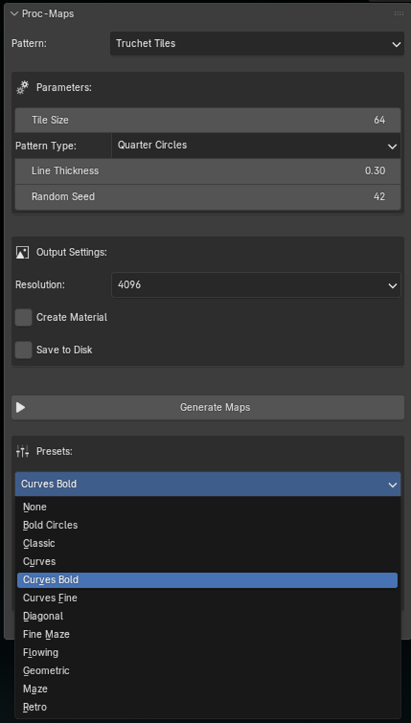 blender Extension/Addon to generate seamless / Tileable texture maps. Includes 8 categories and 70+ presets. It provides infinite options based on user inputs with ability to save input as new custom preset.
