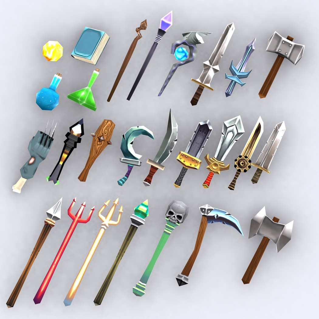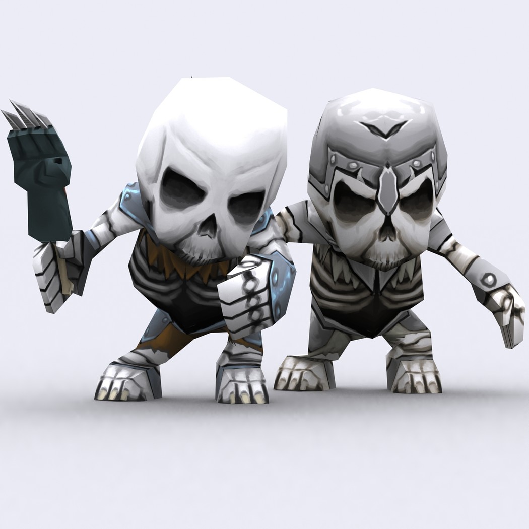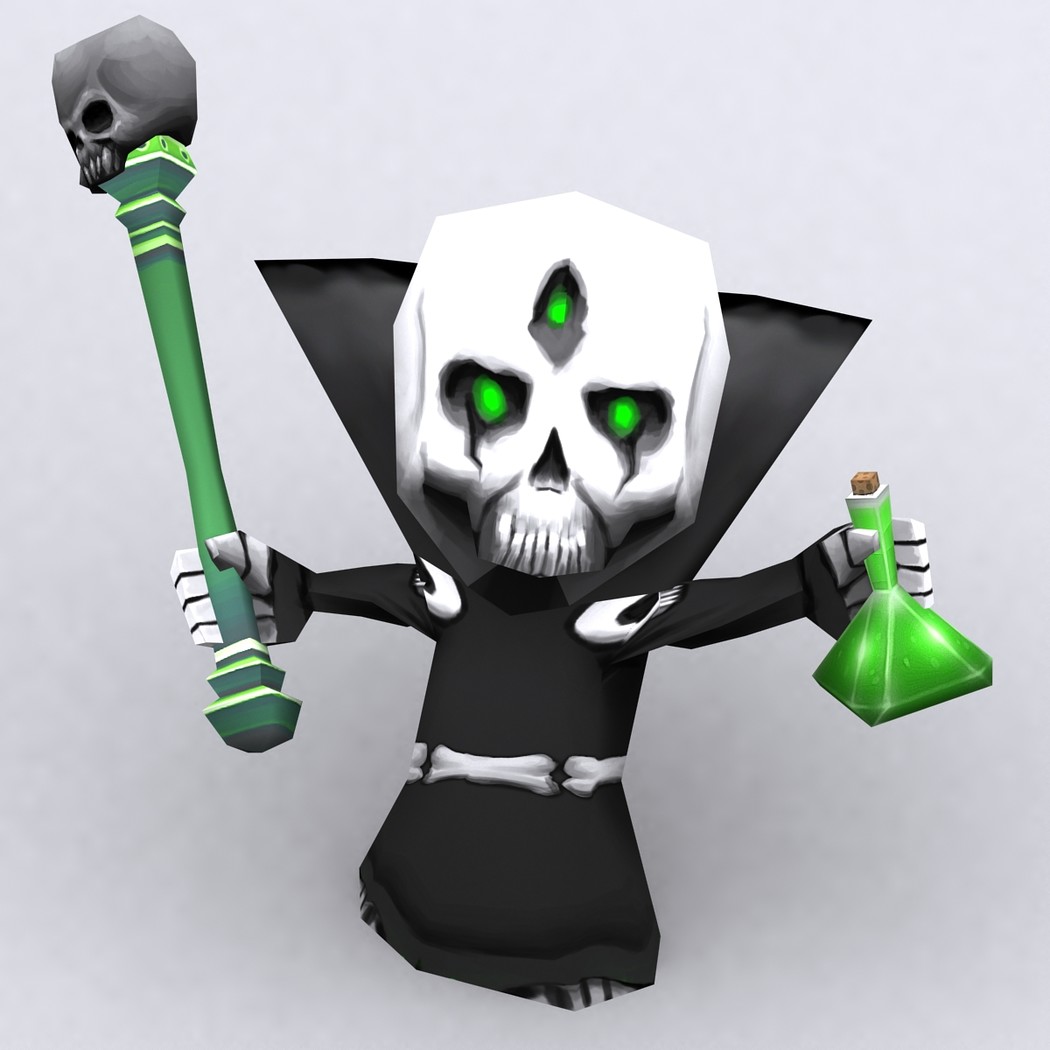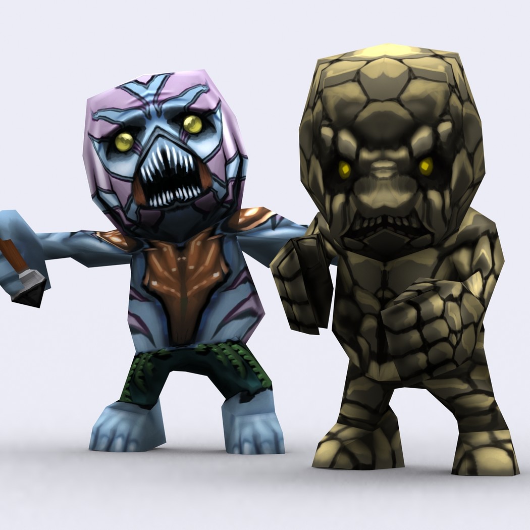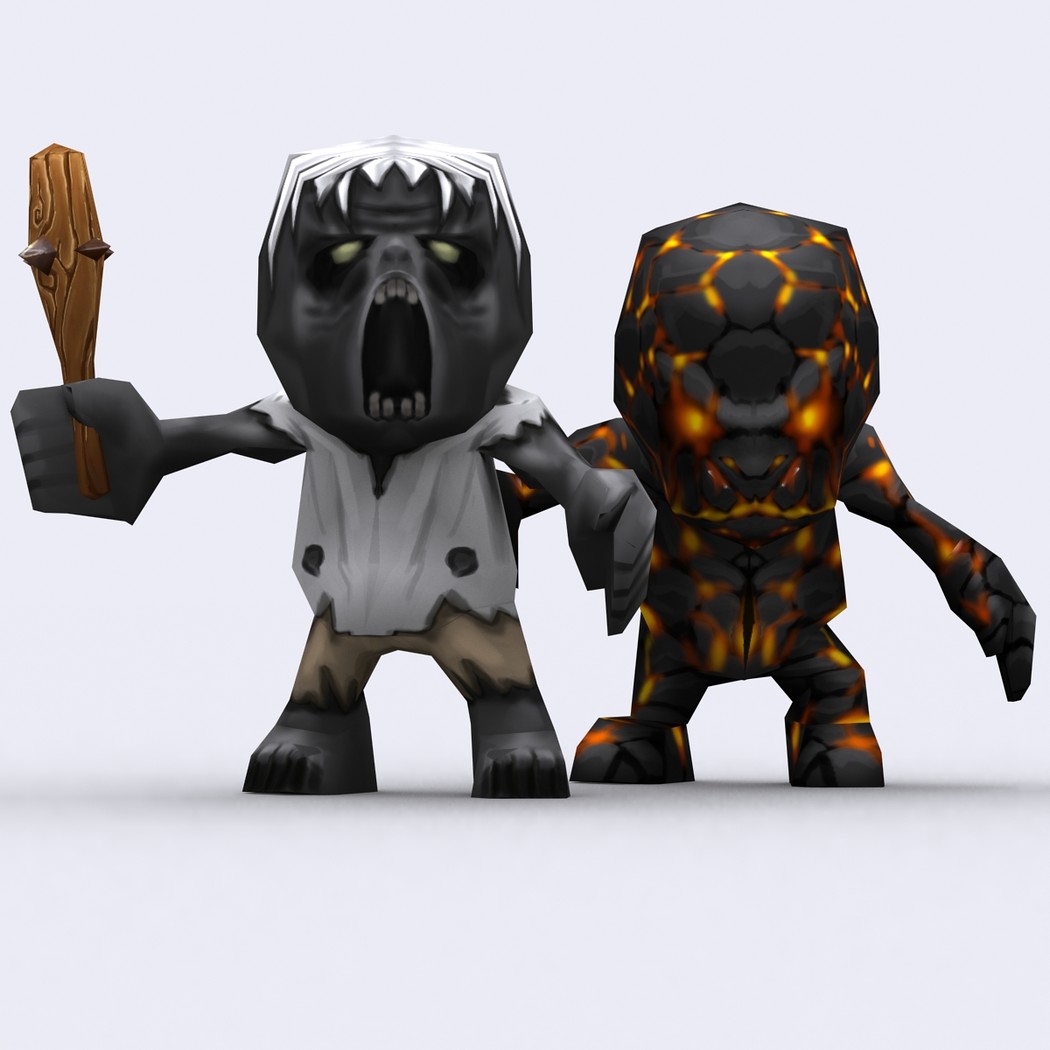 Chibii monsters: mages and demons. 4 mages meshes + 12 texture skins for each 4 demons meshes + 21 texture skins for each just 300-400 tris per mesh. 26 custom items: staves, swords magical items. 2048x2048 .tga textures