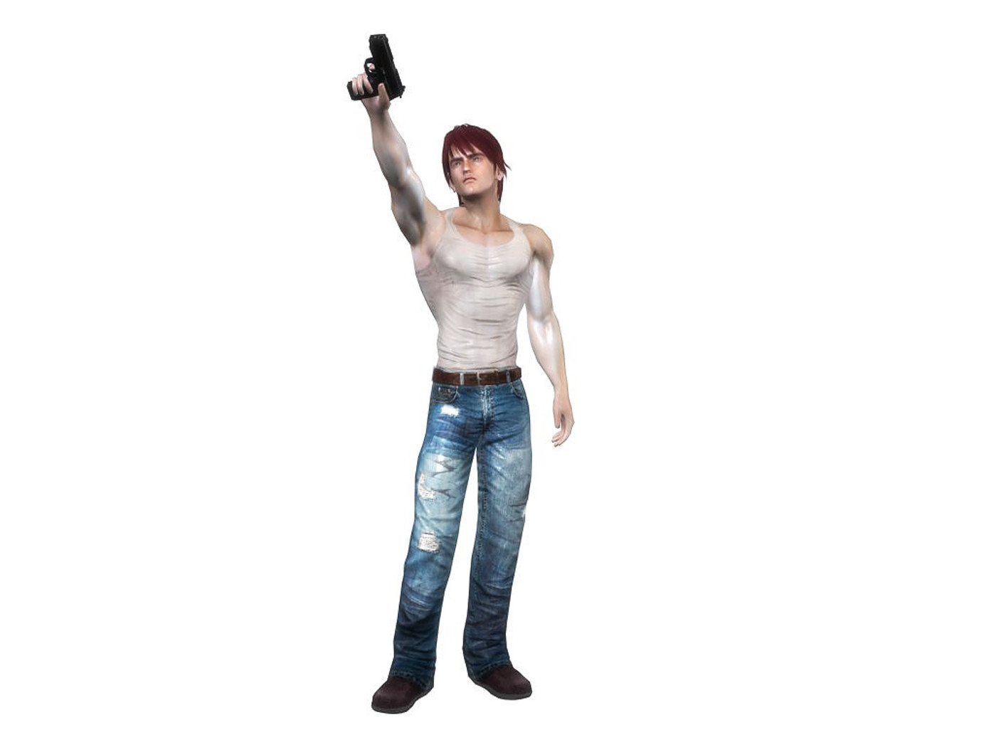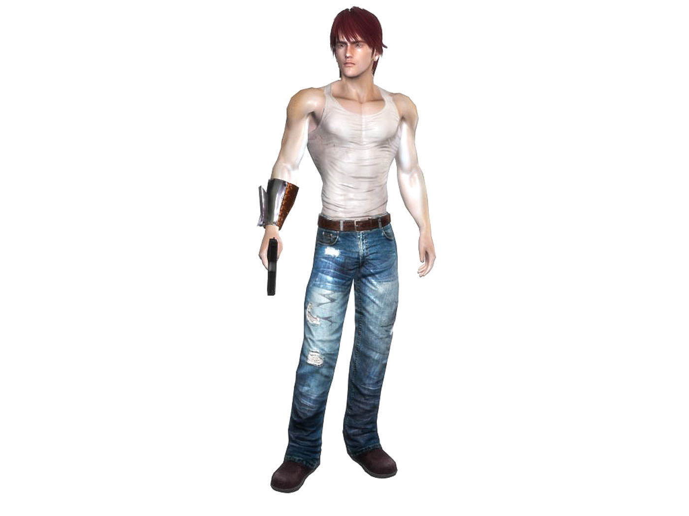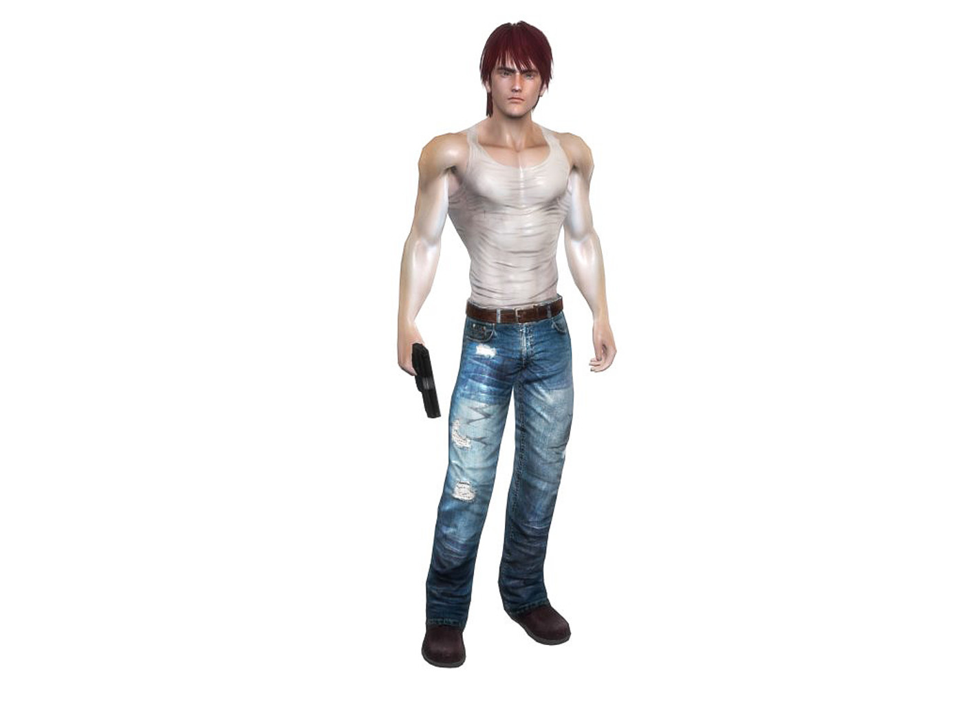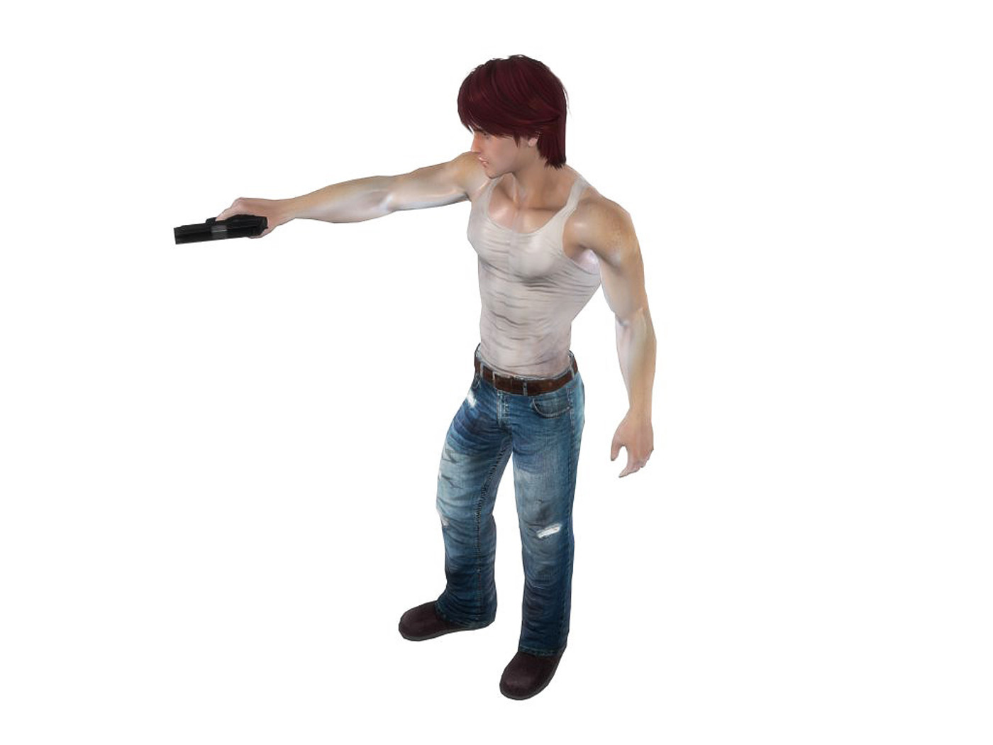 Features: Fully rigged, textured and animated + gun prop. Clothing parts and hair and weapon are separated meshes so you can switch them as you wish. Total 61 animations + facial animations. 4 body texture options (with normal and specular maps for each) Polygon count: character body: 6492 tris, jeans: 1920 tris, hair: 3163 tris. Textures: 26 diffuse maps, normal maps, specular maps. Animations: gun stand gun reload gun hit 1 gun hit 2 gun death gun ready gun ready reload gun fire gun fire down gun fire up gun ready hit 1 gun ready hit 2 gun ready death walk walk with gun run stand stand blink idle talk deny jump jump to edge edge idle edge move right edge move left edge drop edge jump up ready attack 1 attack 2 attack 3 attack 4 attack 5 attack6 block cast spell dodge hit 1 hit 2 death bow shoot bow idle walk B run B stand B idle B ready B attack B1 attack B2 attack B3 hit B1 hit B2 dead B jump B push climb swim pull climb up climb down