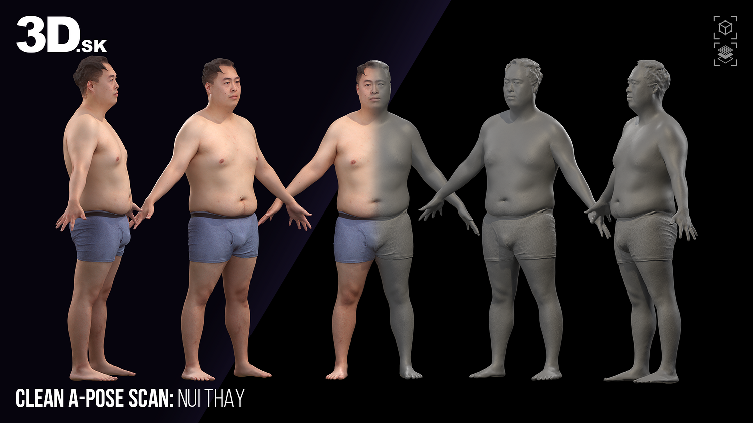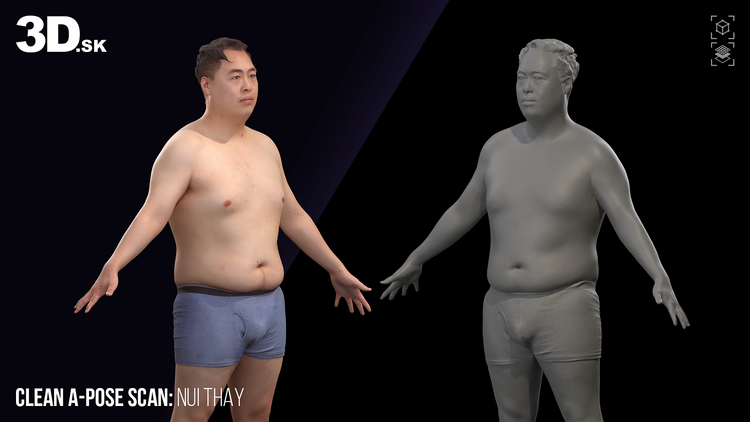 3D.sk Store provides all you need for 2D&3D artist and game developers. Explore raw 3D scans & retopologized models of head, hand, full body in A-pose or daily pose and props. And a variety of 2D references such as Photo set of standing and sitting man/woman, flexing & expressions. Premade head texture, HD skin and HD eye details.