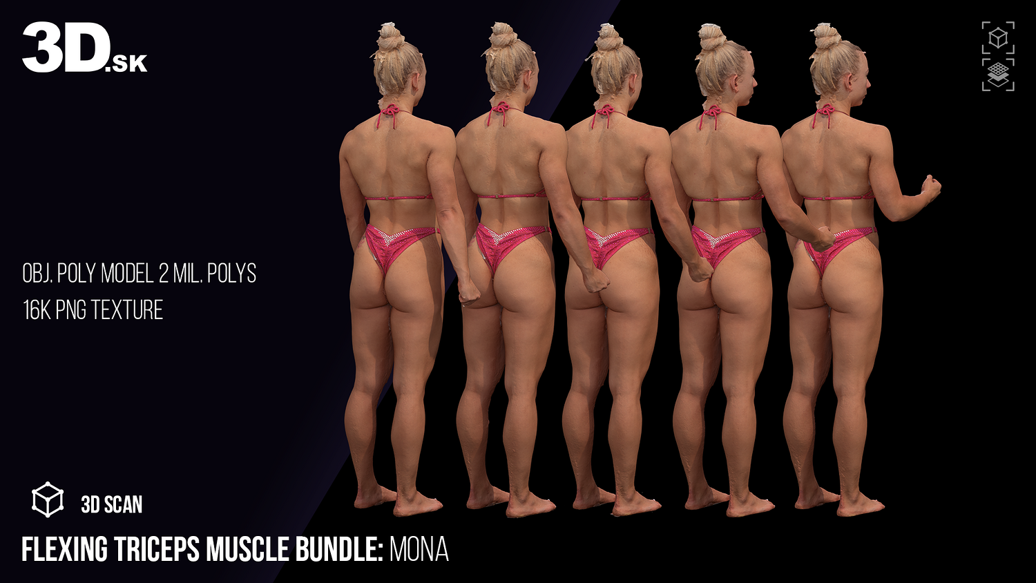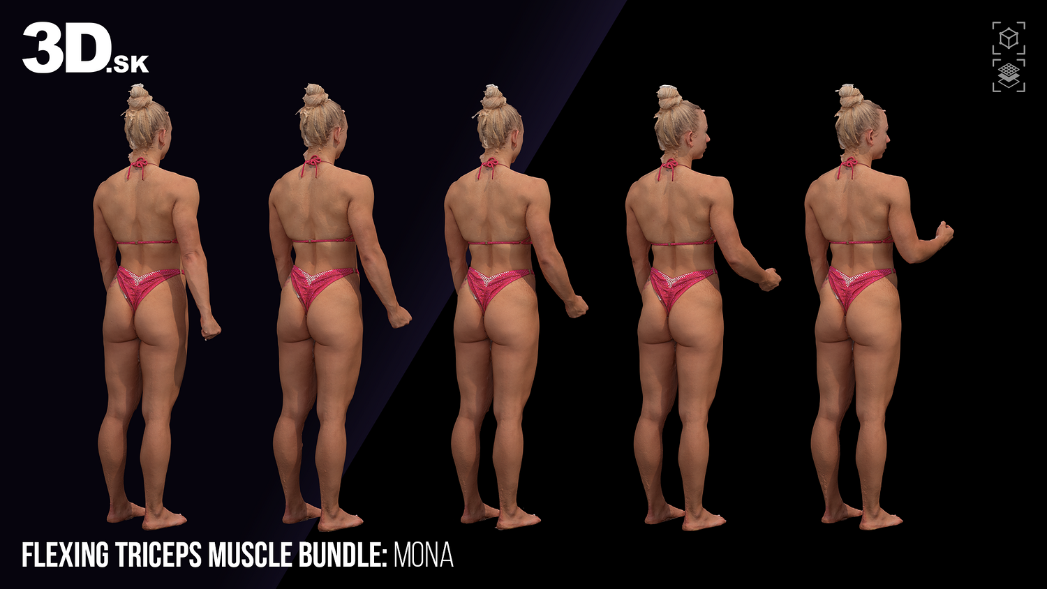 Female 3D Character Mona - 5x Flexing Triceps Scan Bundle