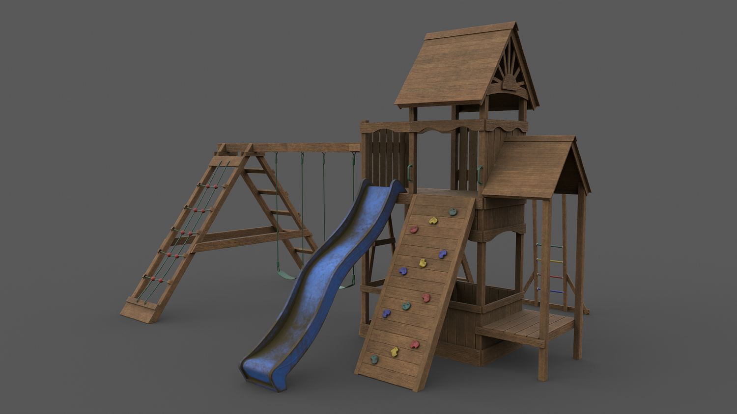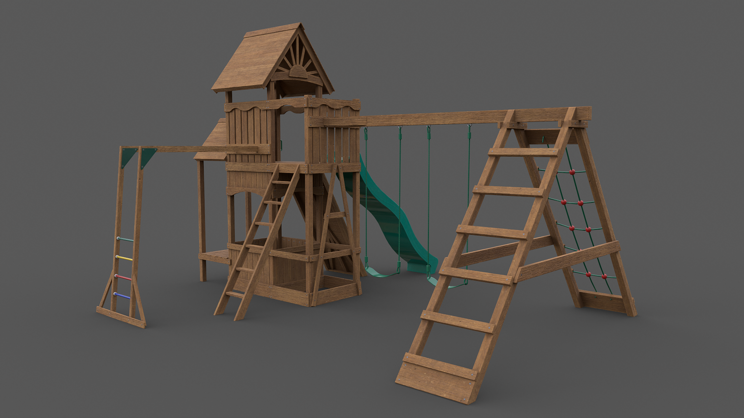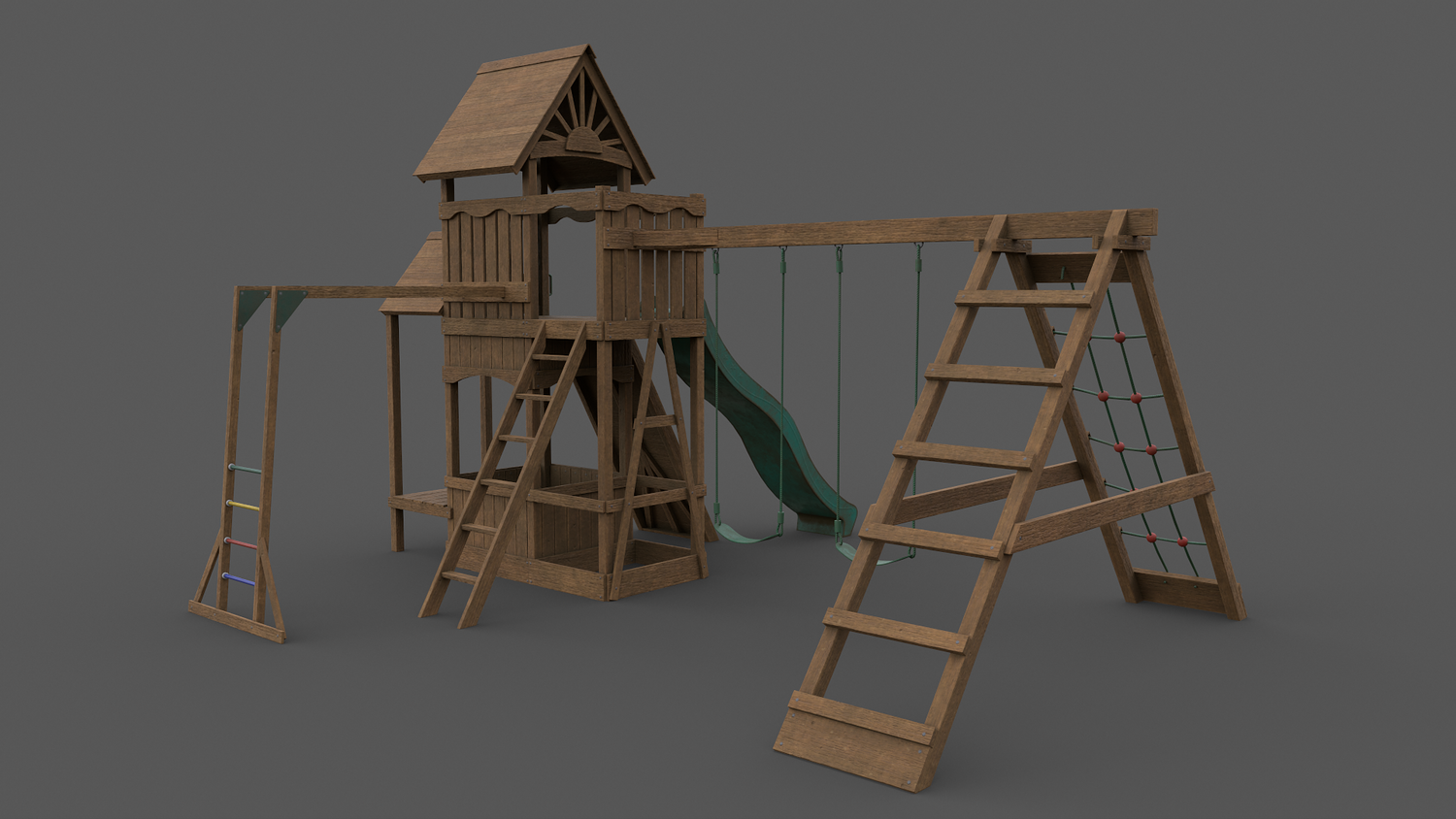 [ kids children play area ground playground park house jungle gym funfair fun fair outdoor equipment fitness slide swing sports game toy exterior tunnel hut public amusement gorilla playsets playset wood wooden 3d ar vr unity cryengine unreal engine low poly game ready amazon lumberyard realistic pbr augmented virtual reality vray v-ray arnold photoreal real time model asset ruin rusted ]