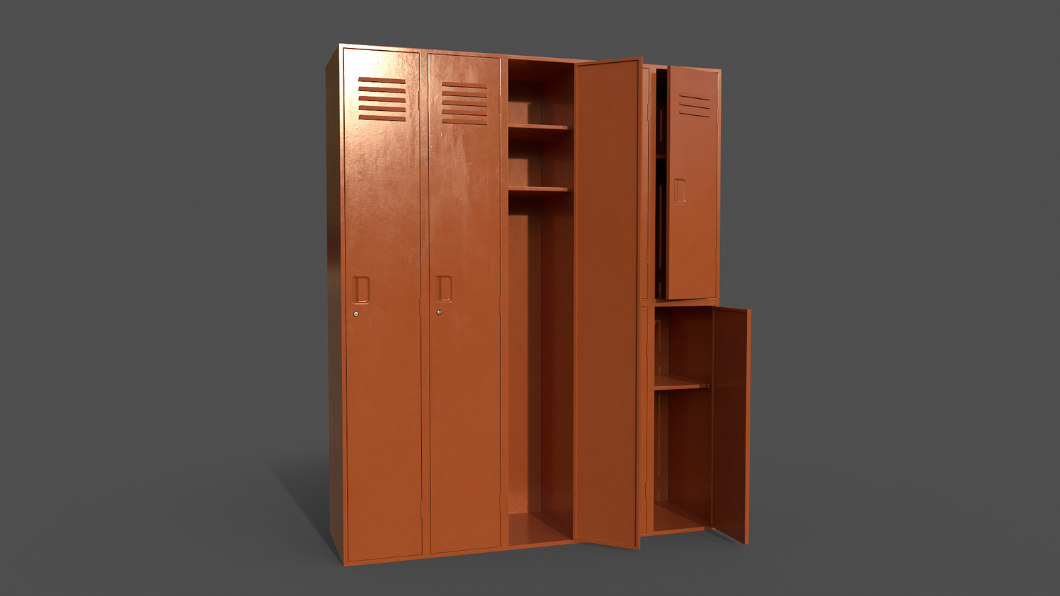 - School Gym Locker 01 - Multi color 11 in 1 x (Clean,Dirty,Rusty) Polygons= 933 Verts= 1212