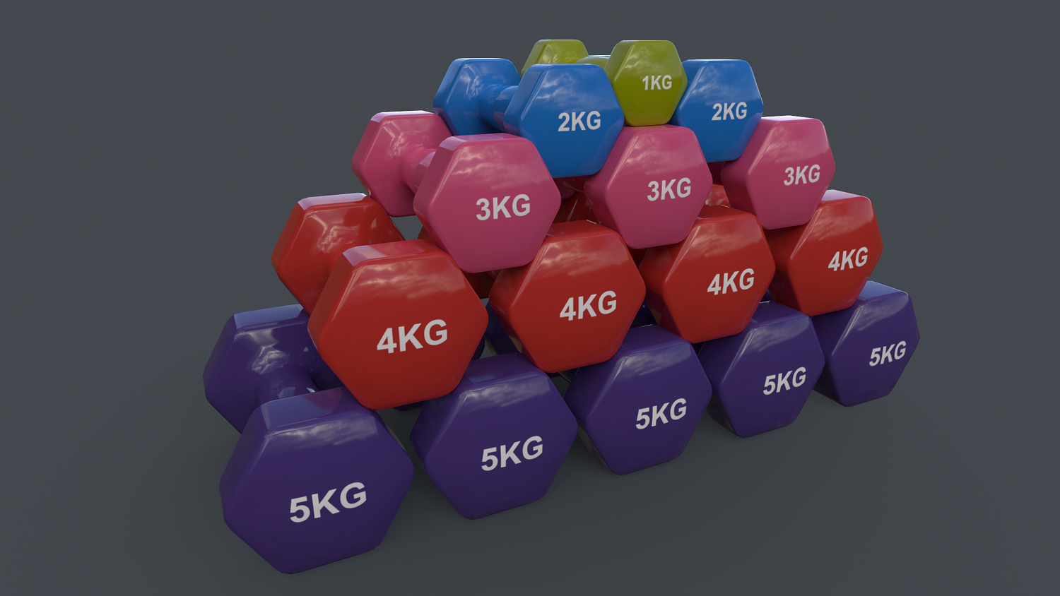 - Hexagon Dumbbell 2.5KG_30KG - Polygons= 364 Verts= 392