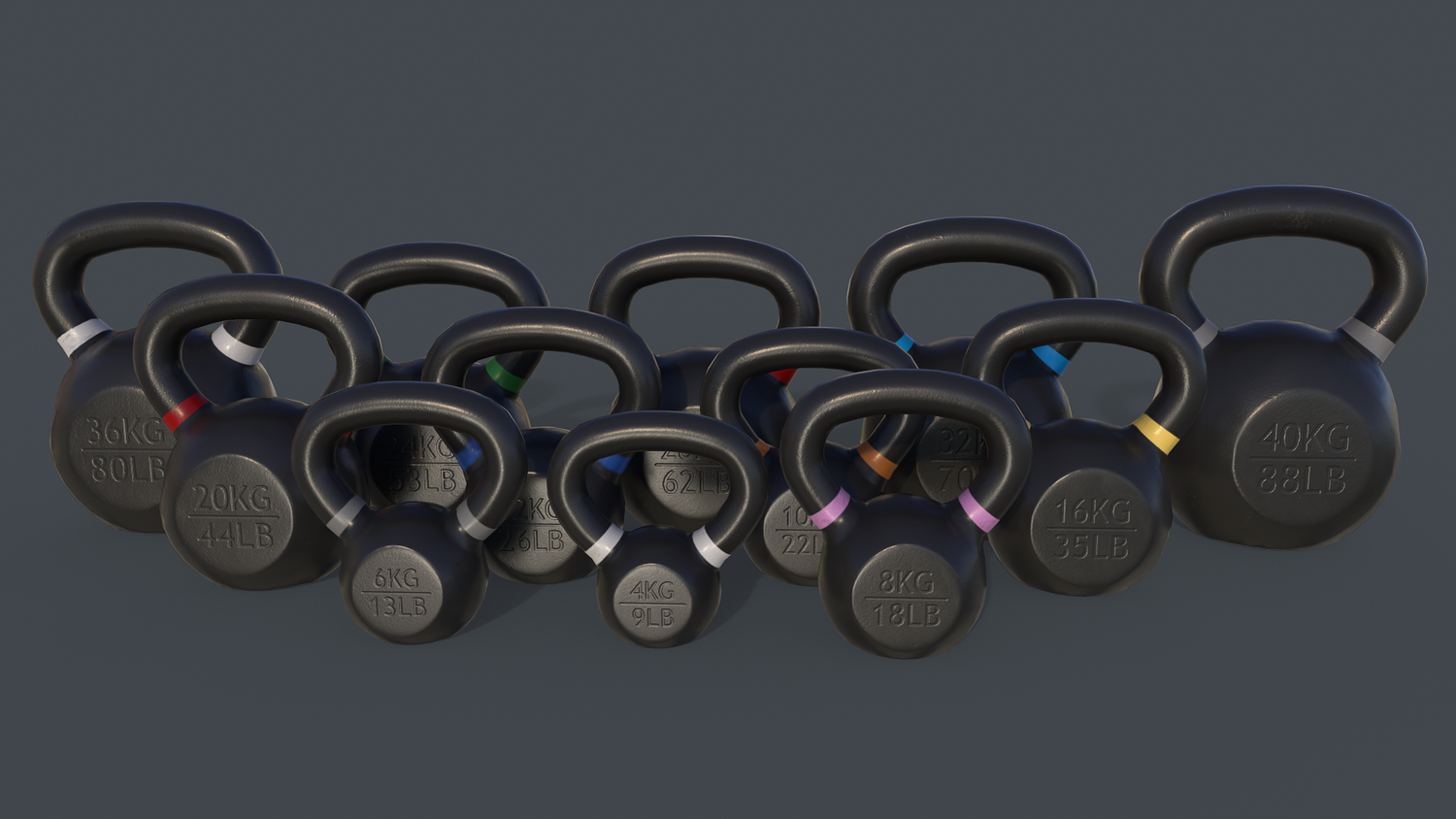 - 4-16KG Kettlebell V1 - Multi color 10 in 1 Link - Polygons= 827 Verts= 817