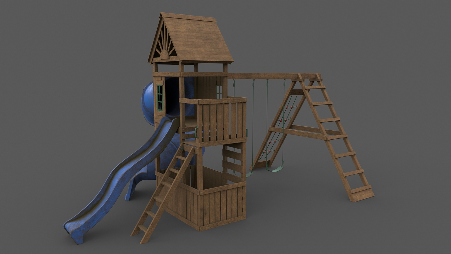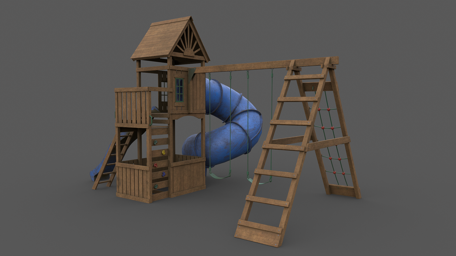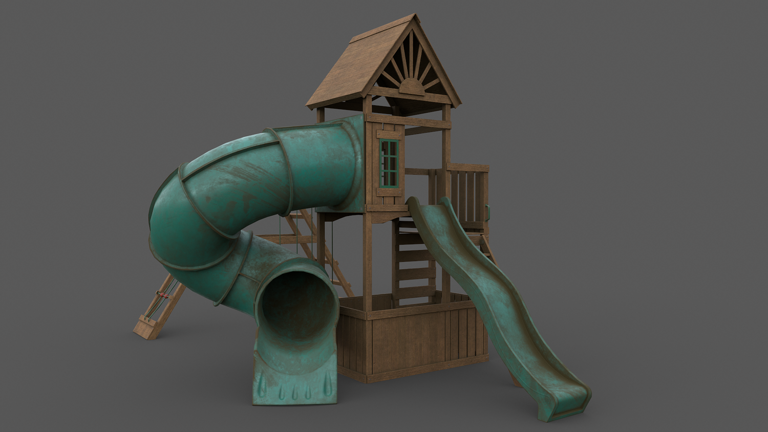 [ kids children play area ground playground park house jungle gym funfair fun fair outdoor equipment fitness slide swing sports game toy exterior tunnel hut public amusement gorilla playsets playset wood wooden 3d ar vr unity cryengine unreal engine low poly game ready amazon lumberyard realistic pbr augmented virtual reality vray v-ray arnold photoreal real time model asset ruin rusted ]