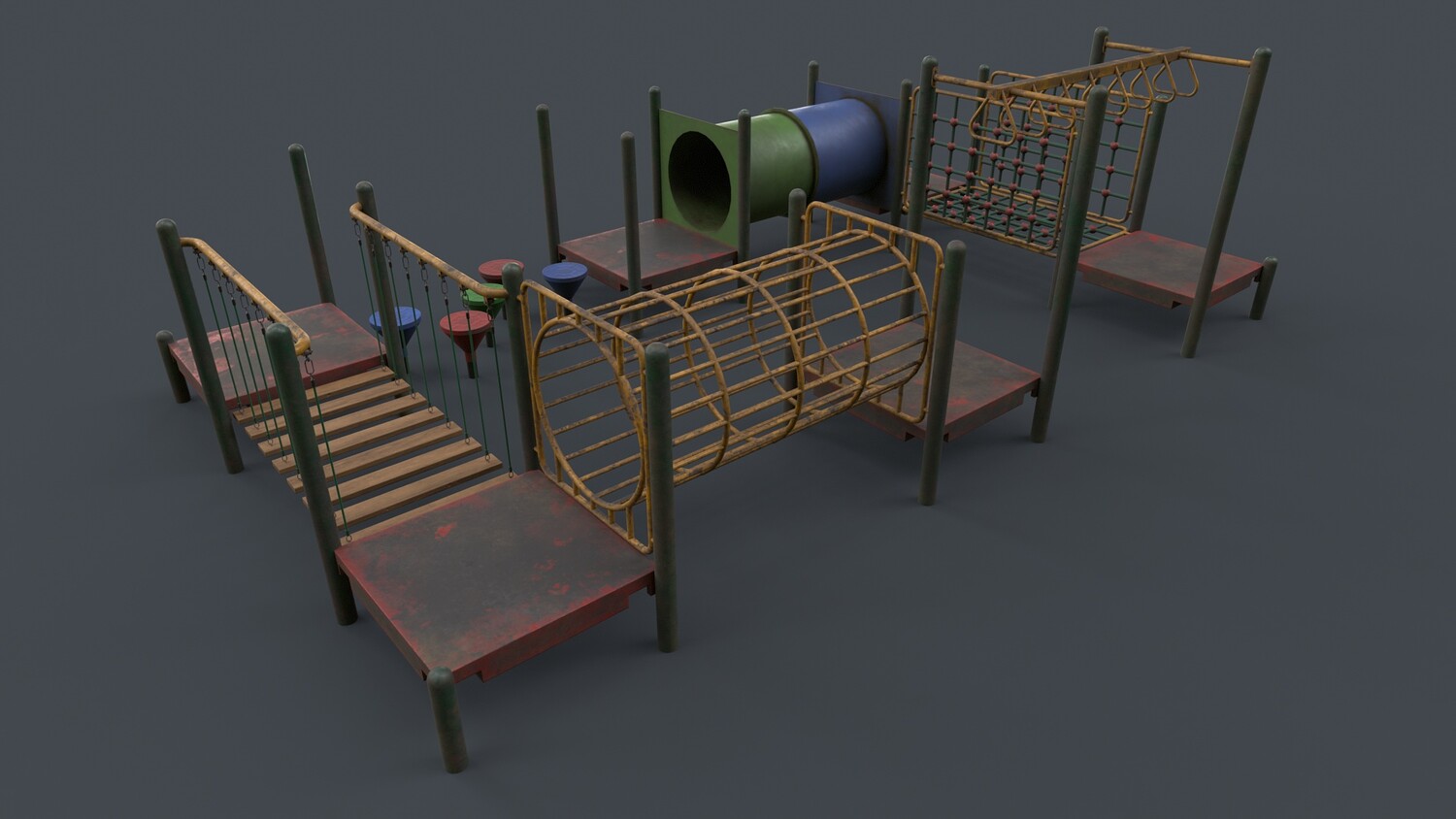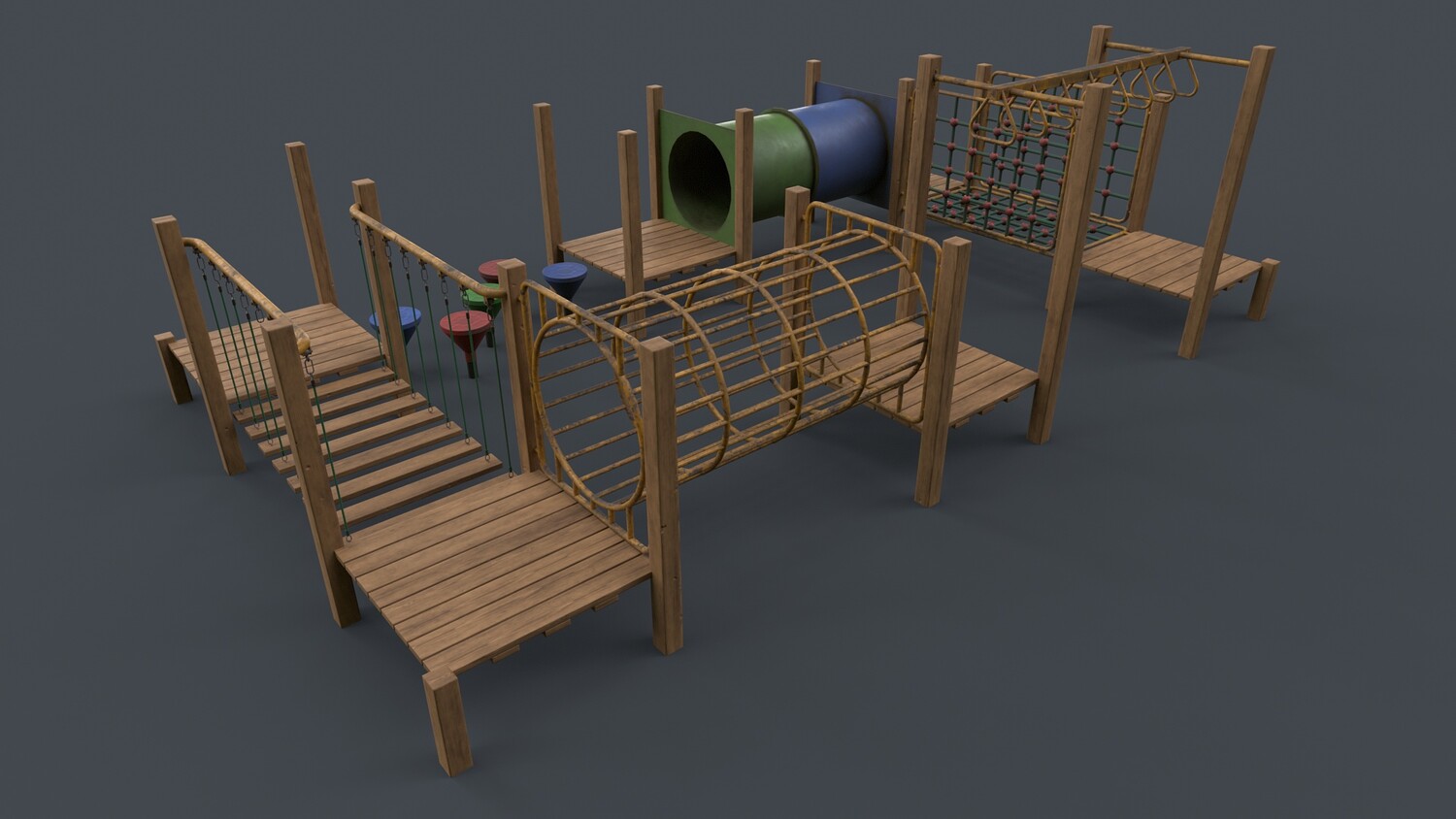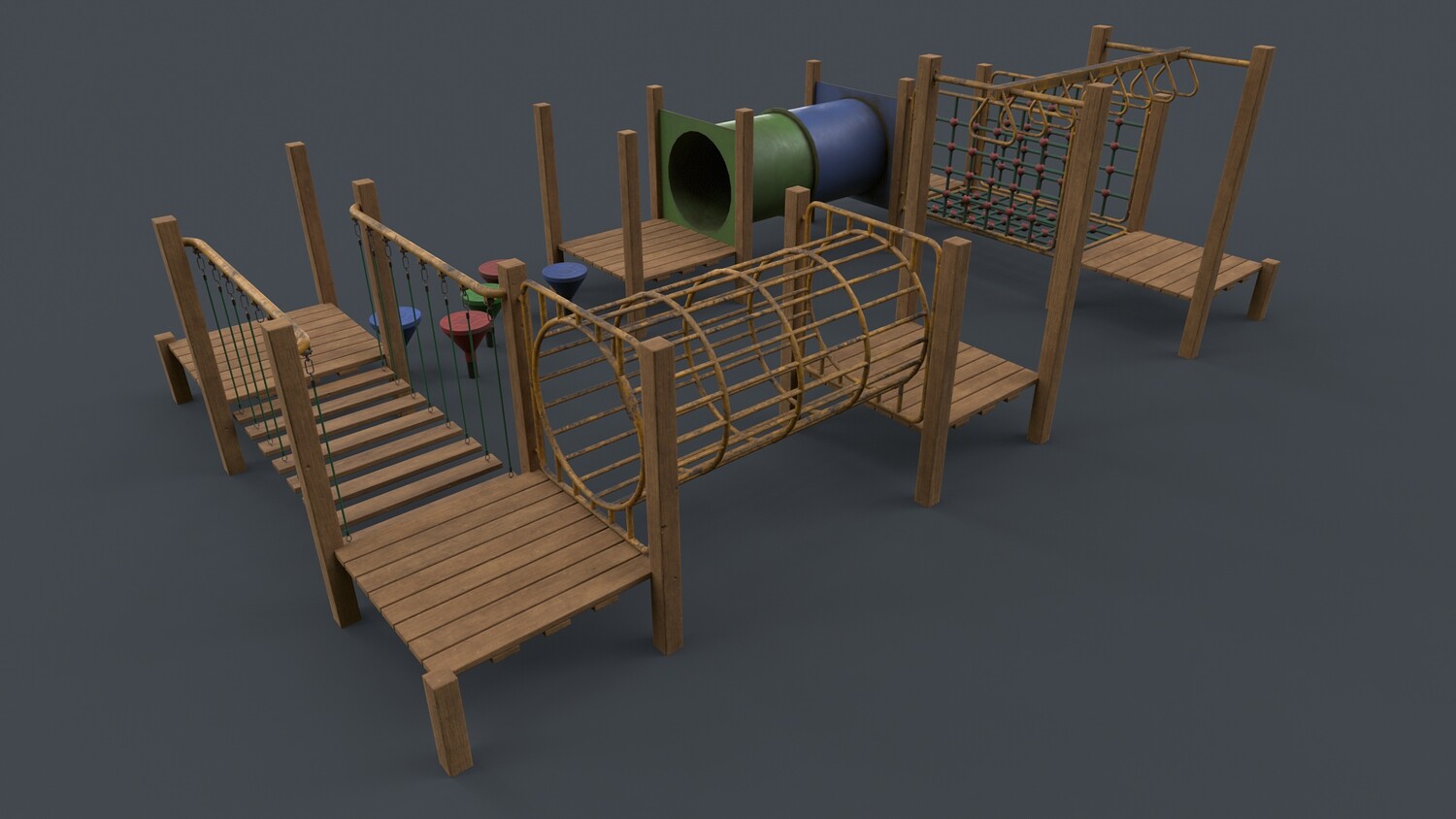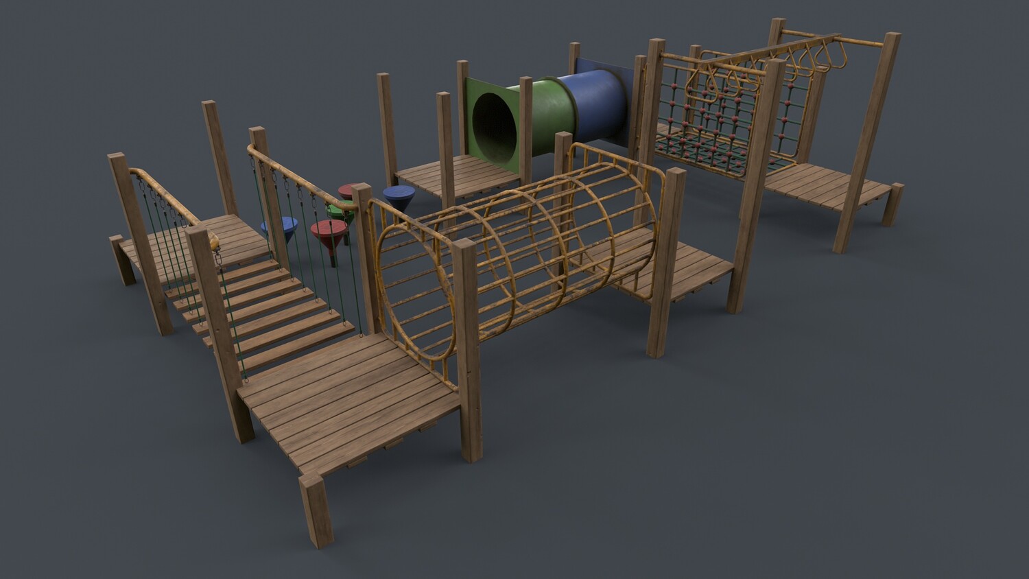 [ kids children play area ground playhouse playground park house climbing climber recreation funfair fun fair outdoor equipment fitness slide swing sports game toy exterior tunnel hut public amusement gorilla playsets playset wood wooden 3d ar vr unity cryengine unreal engine low poly game ready amazon lumberyard realistic pbr augmented virtual reality vray v-ray arnold photoreal real time model asset ruin rusted ]