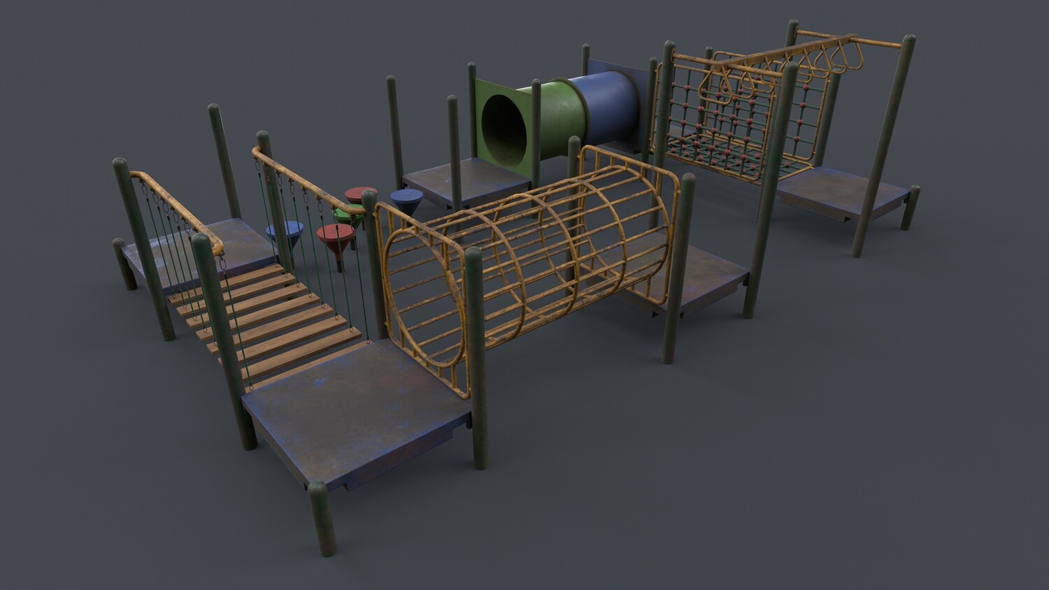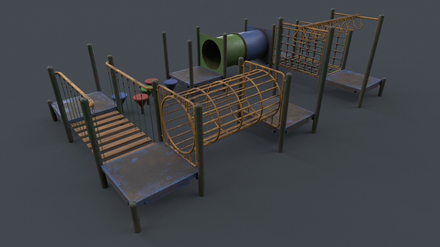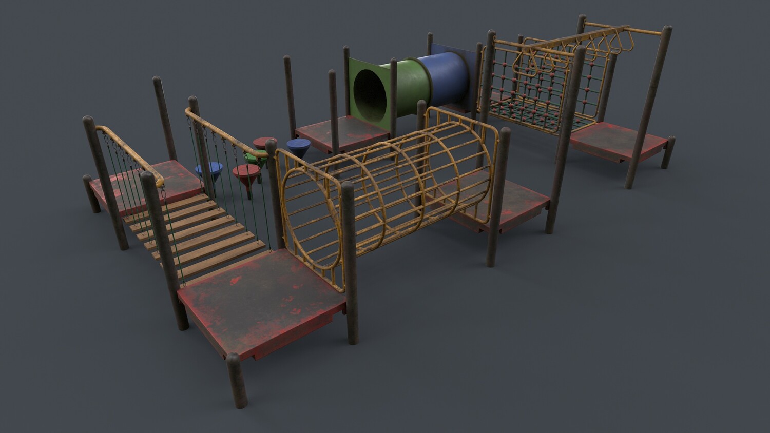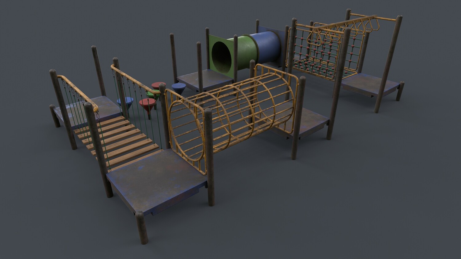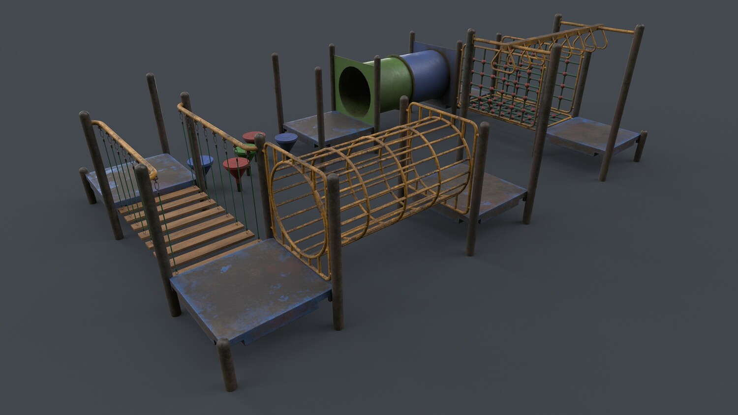 [ kids children play area ground playhouse playground park house climbing climber recreation funfair fun fair outdoor equipment fitness slide swing sports game toy exterior tunnel hut public amusement gorilla playsets playset wood wooden 3d ar vr unity cryengine unreal engine low poly game ready amazon lumberyard realistic pbr augmented virtual reality vray v-ray arnold photoreal real time model asset ruin rusted ]