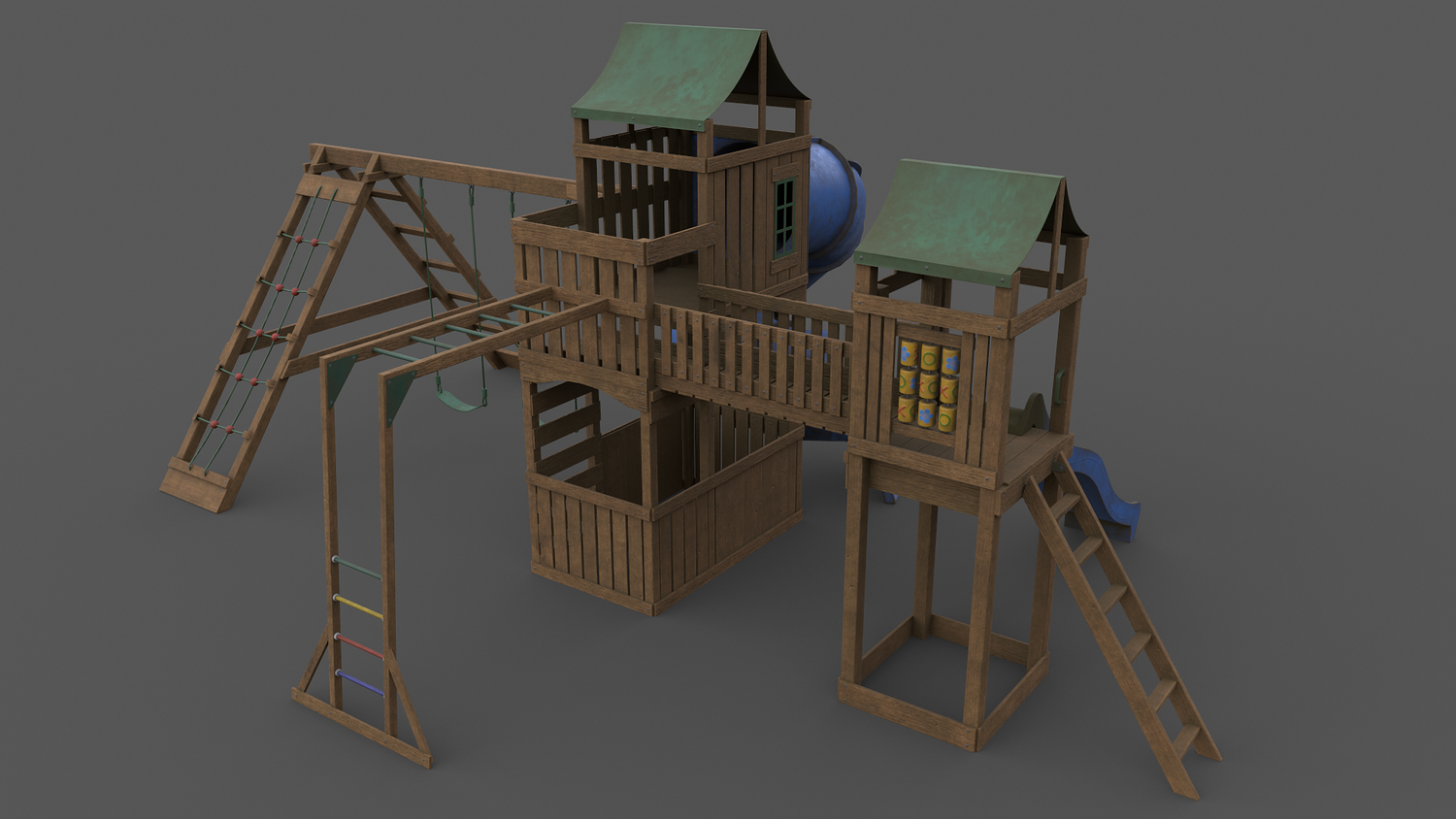 [ kids children play area ground playground park house jungle gym funfair fun fair outdoor equipment fitness slide swing sports game toy exterior tunnel hut public amusement gorilla playsets playset wood wooden 3d ar vr unity cryengine unreal engine low poly game ready amazon lumberyard realistic pbr augmented virtual reality vray v-ray arnold photoreal real time model asset ruin rusted ]