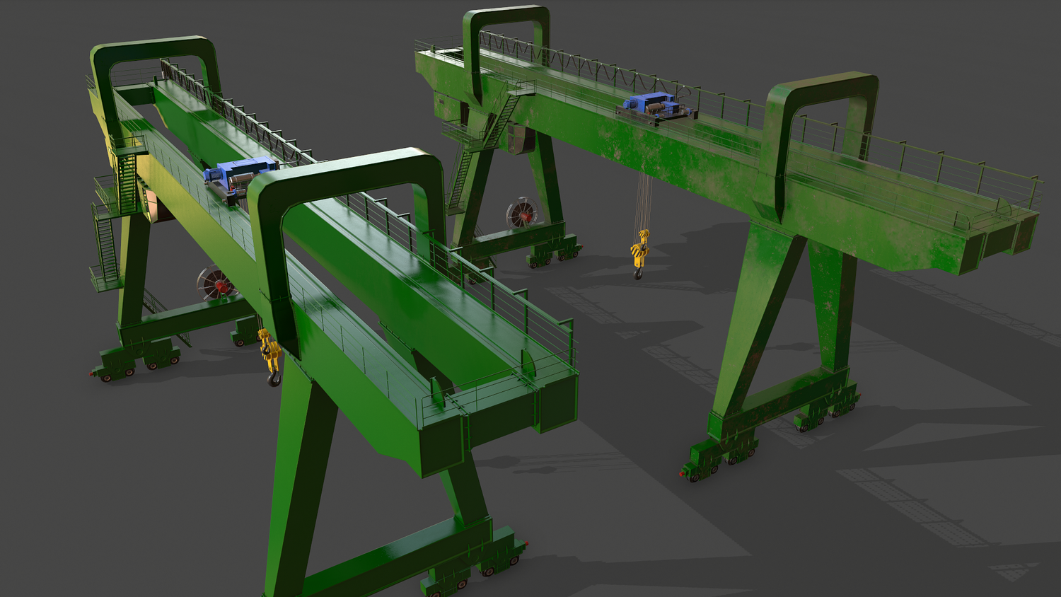 4) PBR Double Girder Gantry Crane V2(Green Light)x(Clean,Dirty)