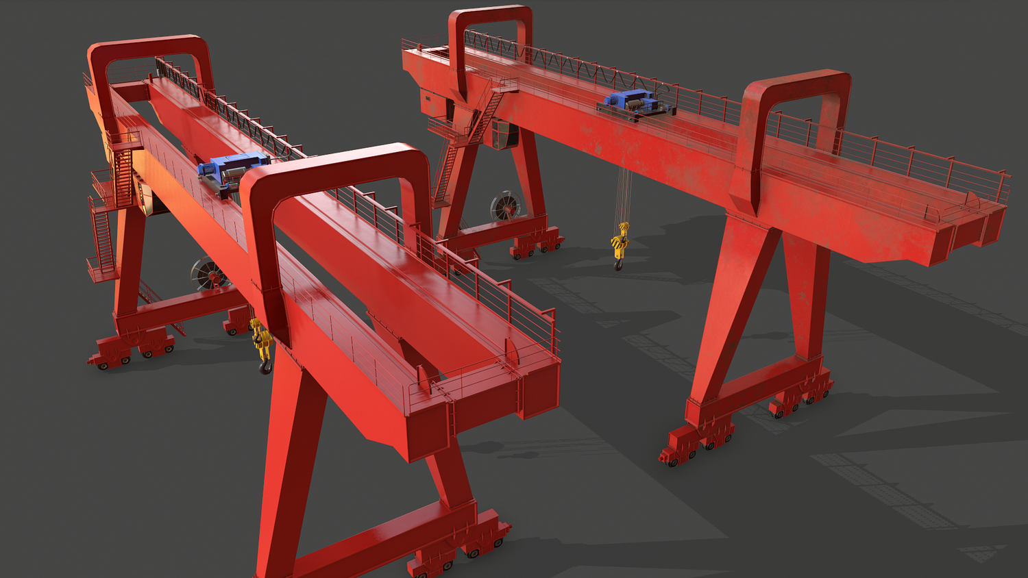 7) PBR Double Girder Gantry Crane V2(Red)x(Clean,Dirty)