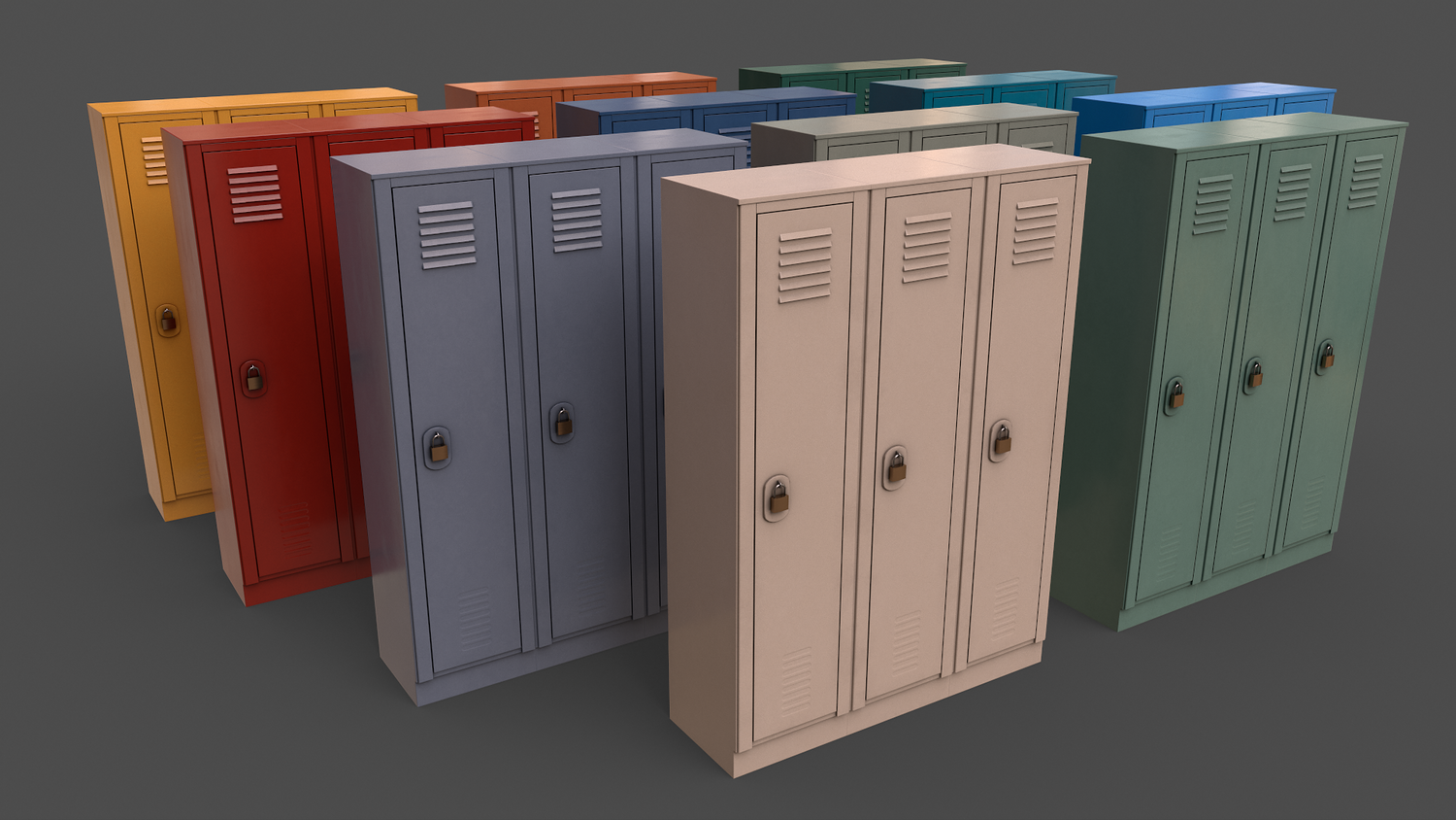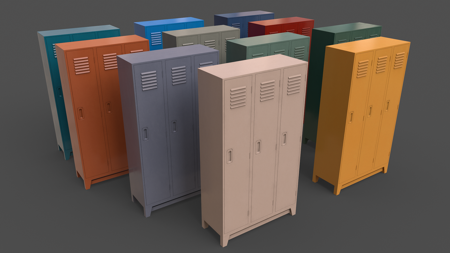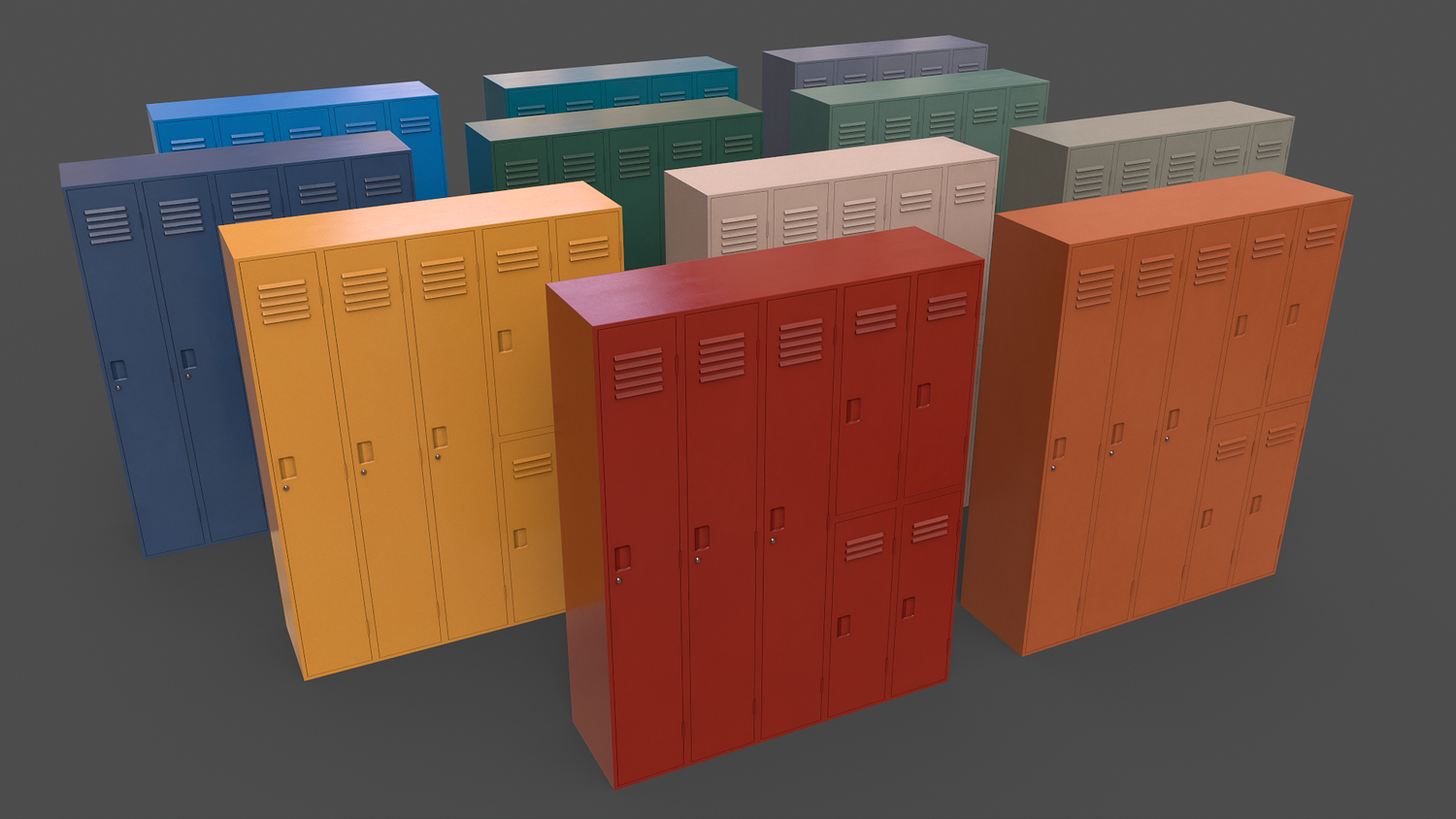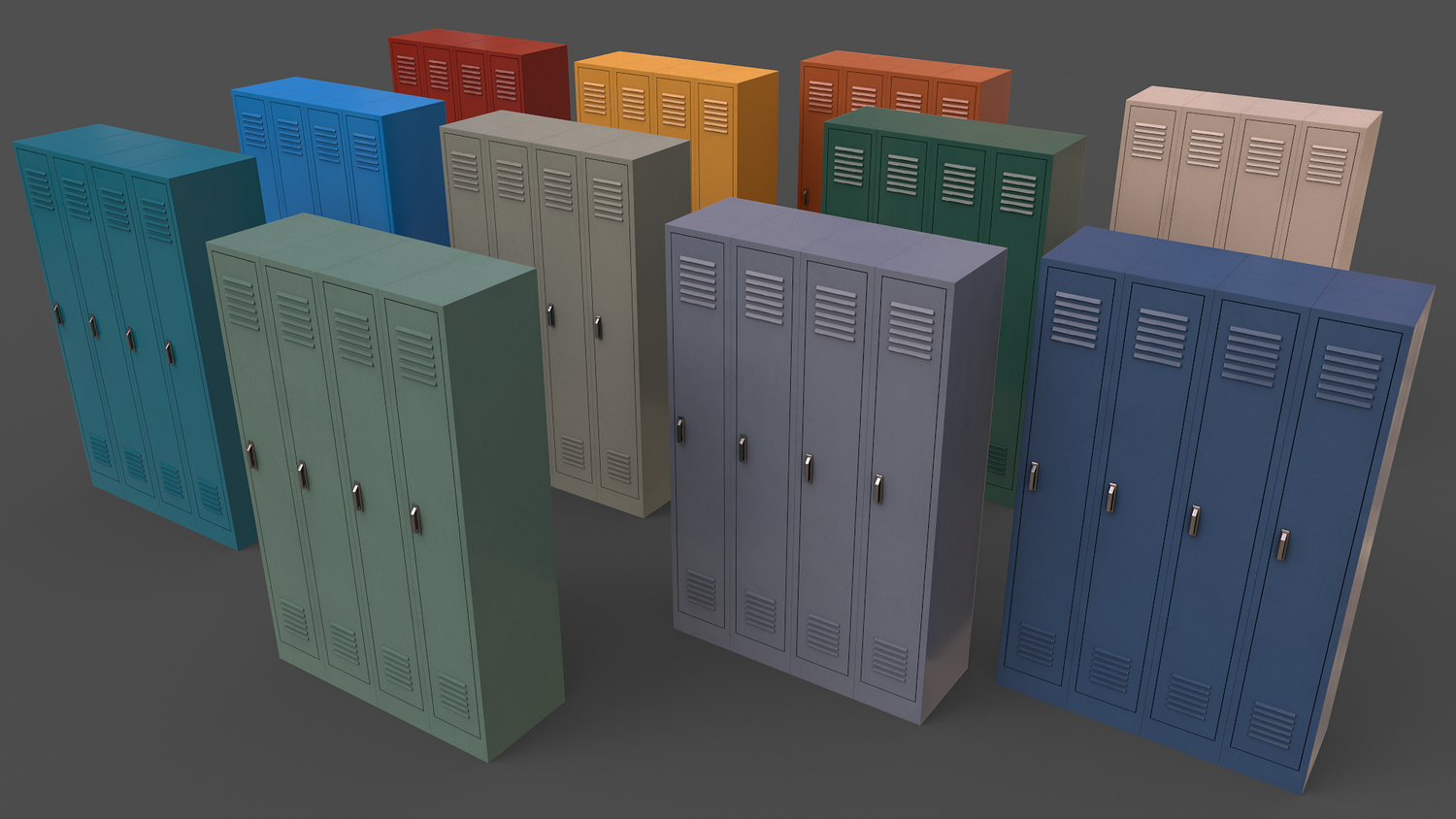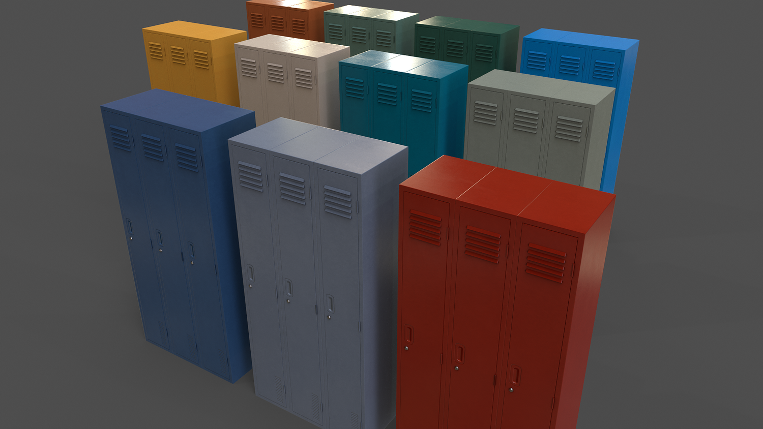 - School Gym Locker 10 - Multi color 11 in 1 x (Clean,Dirty,Rusty) Polygons= 884 Verts= 1200