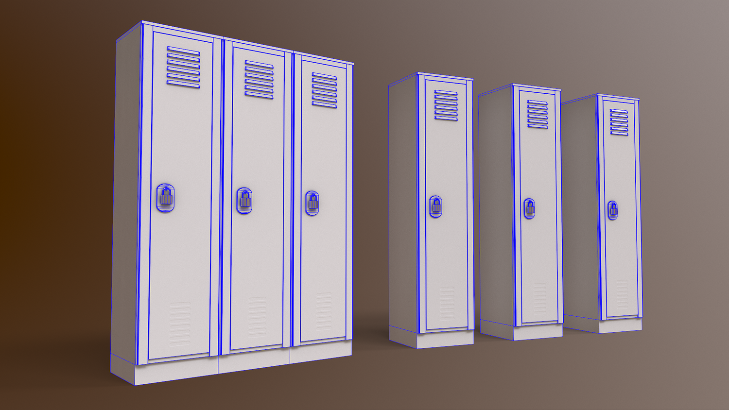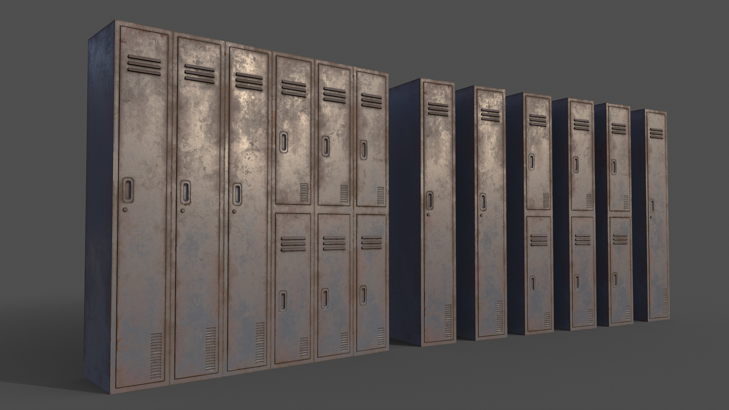 - School Gym Locker 01 - Multi color 11 in 1 x (Clean,Dirty,Rusty) Polygons= 933 Verts= 1212