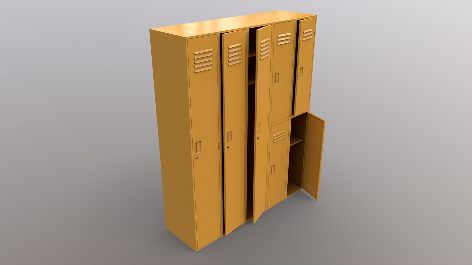 - School Gym Locker 02 - Multi color 11 in 1 x (Clean,Dirty,Rusty) Polygons= 1168 Verts= 1616