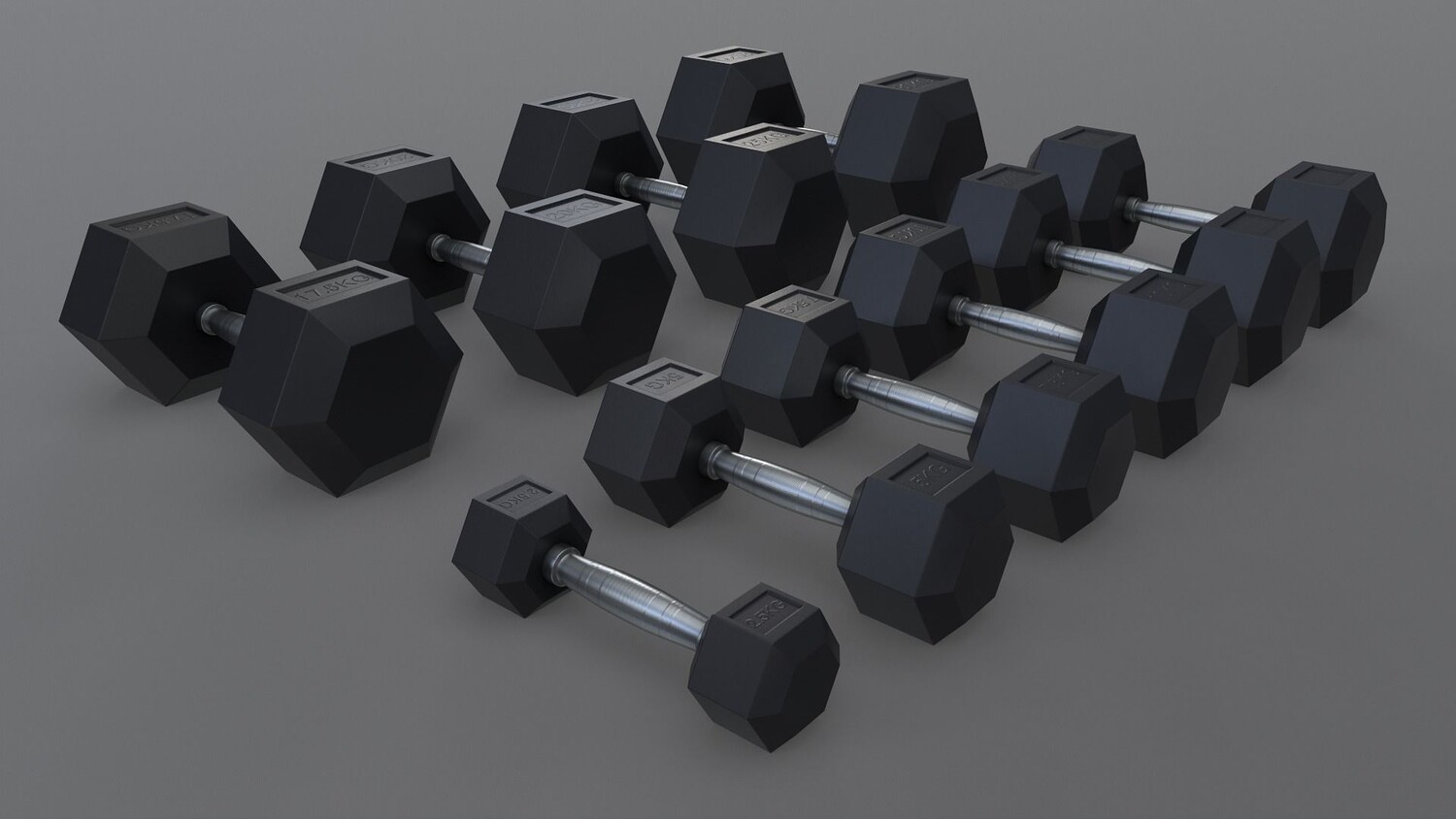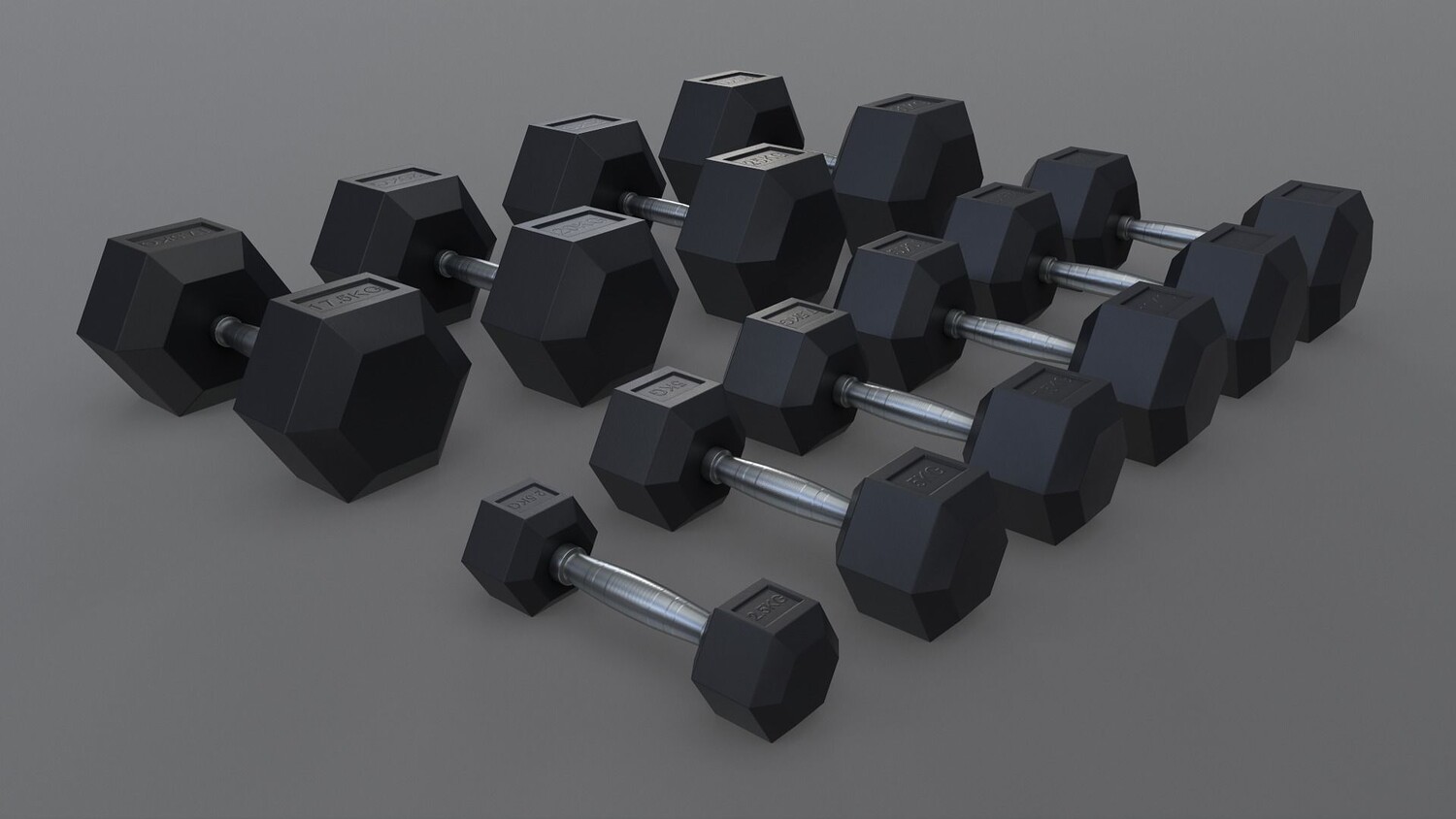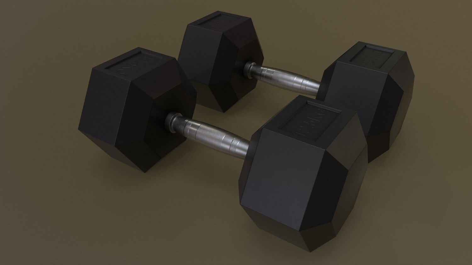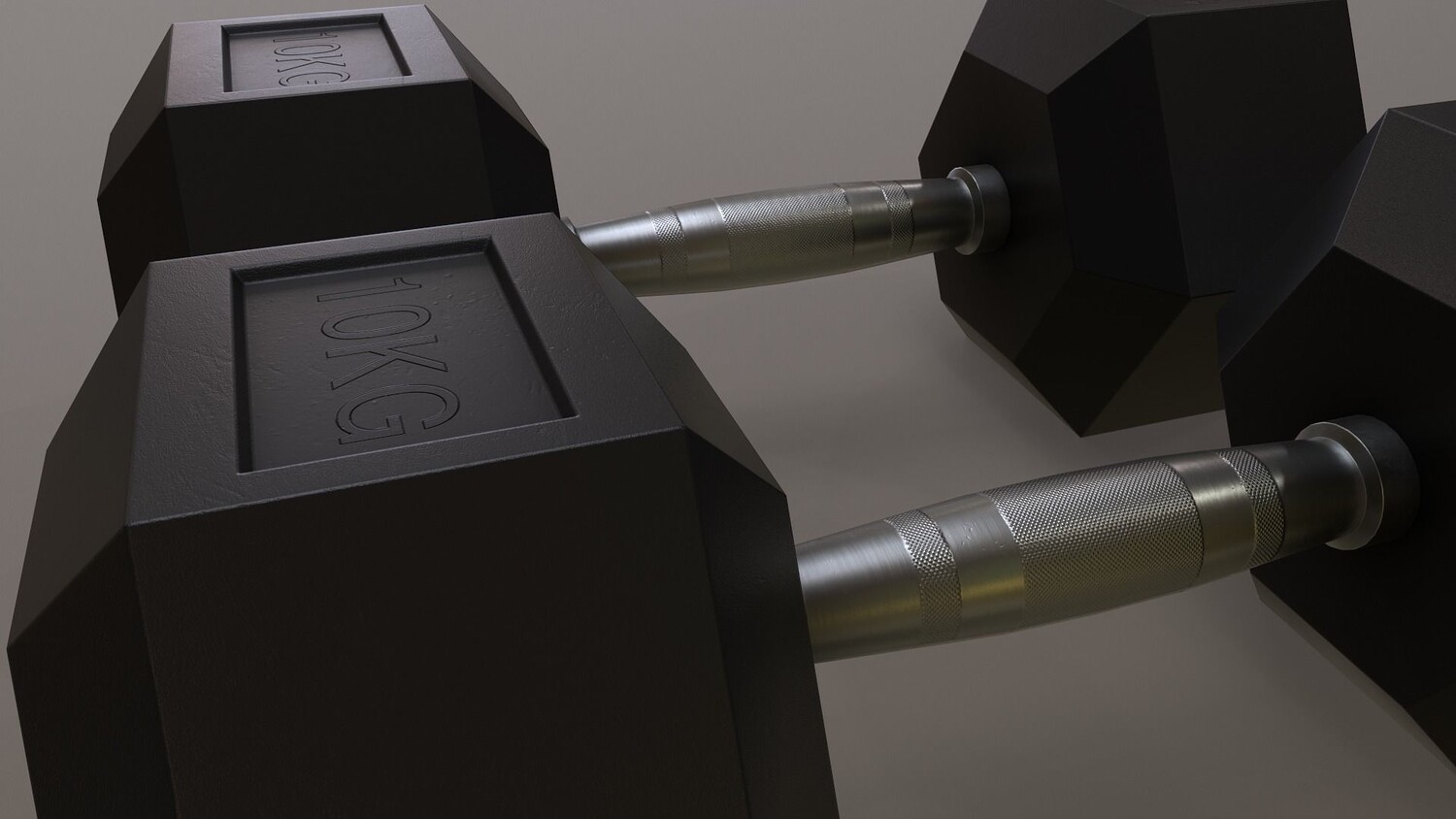 [ rubberized cast iron weight hex training barbell dumbbell body building yoga workout fitness indoor exercise gym home room sports equipment hexagonal chrome sports equipment 3d ar vr unity cryengine unreal engine low poly game ready amazon lumberyard realistic pbr augmented virtual reality vray v-ray arnold photoreal real time model asset ]