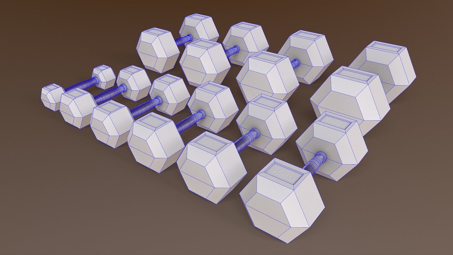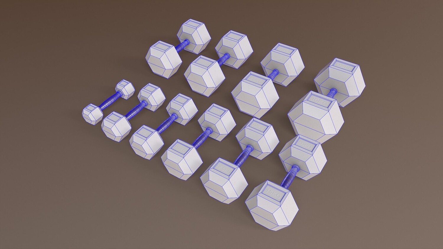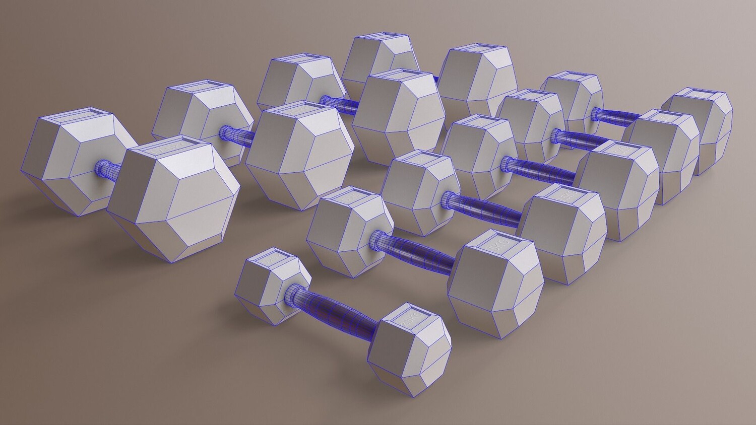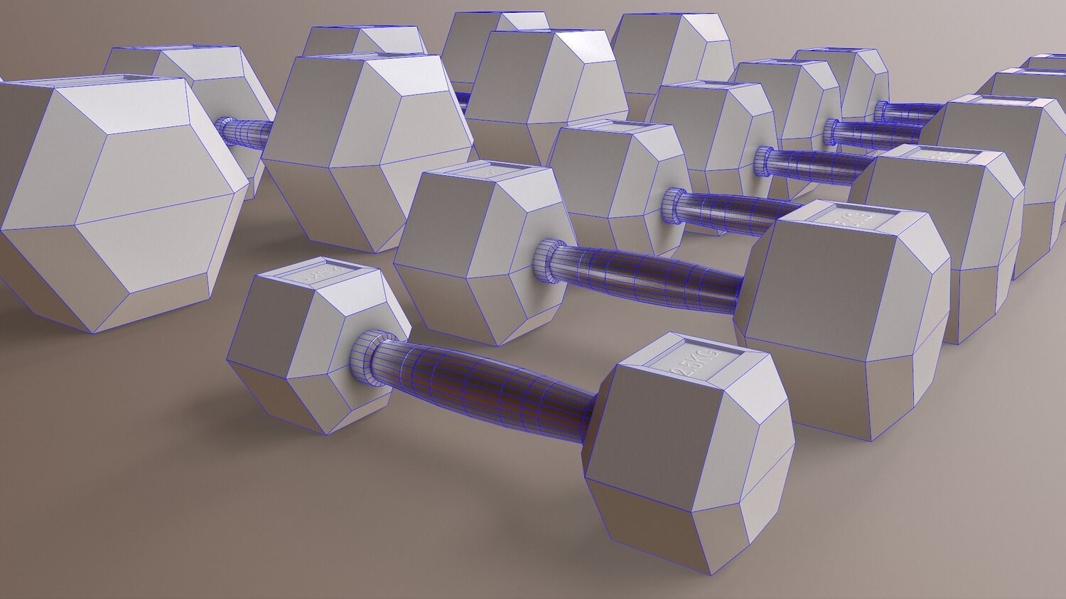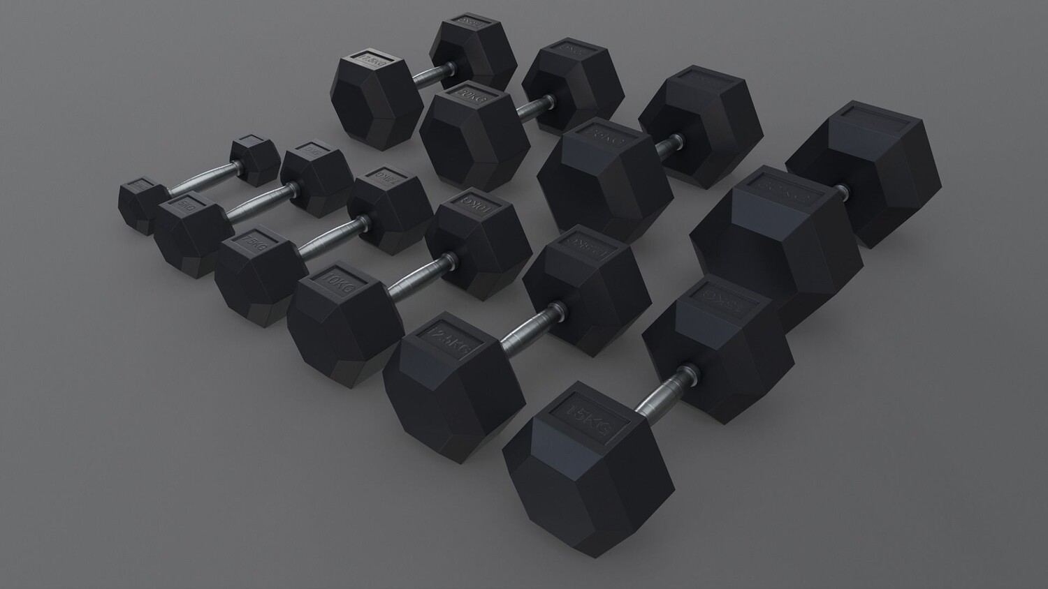 [ rubberized cast iron weight hex training barbell dumbbell body building yoga workout fitness indoor exercise gym home room sports equipment hexagonal chrome sports equipment 3d ar vr unity cryengine unreal engine low poly game ready amazon lumberyard realistic pbr augmented virtual reality vray v-ray arnold photoreal real time model asset ]