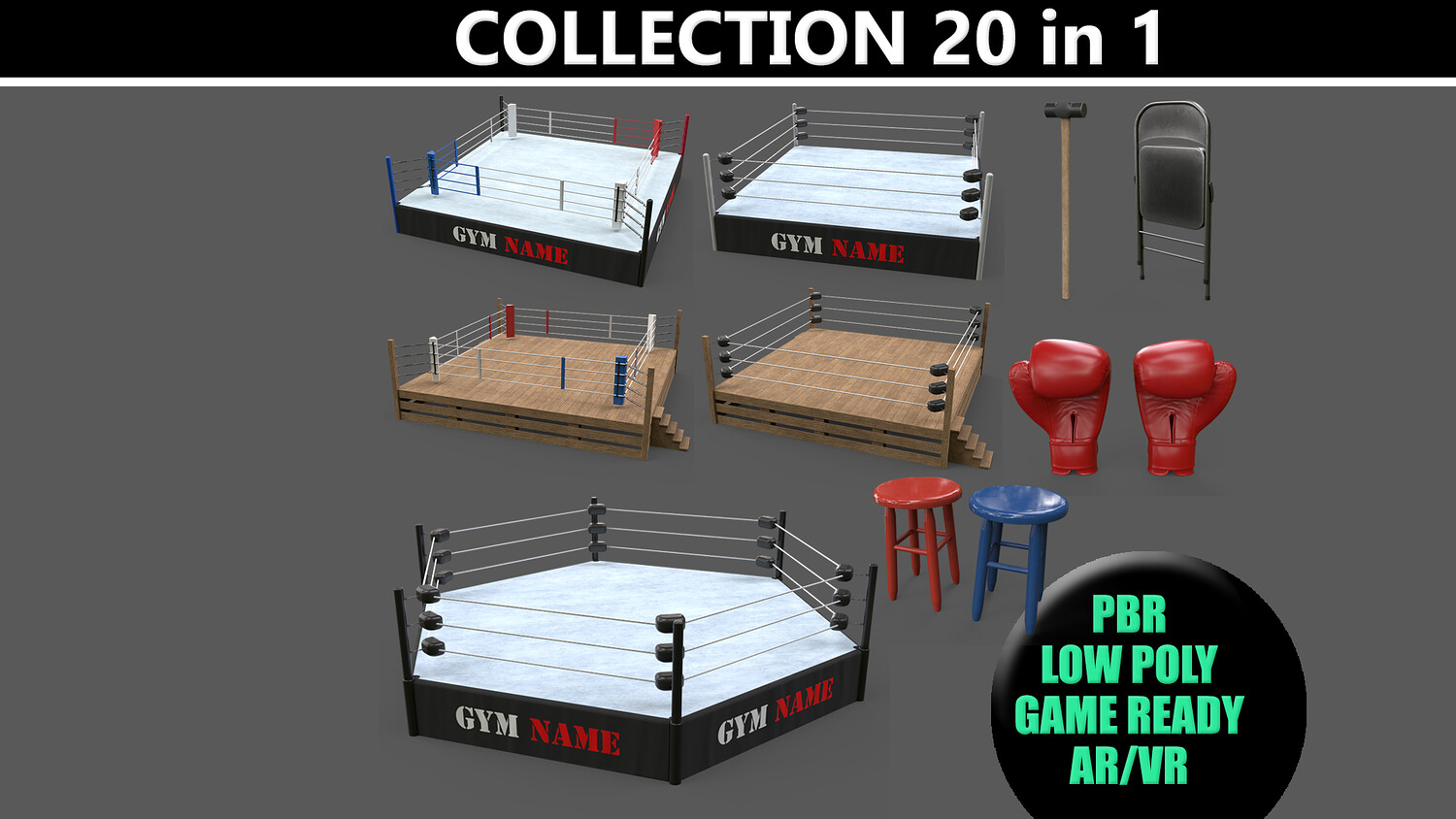 - PBR Modular Professional Boxing Rings 20ftx20ft - Polygons= 20929 Verts= 21188